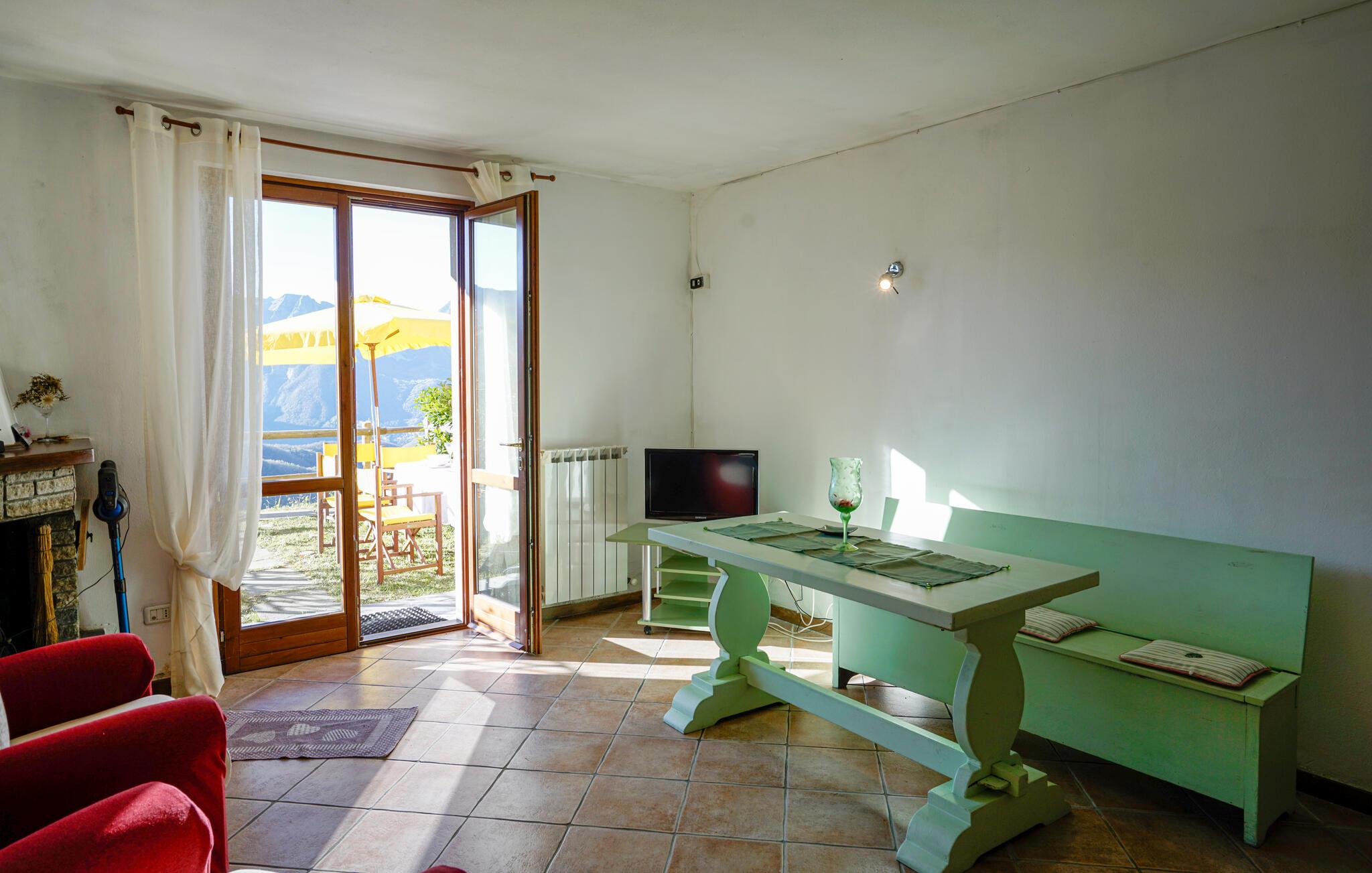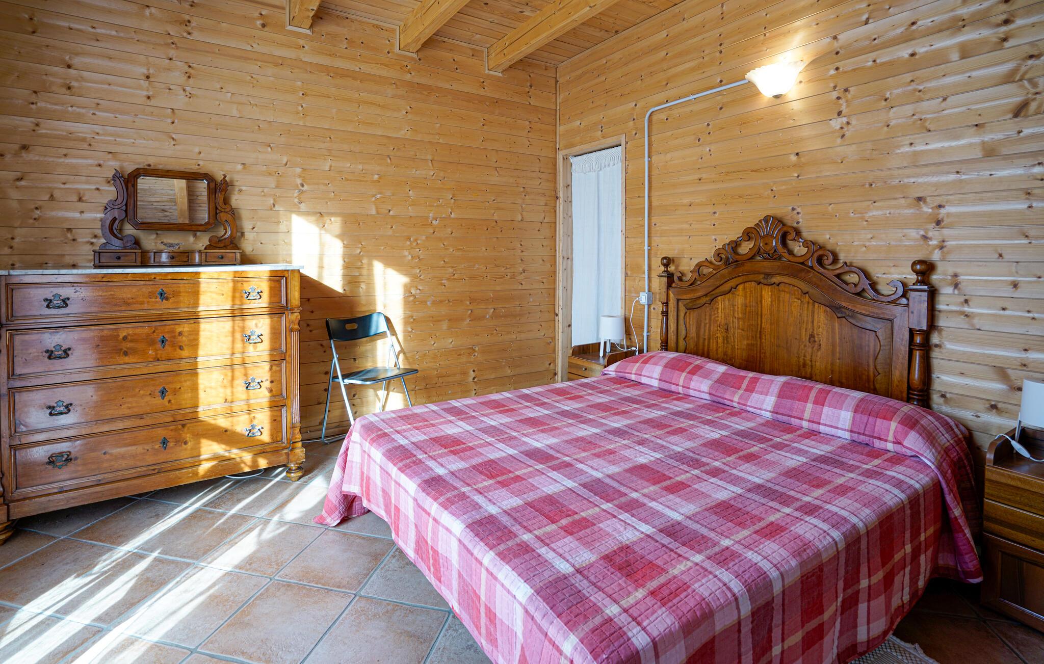 Dette rustikke feriehus i Pierdiscini tilbyder jer en autentisk og hyggelig atmosfære midt i naturen. De kærligt indrettede rum med træpaneler fordeler sig over to etager og skaber en varm og indbydende stemning. Begynd dagen med en kop kaffe på balkonen og nyd den spektakulære udsigt over bjergene, eller tilbring tid i den rummelige have, hvor I kan nyde måltider under åben himmel. Her får I ro og afslapning i en malerisk natur.