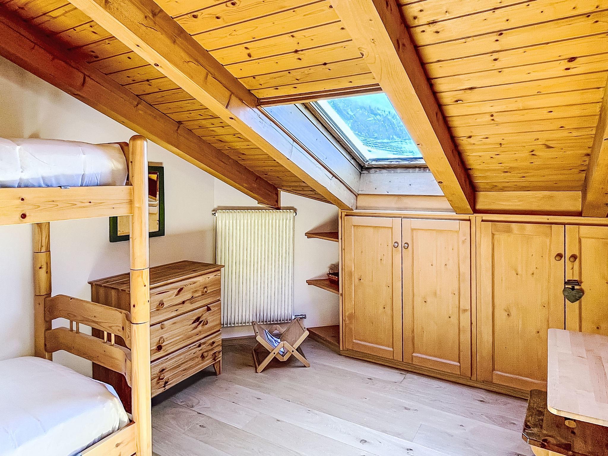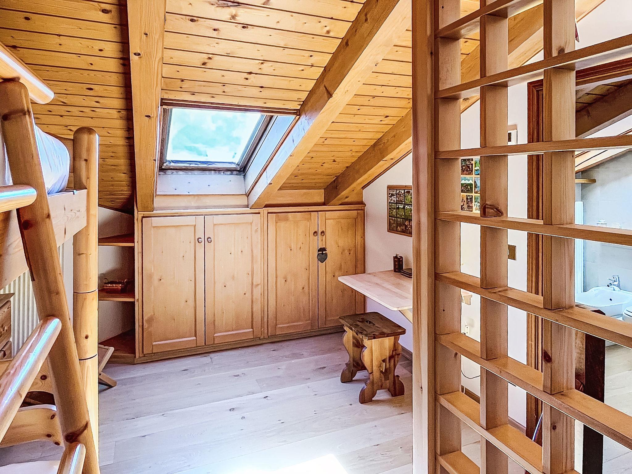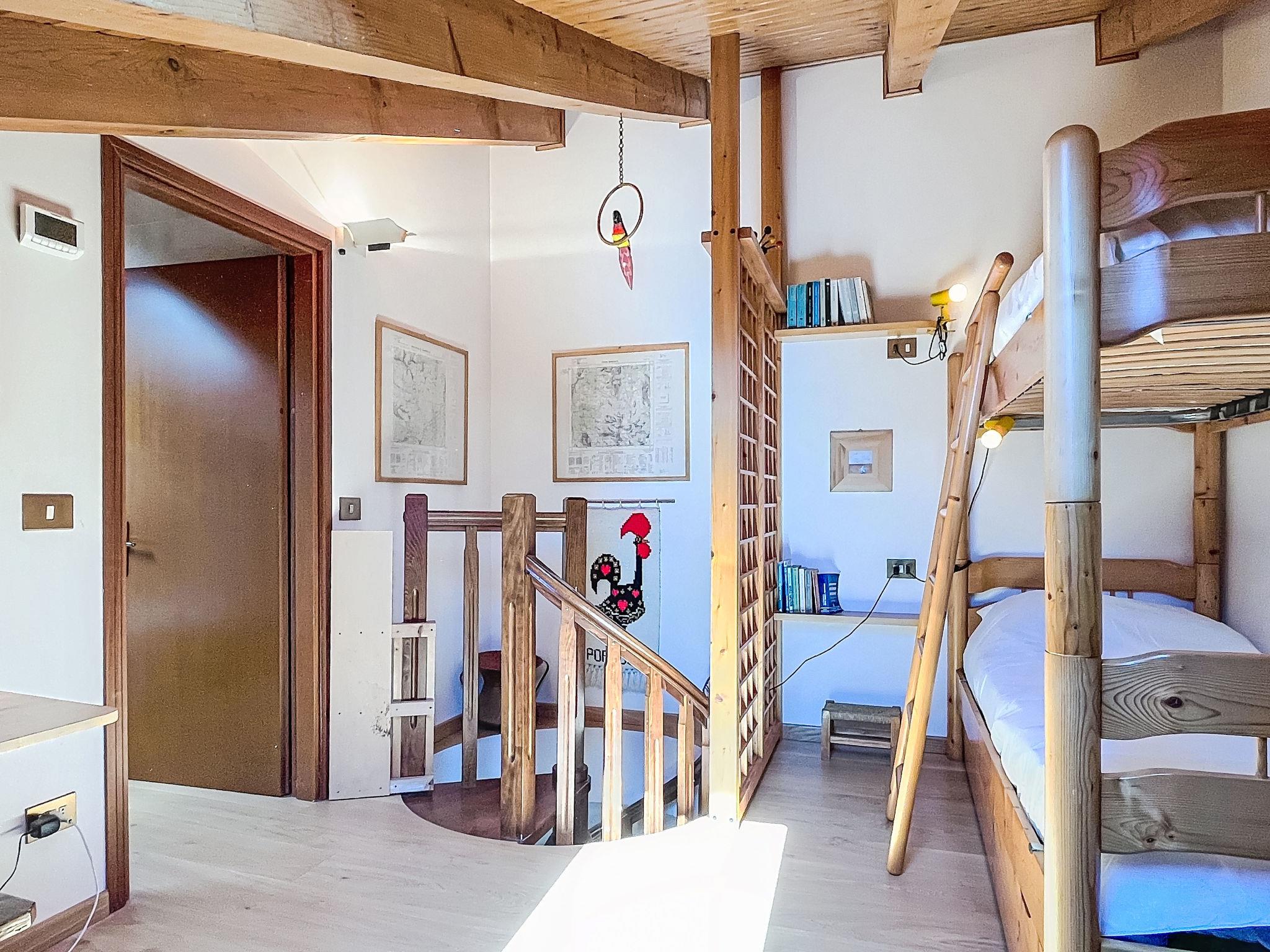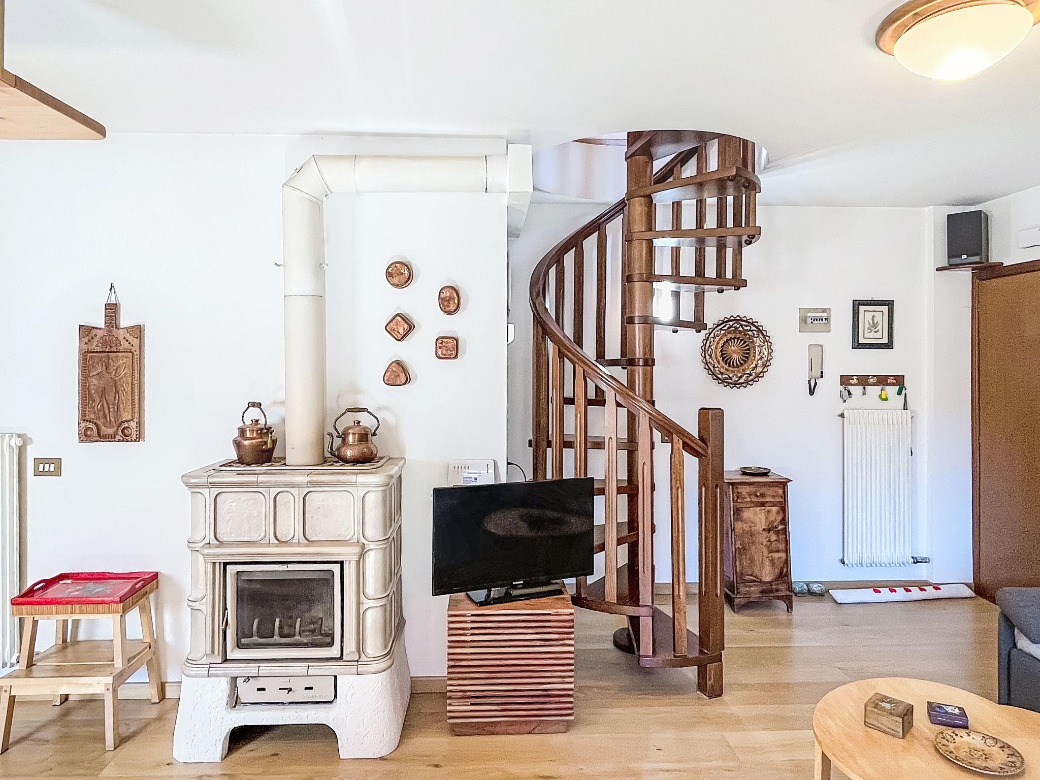 "Ginepro", 3-room apartment on 2 levels on 2nd floor. Bright, cosy furnishings: living/dining room with 1 double sofabed (160 cm, length 190 cm), Scandinavian wood stove (only for decoration), dining table and TV. 1 double bedroom with 1 double bed (160 cm, length 190 cm). Exit to the balcony. Kitchen (oven, dishwasher, 4 induction hot plates, kettle, microwave, electric coffee machine). Exit to the balcony. Shower/bidet/WC. Heating. Heating available only from 01.11. to 30.04. Upper floor: (spiral staircase), 1 room with 1 x 2 bunk beds (80 cm, length 190 cm). Shower/bidet/WC. Wooden floors. 2 large balconies. Balcony furniture. Partial panoramic view of the mountains. Facilities: washing machine, iron, children's high chair, baby cot for up to 2 year olds (extra), hair dryer. Internet (WiFi, free). Garage on the property (1 car). Please note: non-smokers only. Fire extinguisher, no lift. IT022042C22EHGN2IK