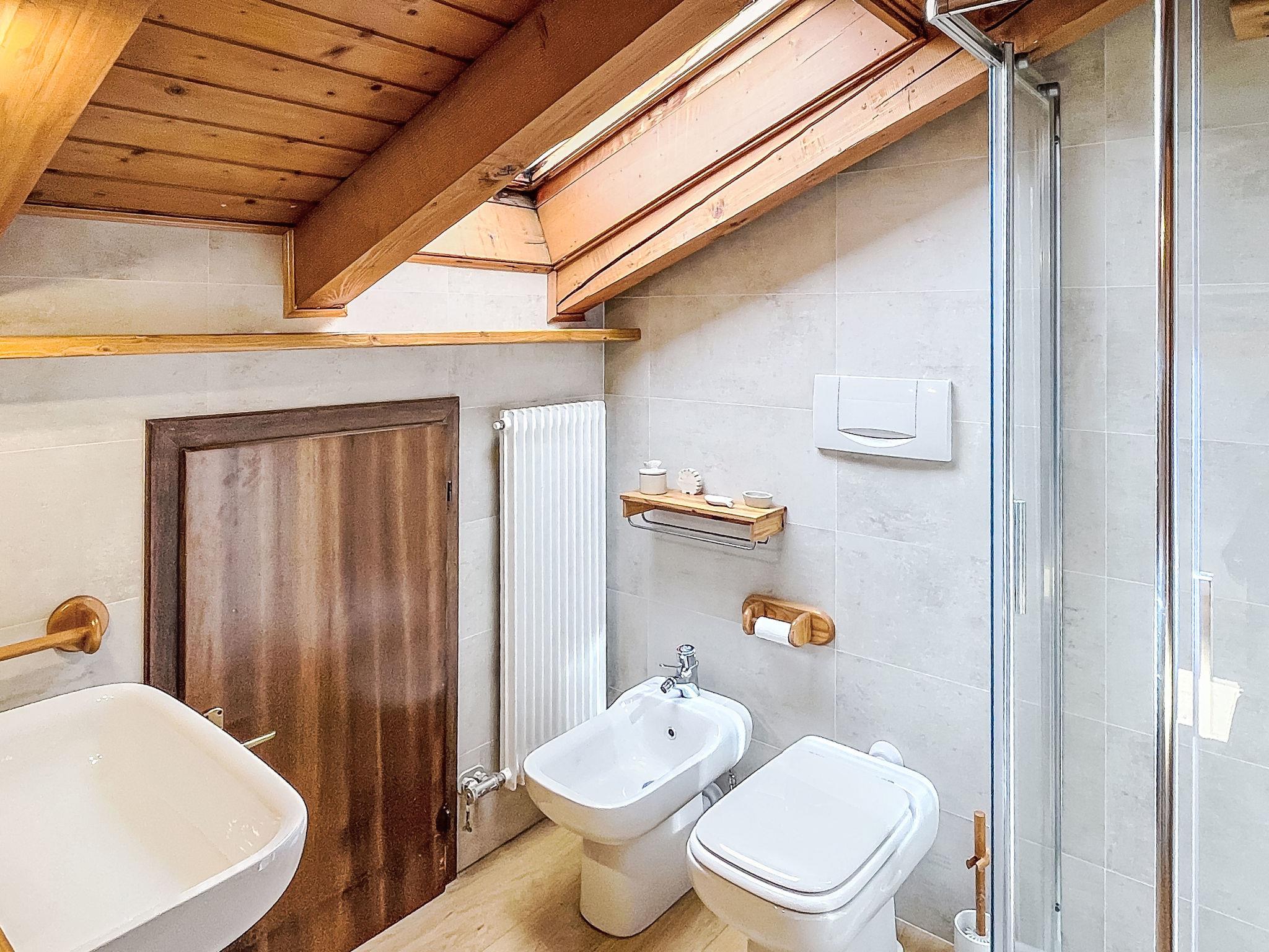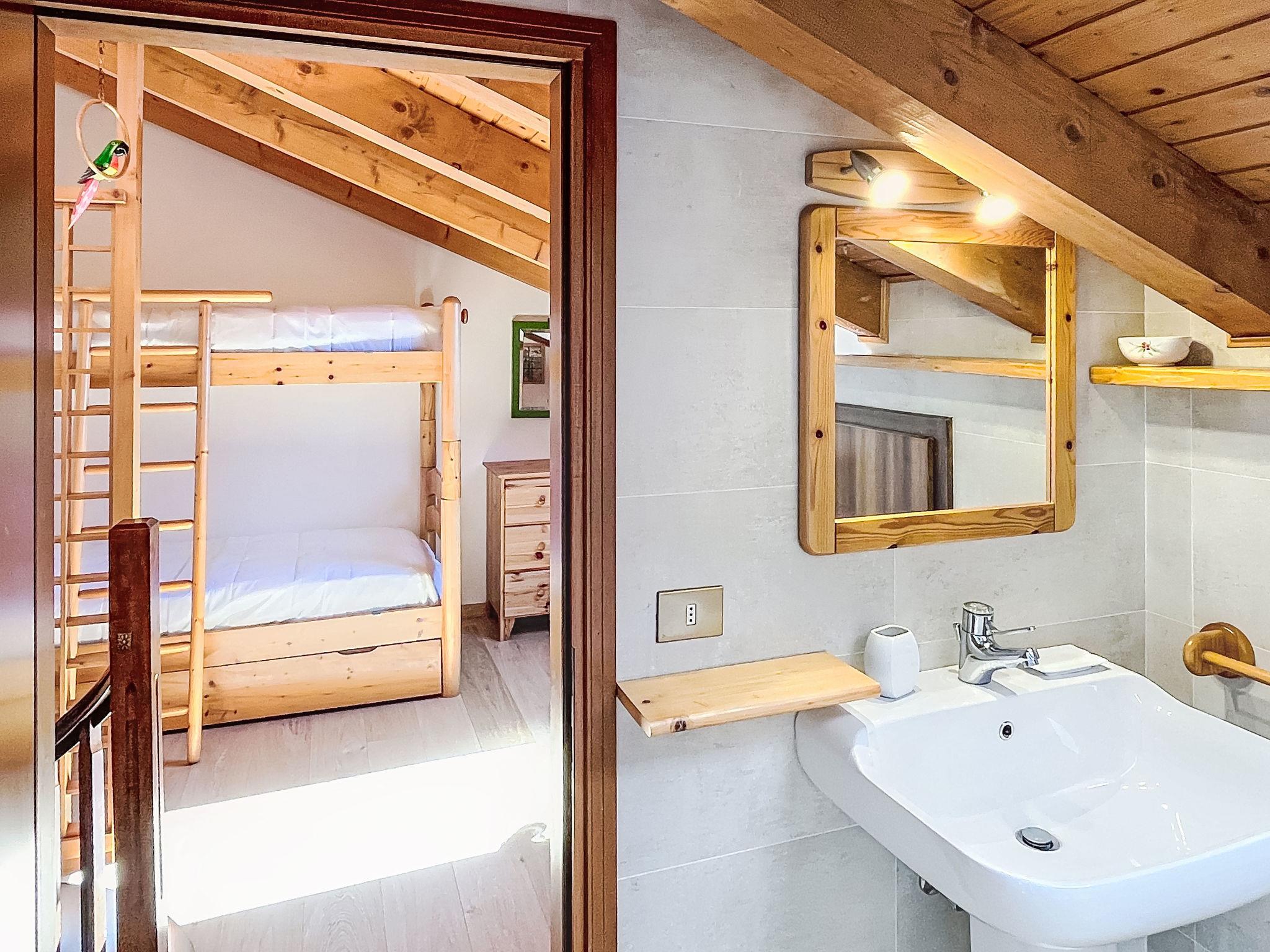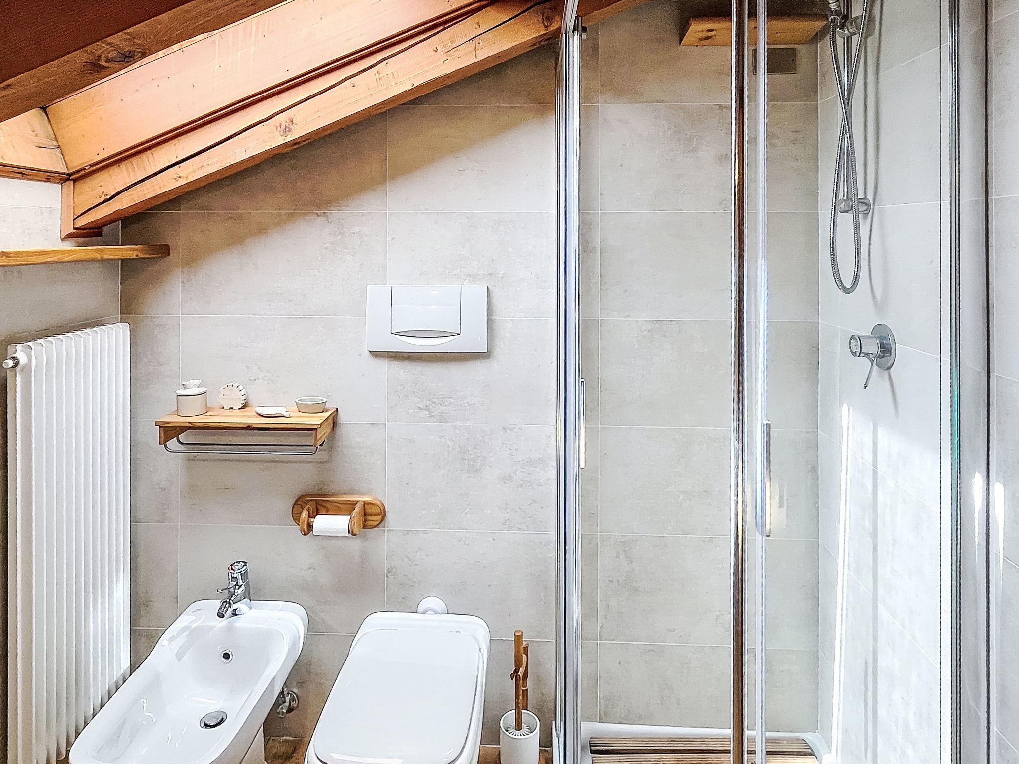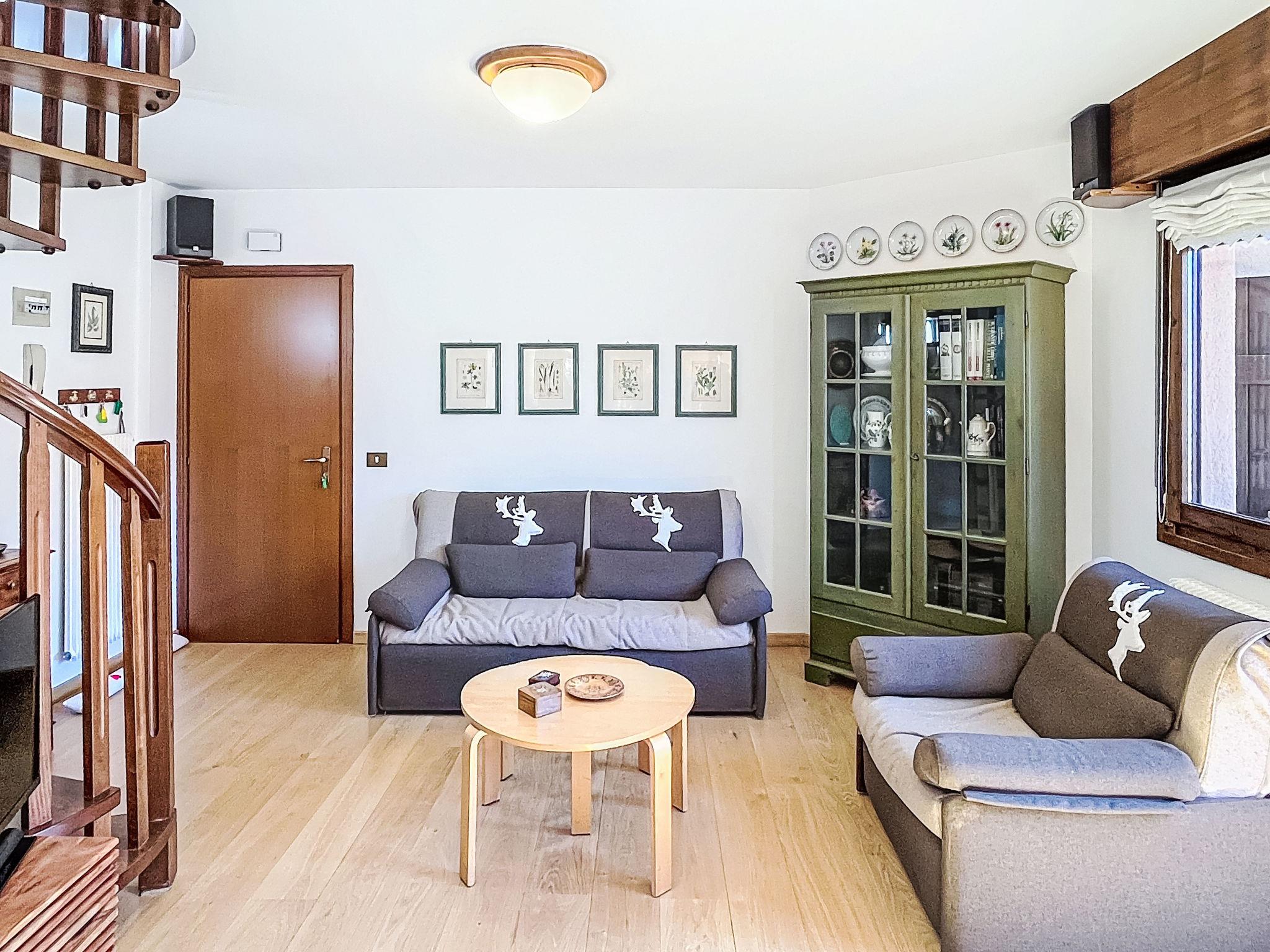 "Ginepro", 3-room apartment on 2 levels on 2nd floor. Bright, cosy furnishings: living/dining room with 1 double sofabed (160 cm, length 190 cm), Scandinavian wood stove (only for decoration), dining table and TV. 1 double bedroom with 1 double bed (160 cm, length 190 cm). Exit to the balcony. Kitchen (oven, dishwasher, 4 induction hot plates, kettle, microwave, electric coffee machine). Exit to the balcony. Shower/bidet/WC. Heating. Heating available only from 01.11. to 30.04. Upper floor: (spiral staircase), 1 room with 1 x 2 bunk beds (80 cm, length 190 cm). Shower/bidet/WC. Wooden floors. 2 large balconies. Balcony furniture. Partial panoramic view of the mountains. Facilities: washing machine, iron, children's high chair, baby cot for up to 2 year olds (extra), hair dryer. Internet (WiFi, free). Garage on the property (1 car). Please note: non-smokers only. Fire extinguisher, no lift. IT022042C22EHGN2IK