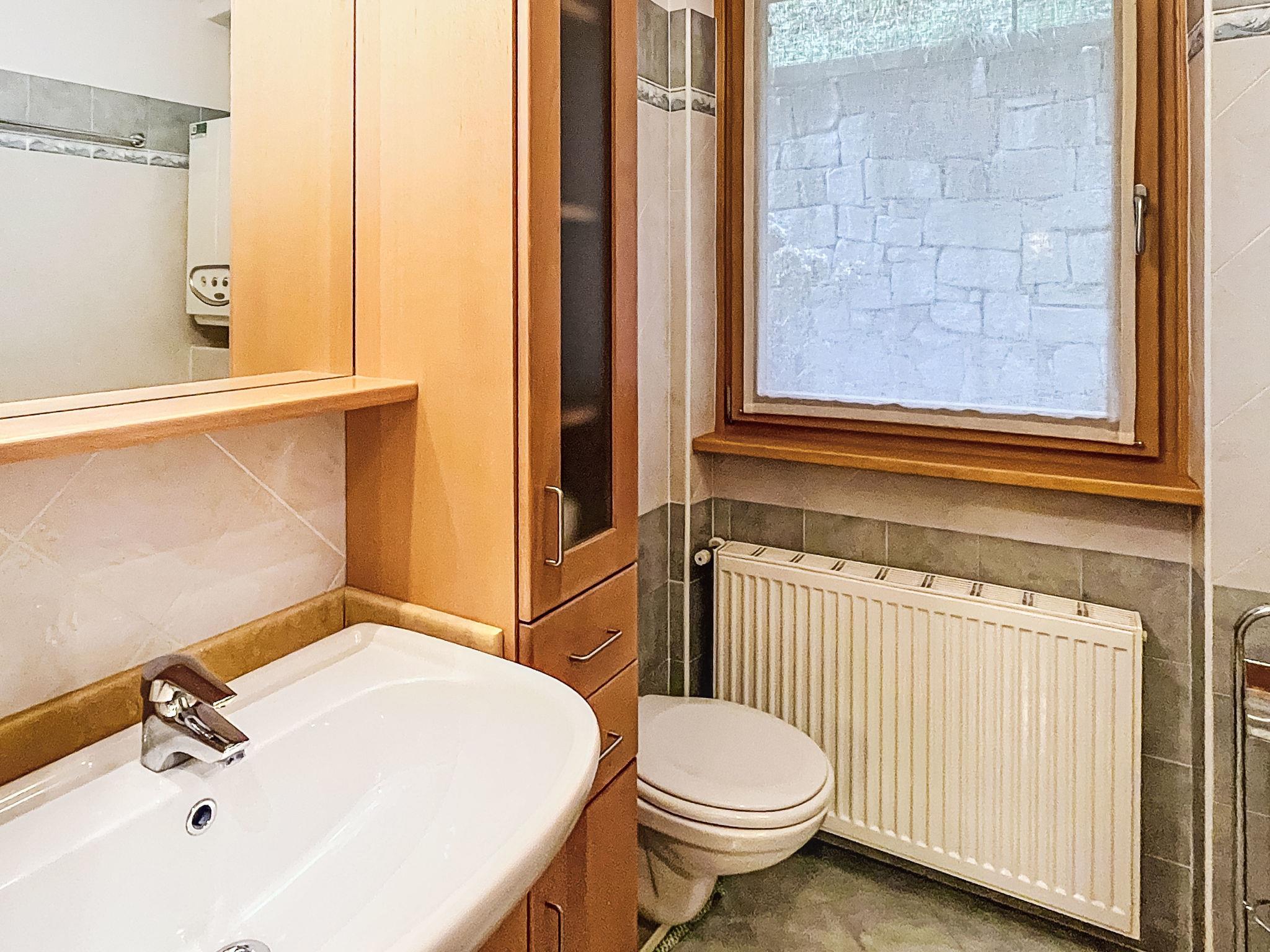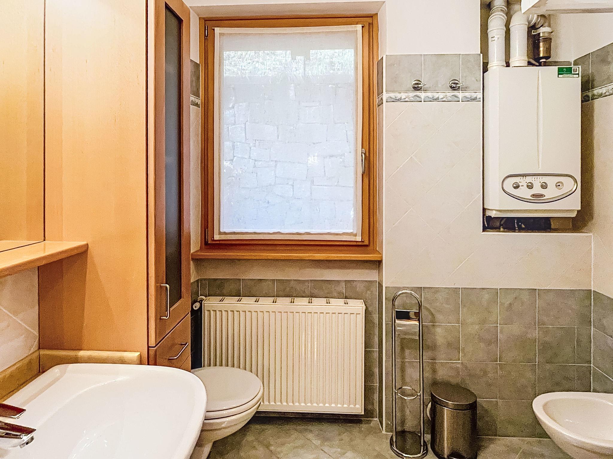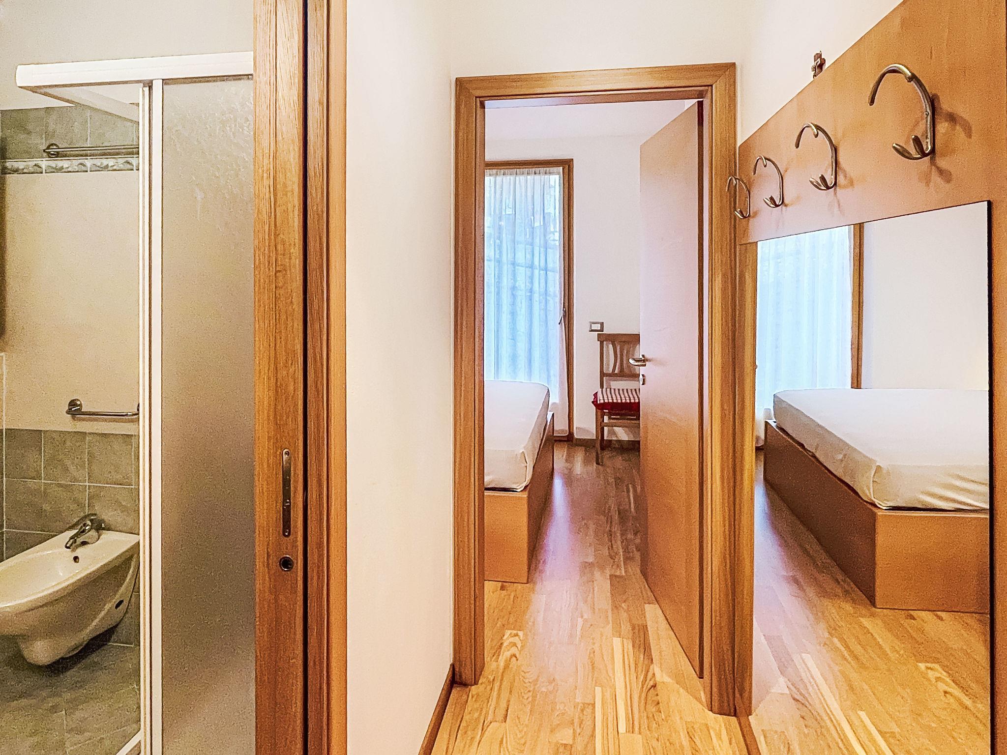 Apartment block "Le Balze del Sol", 2 storeys. In the centre of Carisolo, excellent location: right in the centre but still quiet, 100 m from the edge of the forest, 1.4 km from the skiing area, 100 m from the stream, in the countryside. For shared use: park (fenced), lawn for sunbathing (fenced). In the house: storage room for bicycles, storage room for skis. Linen change weekly (suppl. charge extra). Towel change weekly (suppl. charge extra). Room cleaning weekly on request (extra). Roofed, parking at the house. Grocery, supermarket 300 m, restaurant, pedestrian zone 100 m, bicycle rental 1 km, pub garden 100 m, 1 minute walk to the centre, bus stop 100 m. Cycle lane 100 m, mountain railway 1.4 km, gondola lift 1.4 km, skisport facilities 1.4 km, ski rental 1.4 km, ski bus stop 100 m. Neighbourhood highly sensitive to noise. Quietness and good behaviour expected.