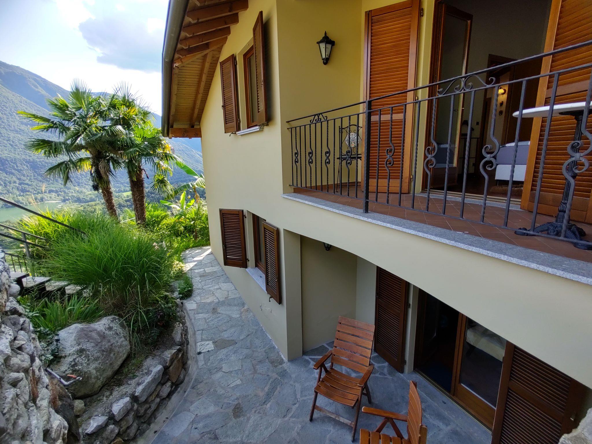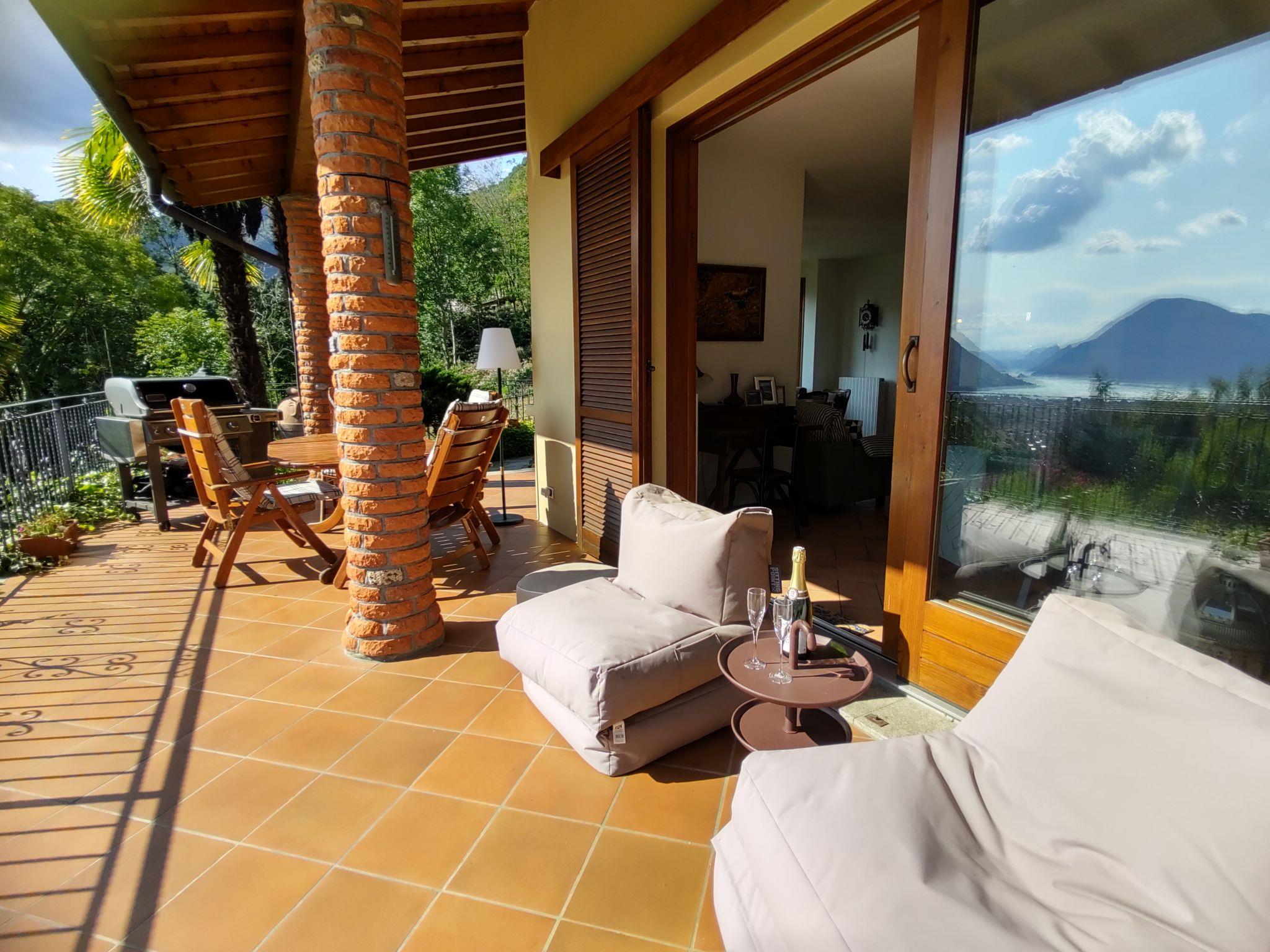 4-room house 175 m2 on 3 levels. Bright, comfortable and tasteful furnishings: mezzanine with separate WC. Open large living/dining room with panoramic window with open-hearth fireplace and radio. Exit to the terrace, to the swimming pool. 1 double bedroom. Exit to the terrace. 1 room with 2 beds. Exit to the terrace. Kitchen (oven, dishwasher, 4 induction hot plates, toaster, kettle, electric coffee machine). Exit to the garden, pergola. Shower/WC. Upper floor: open living room with satellite TV. 1 double bedroom. Exit to the balcony. Shower/WC, double hand-basin. Gas heating. Wooden floors, natural stone floors. Small balcony, 2 small terraces covered, large terrace roofed. Terrace furniture, balcony furniture, barbecue (portable). Marvellous panoramic view of the lake, the mountains and the valley. Facilities: washing machine, dryer, children's high chair, baby cot for up to 2 year olds. Internet (WiFi, free). Please note: non-smoking house. IT013047C2DF8ZWH7O