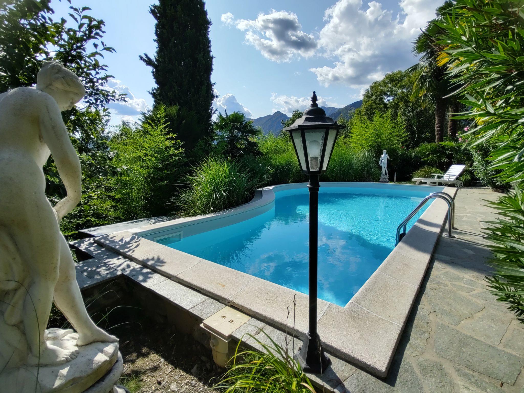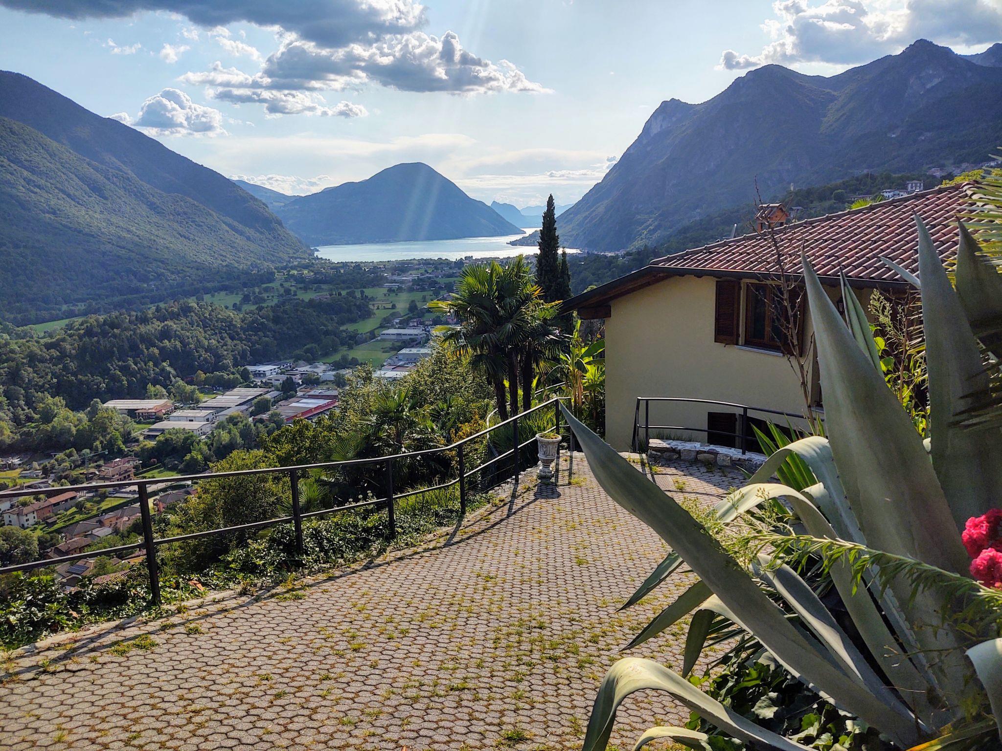 Large, comfortable single-family house "Villa Massimo", 3 storeys. 1 km from the centre of Carlazzo, 6 km from the centre of Porlezza, 23 km from the centre of Lugano, in a sunny position on a slope, residential area (villas), 3.4 km from the lake. Private: property (fenced), terraced garden with wildlife garden and trees, swimming pool kidney shaped (10 x 3 m, depth 140 cm, seasonal availability: 30.Mar. - 15.Oct.). Outdoor shower, terrace. 200 m steep footpath to the house. Public parking 200 m on the road. Shop 1.2 km, supermarket 4 km, restaurant 2 km, bar 2 km, bus stop 280 m, railway station "Lugano" 24 km, pebble beach "Piano (Lago di Piano)" 3.4 km, grass beach "Porlezza (Lago di Lugano)" 6 km, indoor swimming pool 19 km. Marina 7 km, golf course (18 hole) 7 km, surf school 7 km, minigolf 10 km, cycle lane 1 km. Nearby attractions: Menaggio 9.4 km, Lugano 23 km, Villa Fogazzaro Roi, Grotte di Rescia, Villa Carlotta-Tremezzo, Bellagio. Well-known lakes can easily be reached: Lago di Lugano 6 km, Lago di Como 9.4 km. Hiking paths: Cascate di Begna, Passo San Lucio, Monte Grona. Please note: car recommended. Part of the house is closed and unoccupied.