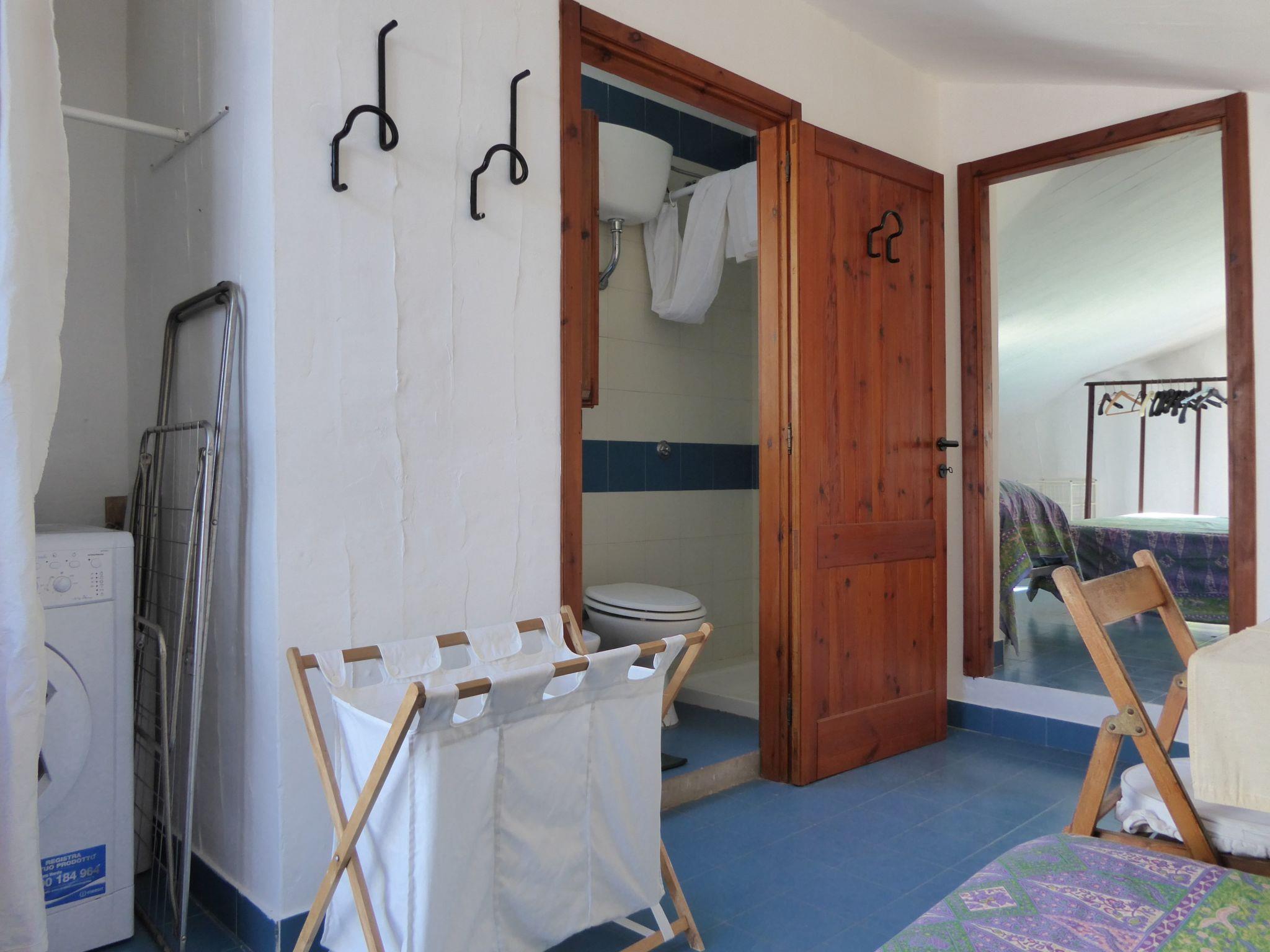 The villa is divided into two levels. On the ground floor there is a large living room with sofas (seating 10), a fireplace, a flat screen satellite TV and a fridge with freezer. The living room opens onto a small kitchen that includes a gas hob and oven, microwave, coffee machine and a sink with two sinks and of course cupboards with plates, cutlery, glasses. The kitchen leads directly out onto the patio, where there is a large dining table that seats 10. Also on the ground floor is a bedroom with two single beds (80x190 cm) that can be combined into a double bed on request, a built-in wardrobe and a direct exit to the patio. Another smaller bedroom with two single beds (80x190 cm) that can be combined into a double bed on request, a built-in wardrobe and a window. In front of the two rooms is a bathroom complete with toilet, bidet, shower and washbasin. A staircase leads from the living room to the loft. Here there is a single bed (80x190 cm), a washing machine and access to a complete bathroom. A door gives access to a large loft with three single beds that can be combined as desired, a cupboard at the bottom and two windows. From the loft there is access to a terrace leading down to the garden. The three bedrooms are equipped with air conditioning. In a small storage room adjacent to the house there is another fridge, a small chest freezer and a dishwasher. There is also wireless internet access in the immediate vicinity of the house.