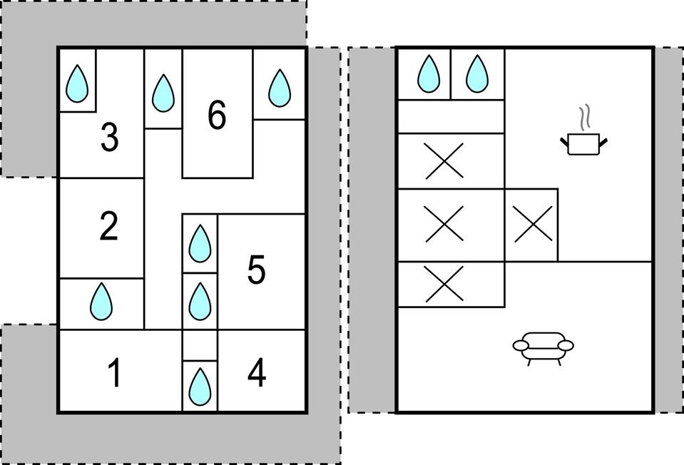 Badeværelse 6m2 (nr. 1) - WC. Varmt og koldt vand. Bruser