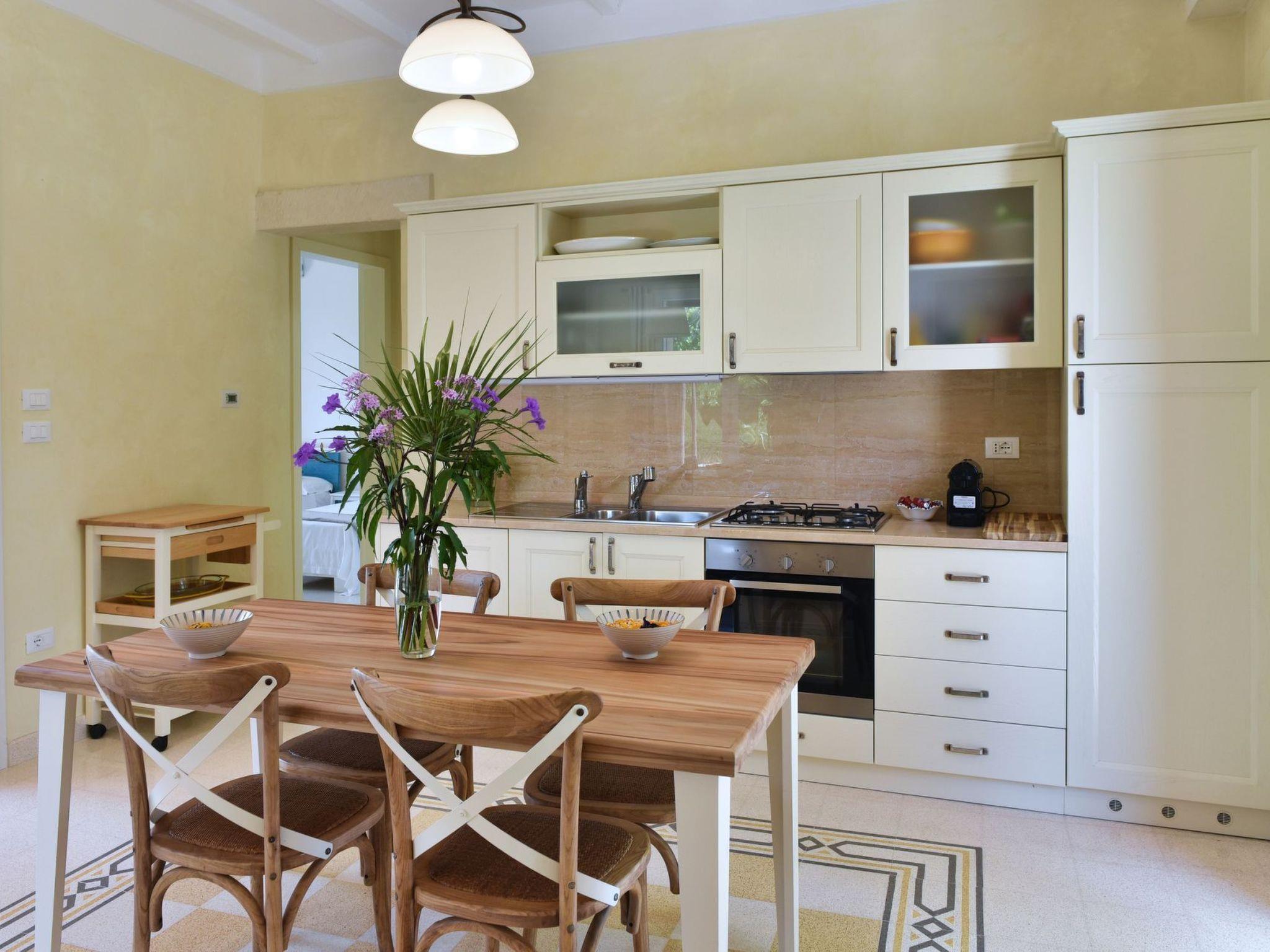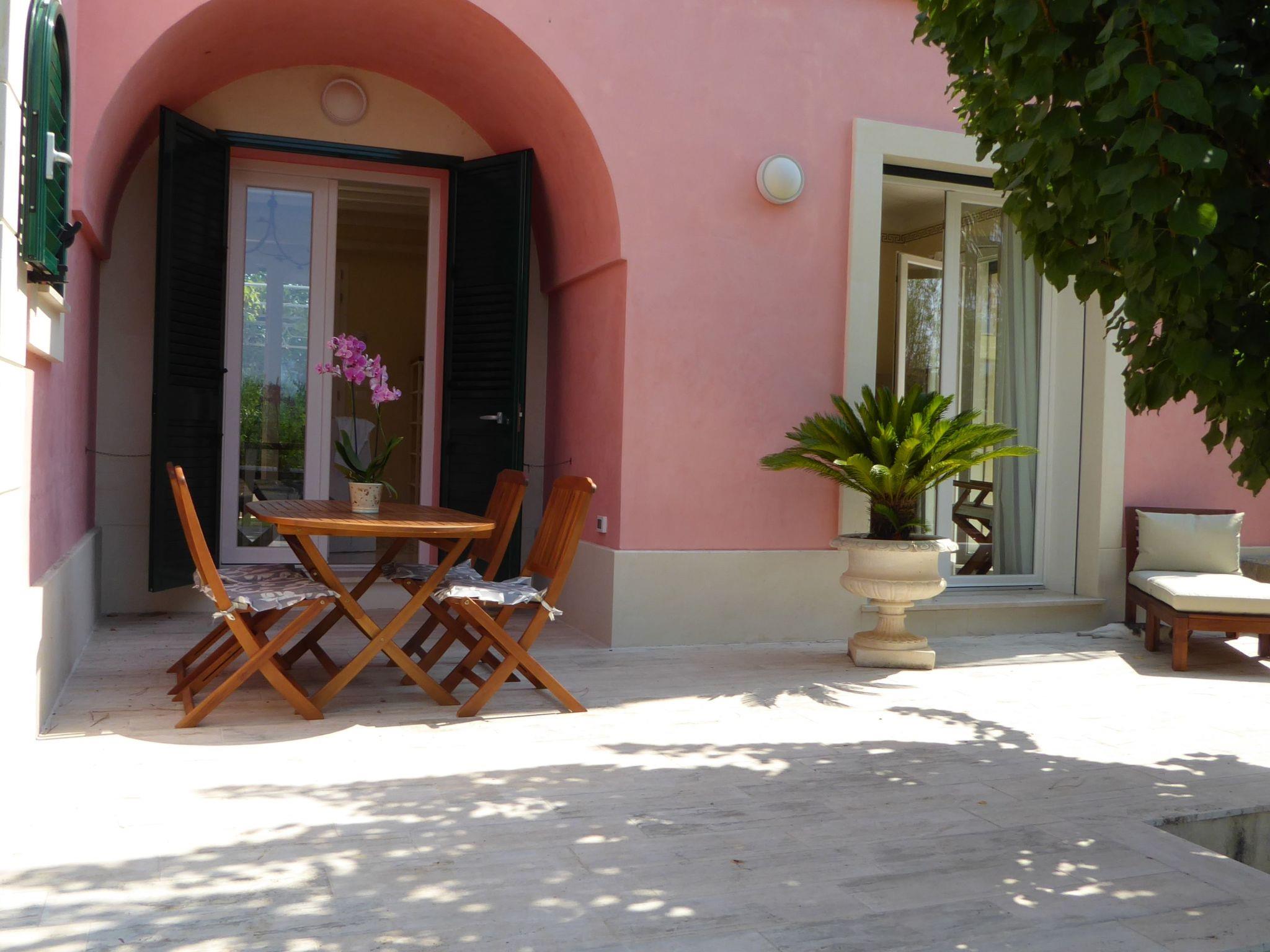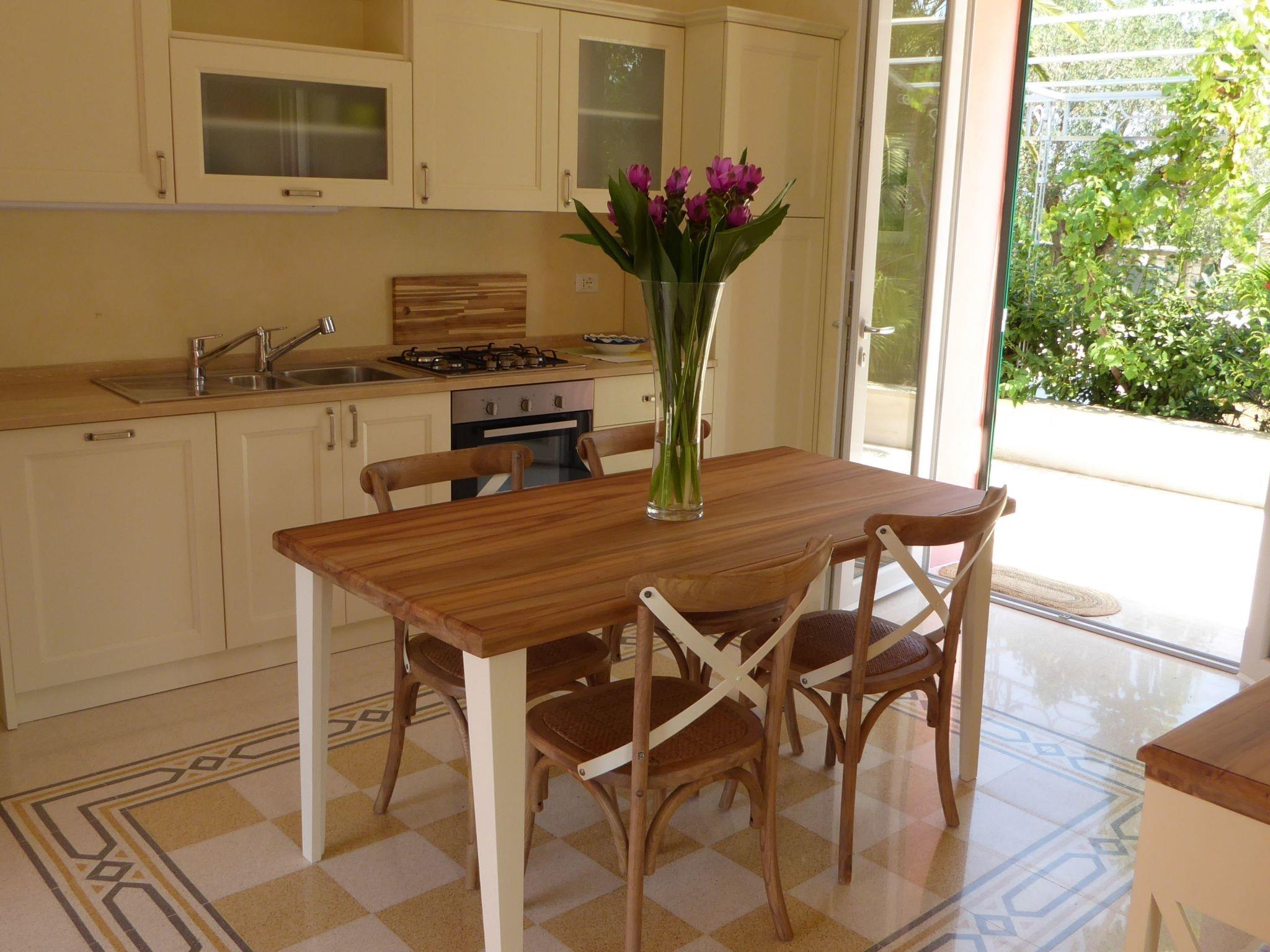 Villa Sirgole Rosa is a beautiful holiday home, 100 square metre villa, two-storey, with a large terrace. In 2017 we extensively renovated and extended the antique house, tastefully furnished and very well equipped. It has two bathrooms and a kitchen with dishwasher, oven, toaster, kettle, blender and a Nespresso coffee machine. The flat on the ground floor can accommodate four visitors. It has a lovely garden seating area overlooking the large swimming pool and a pergola under palm, apricot and lemon trees. In the tower upstairs there is a bedroom for one or two visitors, a small bathroom and a large terrace with a view and plenty of space: it is another world of heaven and earth, sea and sun, nature and well-being.