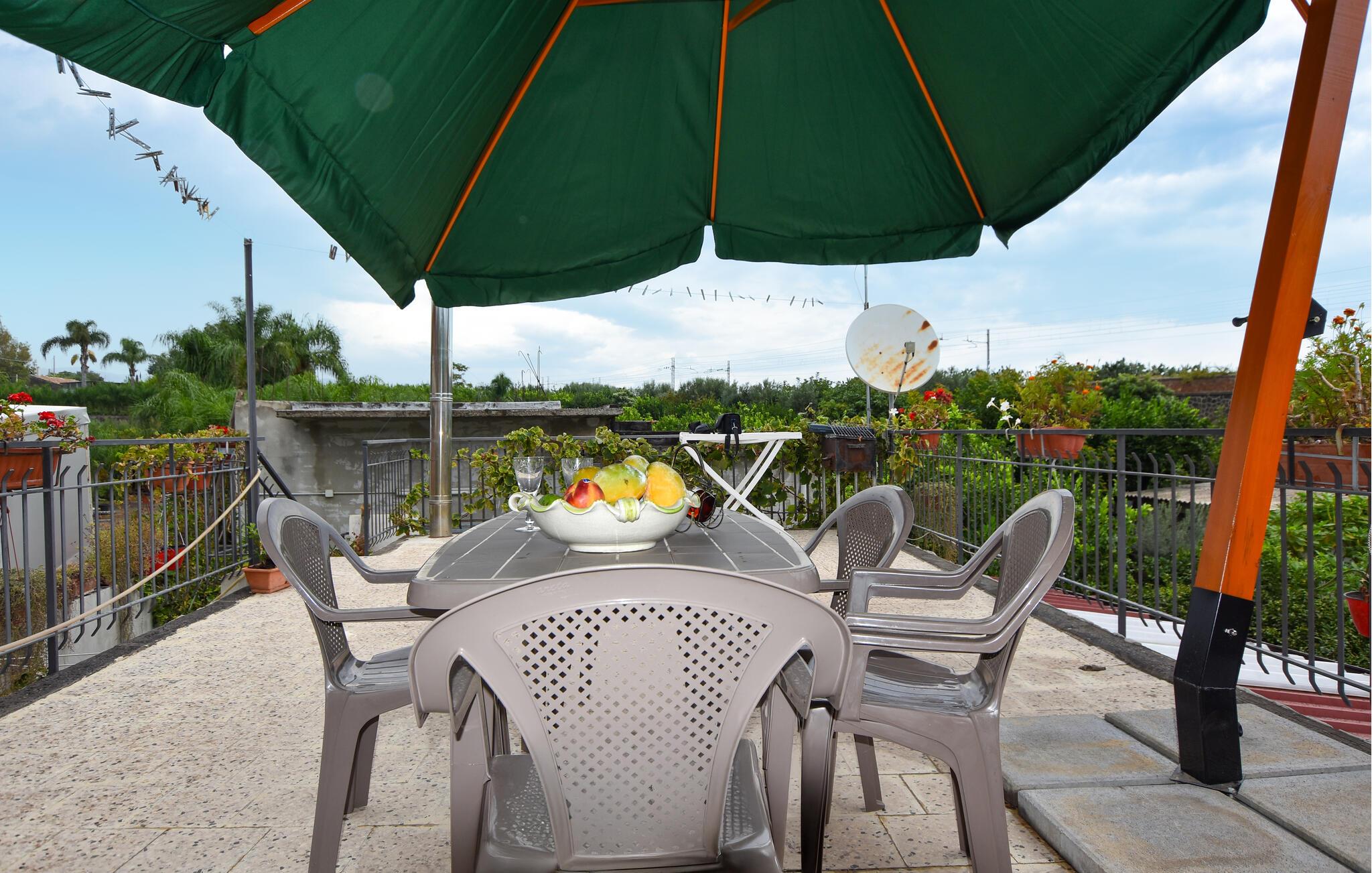 Nyd middelhavsstemningen på jeres indbydende terrasse, omgivet af blomstrende planter og en vidunderlig udsigt over kvarteret og Etna i det fjerne. Tilbring afslappende eftermiddage med en kop kaffe eller afslut dagen med et glas vin under forteltet.