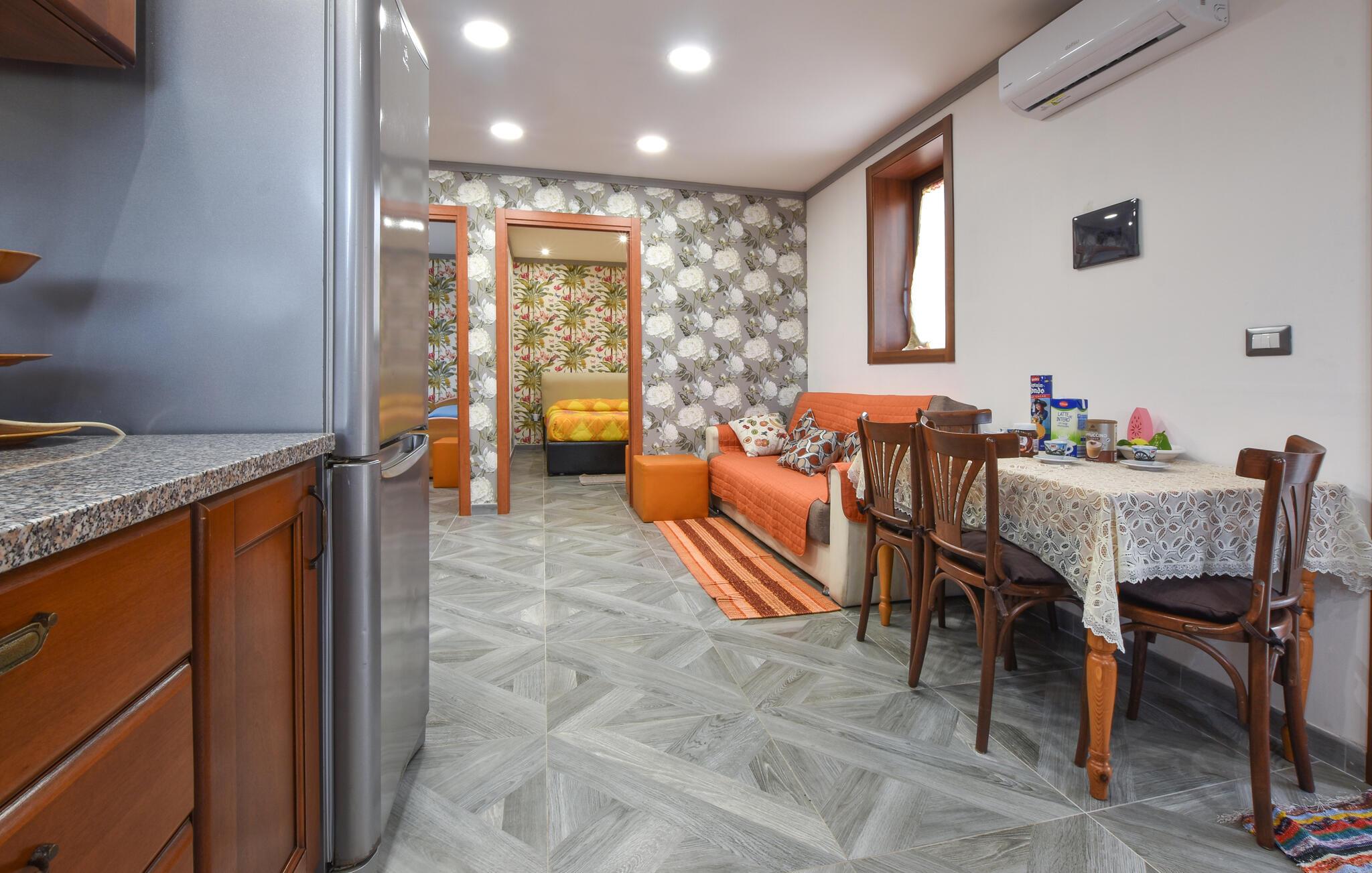 De komfortabelt indrettede værelser i denne charmerende ferielejlighed i hjertet af Carraba er farverige og livlige. Fordyb jer i den autentiske sicilianske livsstil og tilbered regionale retter og lækre pizzaer i det åbne køkken, som I har kopieret fra de omkringliggende restauranter. Planlæg jeres udflugter i den varme atmosfære i jeres stue og slap af og sæt fødderne op efter en lang dag.
