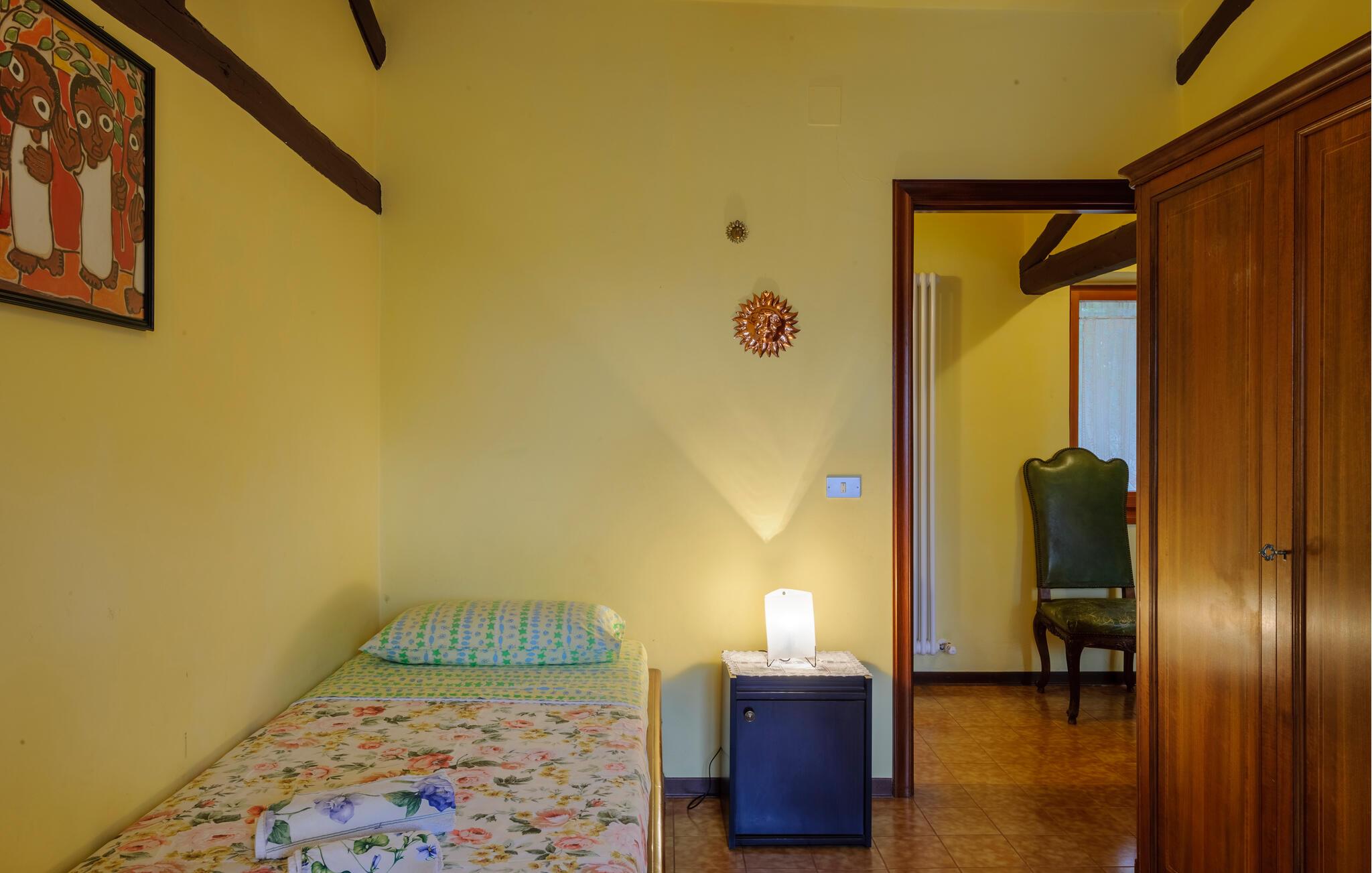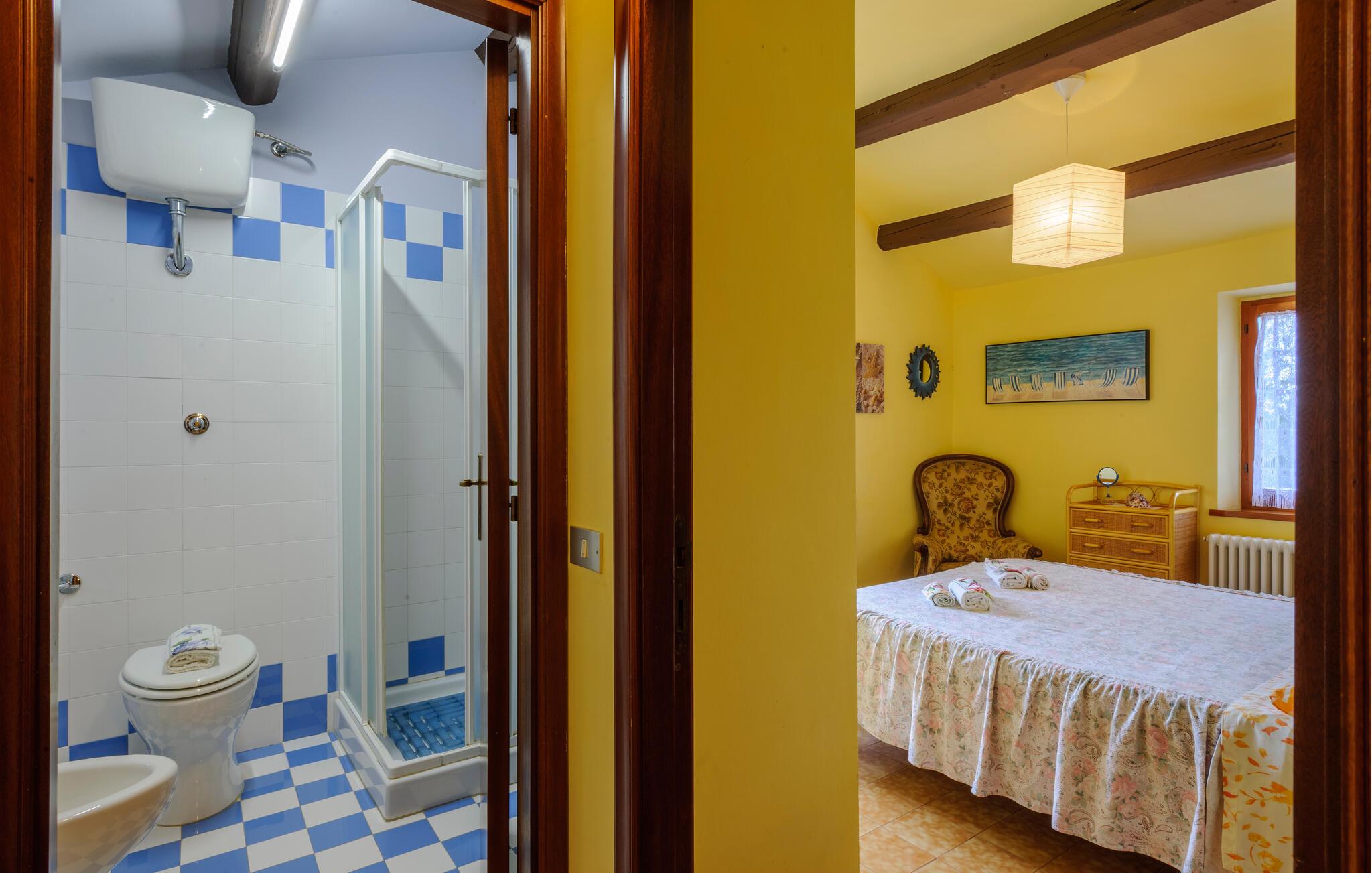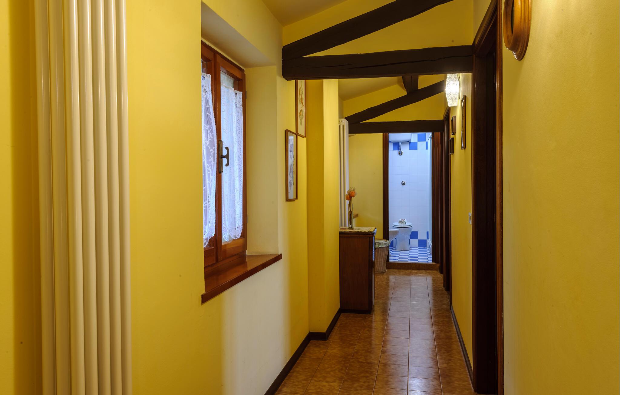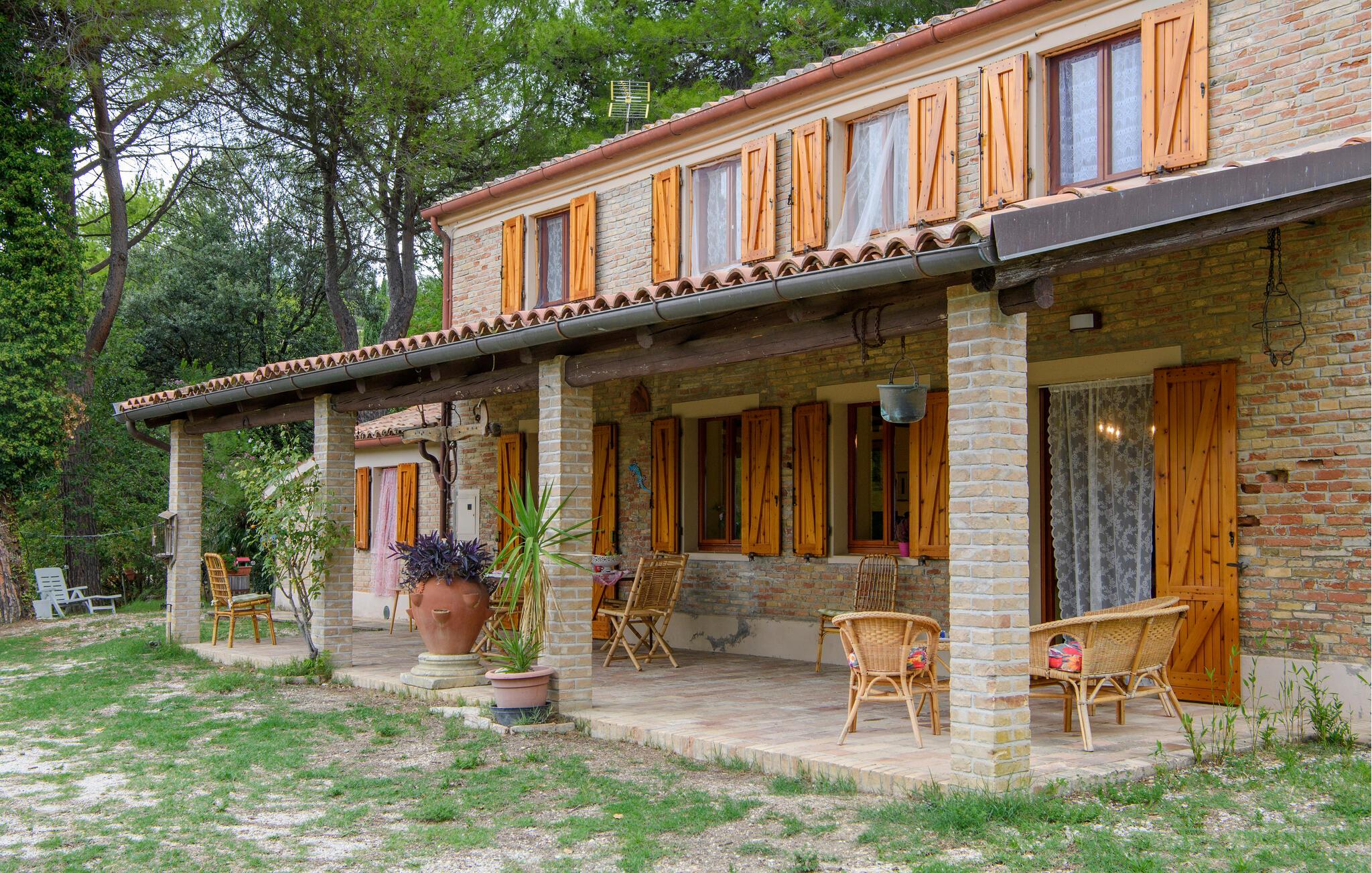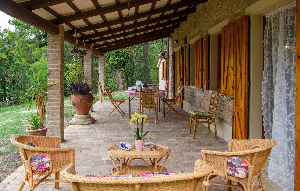 Nyd roen på landet i dette store landsted. Velkommen til dette rummelige landsted i Cartoceto, hvor rustik charme møder moderne velvære. De varme træbjælker og den åbne pejs skaber en indbydende atmosfære, der straks lægger op til afslapning. Nyd det rummelige interiør, indrettet med stor sans for detaljer. På balkonen eller den store veranda kan I nyde udsigten over det maleriske landskab og slappe af med et glas vin. Her finder I det perfekte tilflugtssted til at forlade hverdagen og slappe af midt i naturen. Området omkring Cartoceto byder på et væld af muligheder for aktiviteter og udflugter. Udforsk de bølgende bakker i Marche, optimal til vandre- og cykelture. Besøg de charmerende, historiske byer som Fano eller Urbino, som ligger kun en kort køretur væk. Nyd det lokale køkken i de små trattoriaer, hvor I kan smage lækre regionale specialiteter. Uanset om det er kultur, natur eller køkken - regionen byder på noget for enhver smag og vil gøre jeres ophold uforglemmeligt.