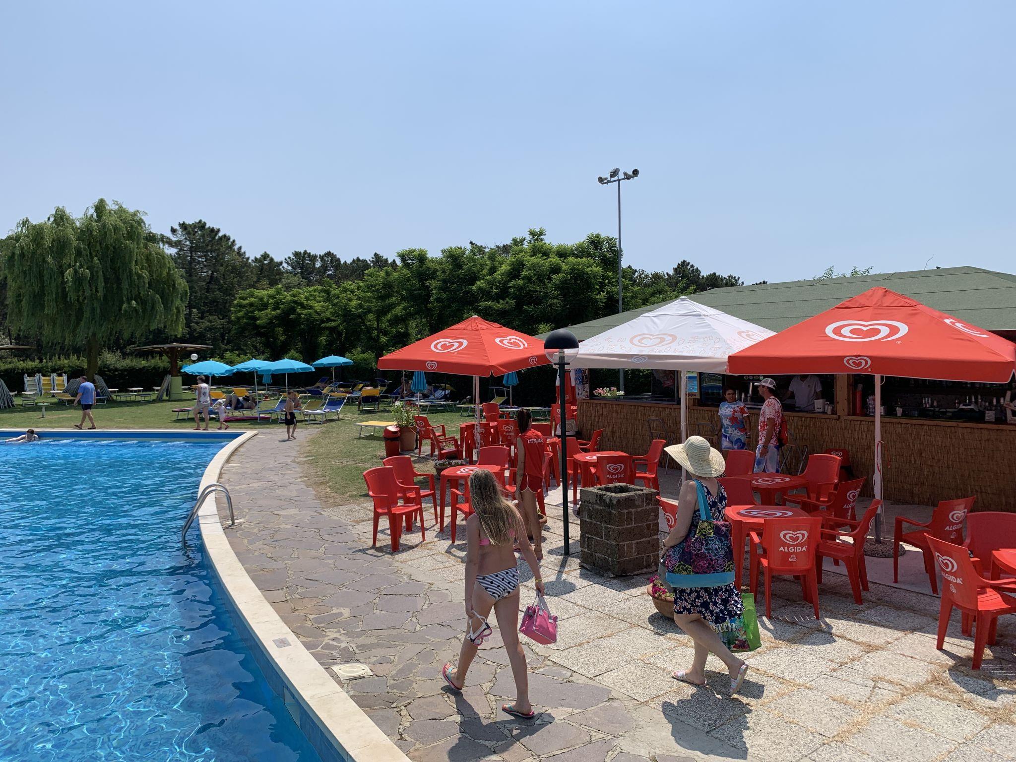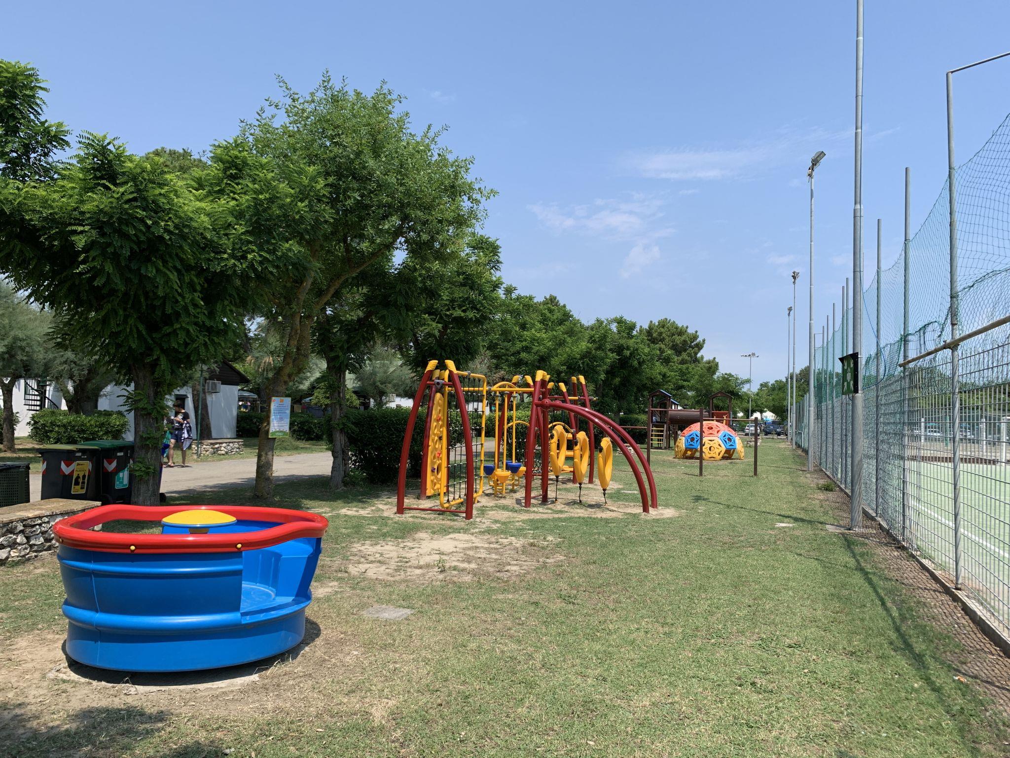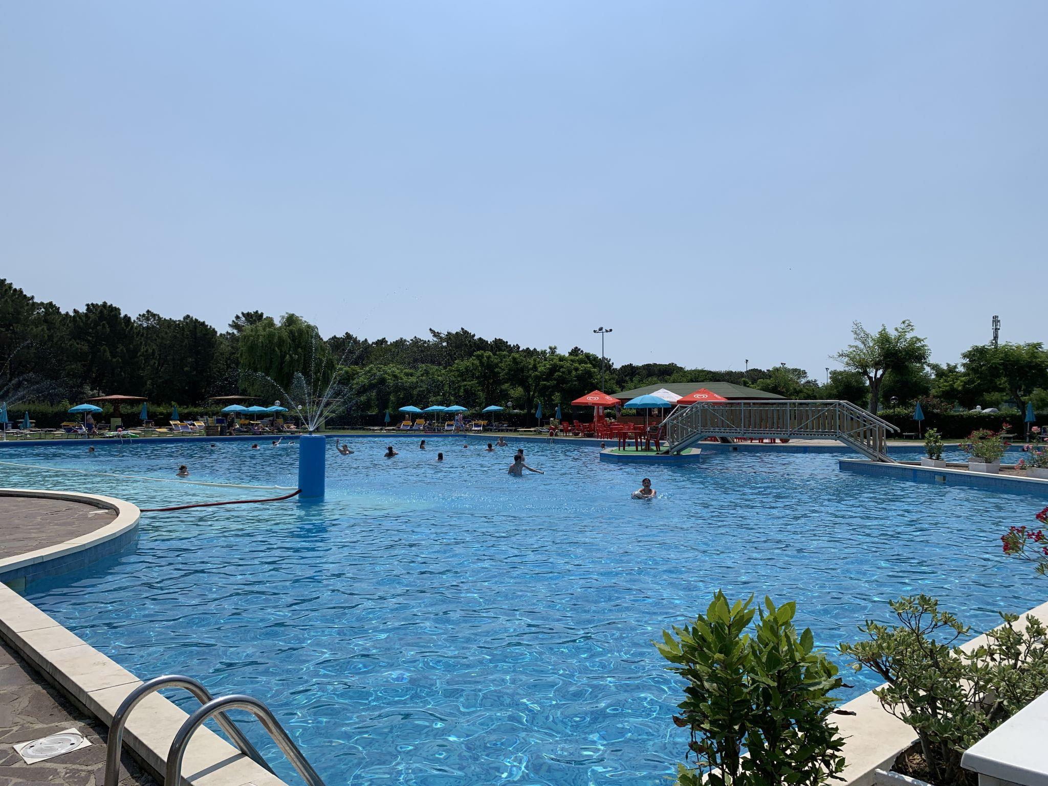 Large, child friendly resort "Mare Pineta". 210 apartments in the residence. 800 m from the centre of Casal Borsetti, on the outskirts, 200 m from the sea, 200 m from the beach, in the countryside. For shared use: property 12 ha (fenced) with lawn and trees, 2 swimming pools (seasonal availability: 15.May. - 15.Sep.). Children's pool, tennis (2 x hard court), boccia, volleyball, children's playground. In the complex: reception, restaurant, bar, WiFi, shopping facilities, washing machine, tumble dryer (for shared use, extra), bicycle rental. Full board on request (extra). Central parking spaces. Bus stop 1.2 km. Nearby attractions: Ravenna 15 km, Comacchio 20 km, Abbazia di Pomposa 35 km, Ferrara 71 km, Venezia 120 km. Hiking paths: Bosco Mesola 42 km. Please note: car-free holiday complex. Entertainment in the season. Suitable for families, baby equipment on request (extra). Access to the vicinity of the houses is possible only on Saturdays for loading and unloading, from Sunday to Friday only up to the central parking lot. The Baby's Bungalows are located near the swimming pool, the Dog's Bungalows are located on the edge of the campsite and have a small enclosed garden.