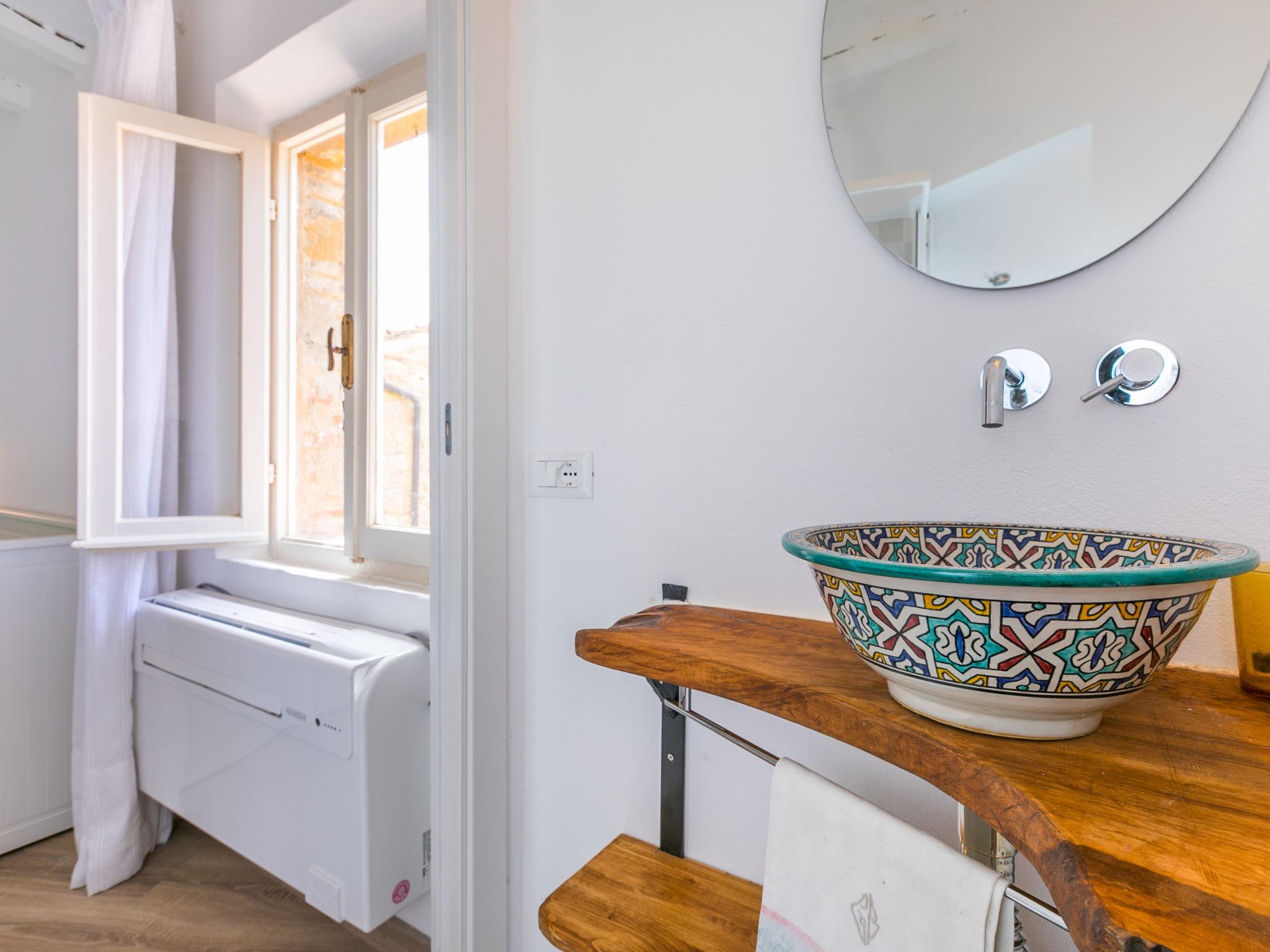 "Domus Mariae", 2-room apartment 35 m2, on the upper ground floor. Renovated in 2022, beautiful and tasteful furnishings: small living/dining room with digital TV. 1 double bedroom with shower/WC, electric heating and air conditioning. Kitchenette (2 induction hot plates, kettle, microwave, electric coffee machine). Sitting area. Facilities: iron, hair dryer. Internet (WiFi, free). Bedlinen, towels, final cleaning and all energy costs are included. IT050006C2CWJE7REB