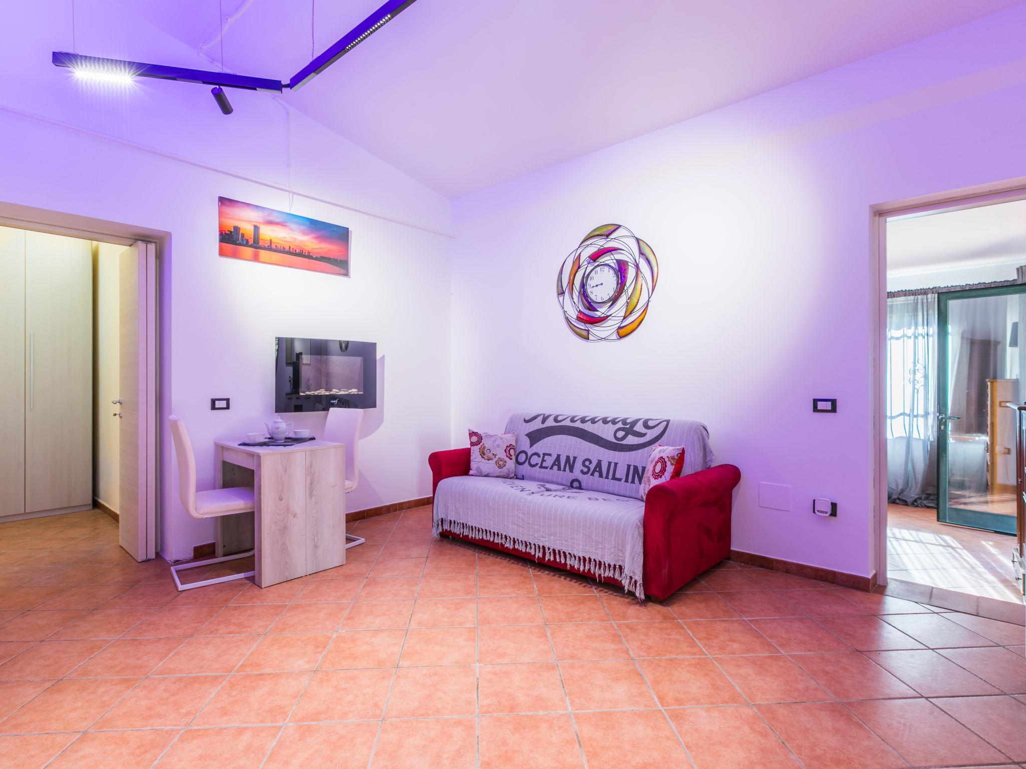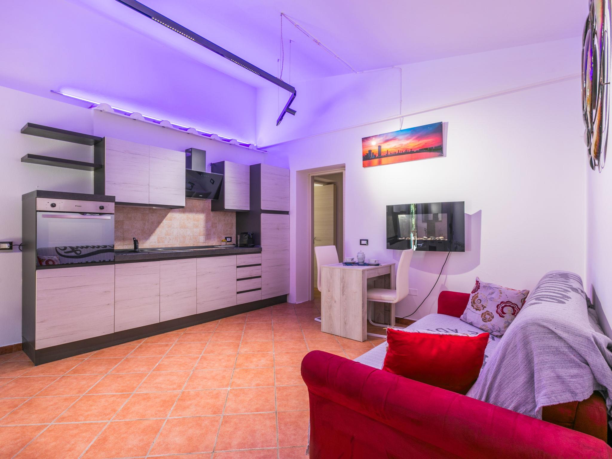 "Mattarello", 2-room apartment 50 m2, on the ground floor. Practical and cosy furnishings: living/dining room with 1 double sofabed and dining table. Exit to the veranda. 1 double bedroom with 1 double bed. Exit to the garden. Open kitchen (oven, 4 induction hot plates, toaster, kettle, freezer). Exit to the veranda. Shower/bidet/WC. Electric heating, air-conditioning. Large terrace roofed. Terrace furniture, barbecue, deck chairs (2). Facilities: washing machine, iron, mosquito net. Internet (WiFi, free). Please note: maximum 2 pets/ dogs allowed. Private entrance, fire extinguisher. IT050006C2BQTN3MEN