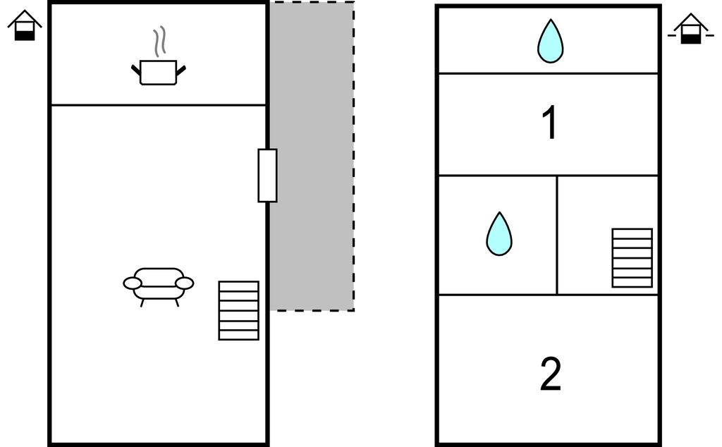 Opholdsstue - 2 Sovepladser. (Sofa, madras eller lignende).