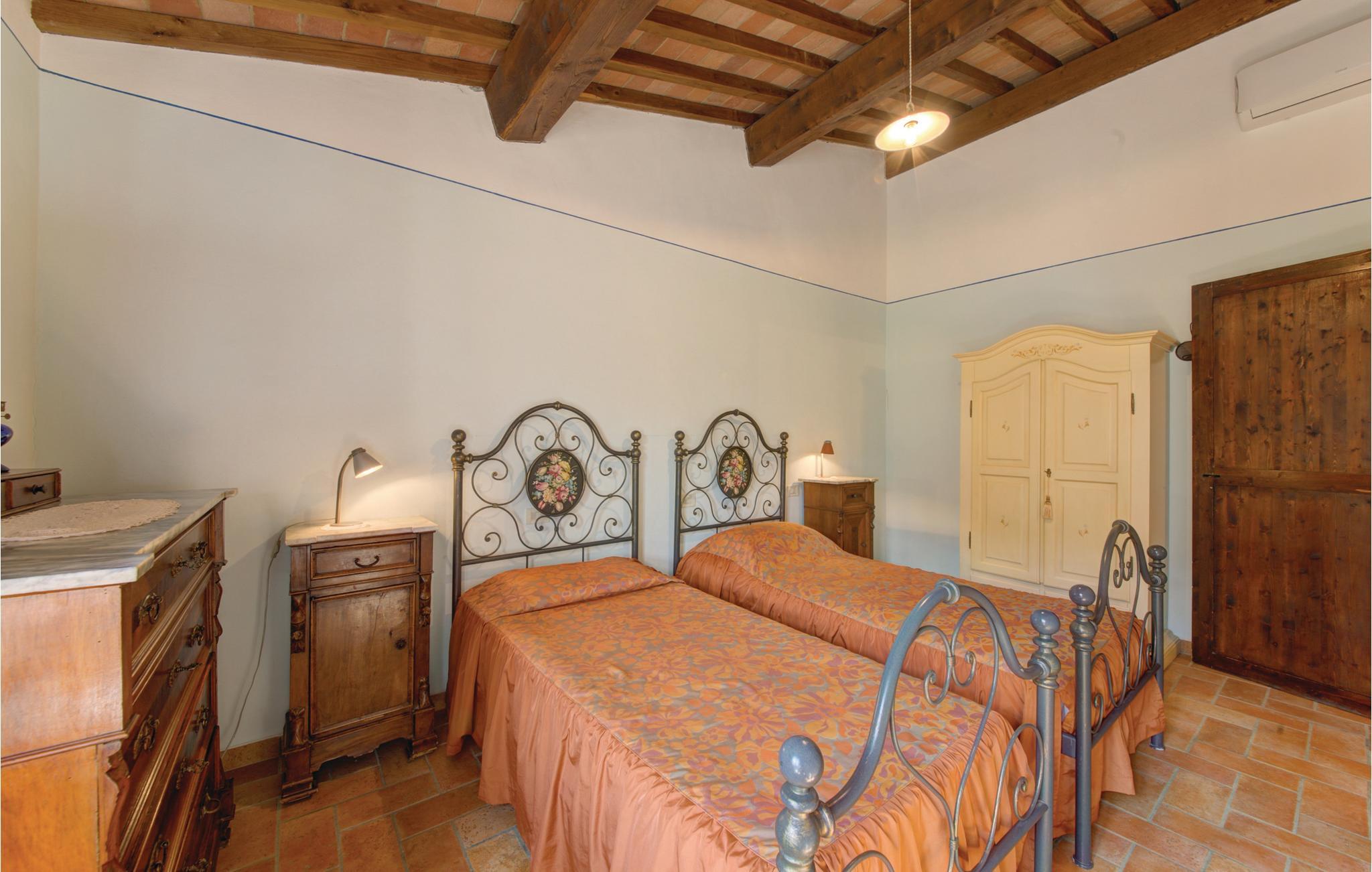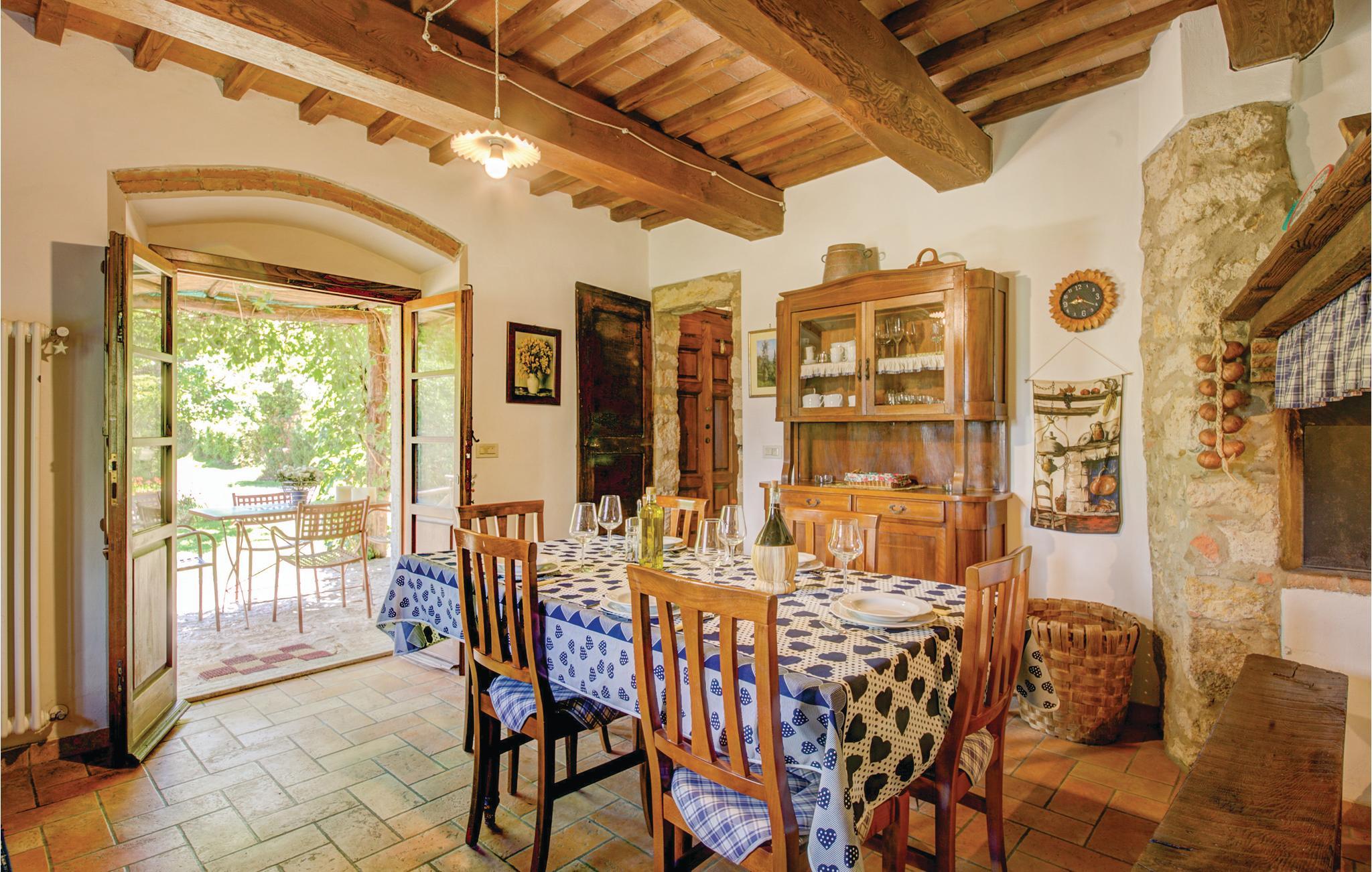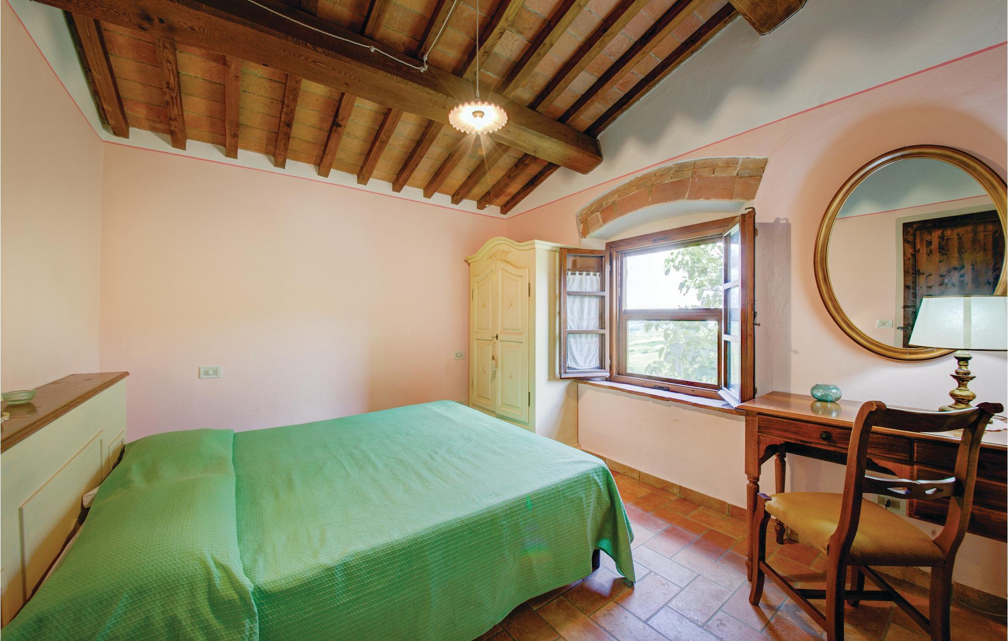 Dette landhus med pool ligger i et kuperet og solrigt terræn omkring 3 km fra Casciana Terme. I bor i provinsen Pisa med udsigt til Volterra (34 km) i det fjerne og byerne Terricciola og Morrona. Huset er omgivet af en stor grund på 10 ha med oliventræer, vinmarker og frugttræer, hvoraf en del er reserveret til huset. Her finder I poolen med en smuk udsigt over det omkringliggende landskab. Udenfor står to grills, hvoraf den ene står under en møbleret loggia. I har også adgang til en stenkamin og stenovn (med tag og belysning). Bordtennisbord, lille fodboldbane og en bocciabane. Huset har også en grøntsagshave og et område med aromatiske urter. Ejeren holder kyllinger og producerer olivenolie og honning. I Casciana Terme finder I, foruden forskellige butikker, kurbade og et wellnesscenter. I Lari (10 km) kan I besøge et smukt middelalderligt slot, og i Lajatico (15 km) kan I se det berømte Teatro del Silenzio. Castiglioncello med bugter og strande mellem høje klipper omkring 34 km herfra. I Volterra kan I beundre en næsten fuldstændig intakt mur af etruskisk oprindelse. Her finder I også det imponerende Palazzo dei Priori, et romersk amfiteater og karakteristiske gader med charmerende restauranter og butikker. I Pisa kan I se den spektakulære Piazza dei Miracoli, katedralen og det verdensberømte skæve tårn. ligger kun 37 km væk. Den middelalderlige by San Gimignano ligger ca. 47 km væk. I Firenze (75 km), fødestedet for Renæssancen, kan I se smukke torve, kirker, kunsteriske mesterværker og shoppeområder. To sammenklappelige senge til rådighed på anmodning. Adgang via en ikke-asfalteret vej (400 m).