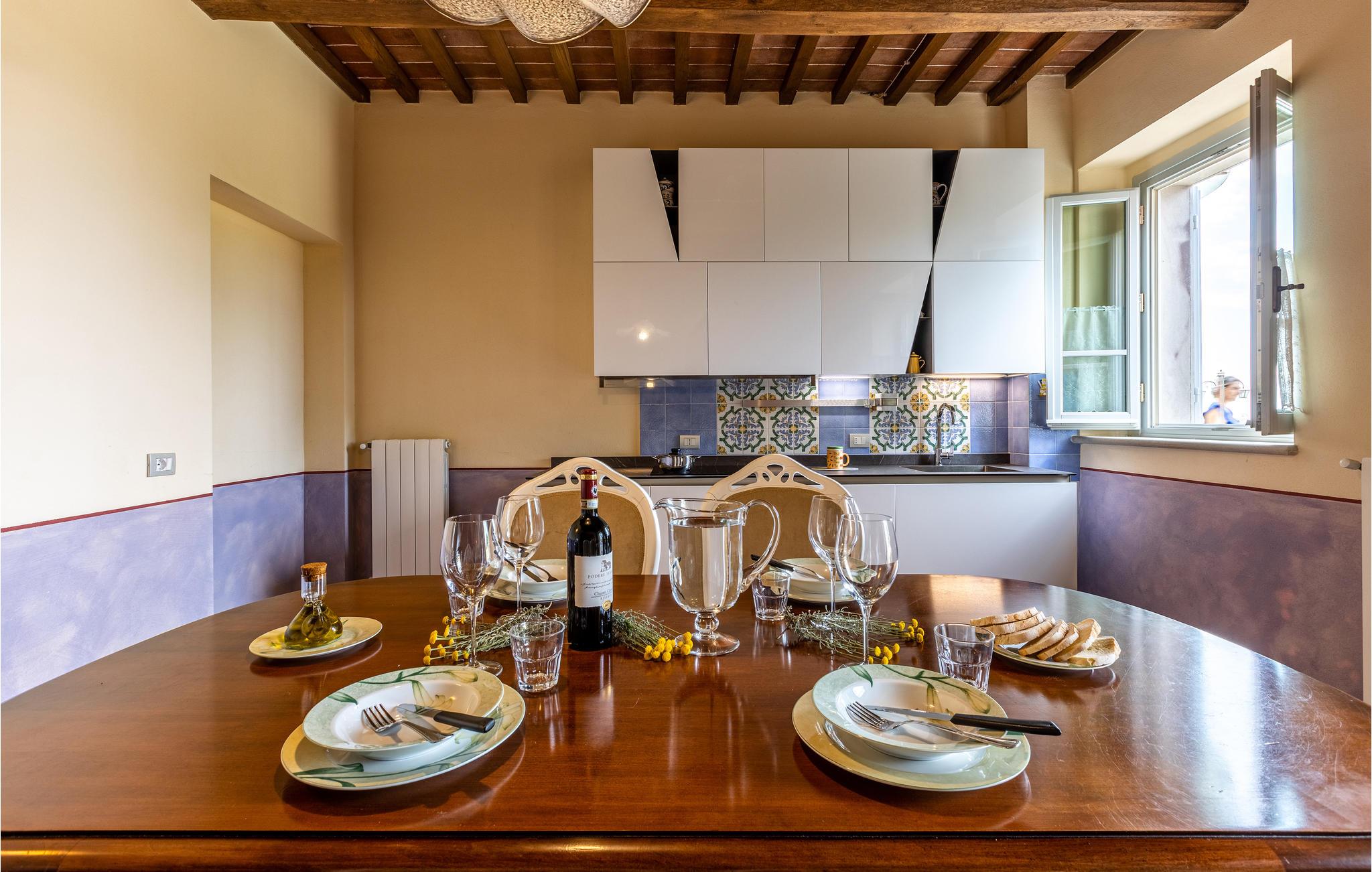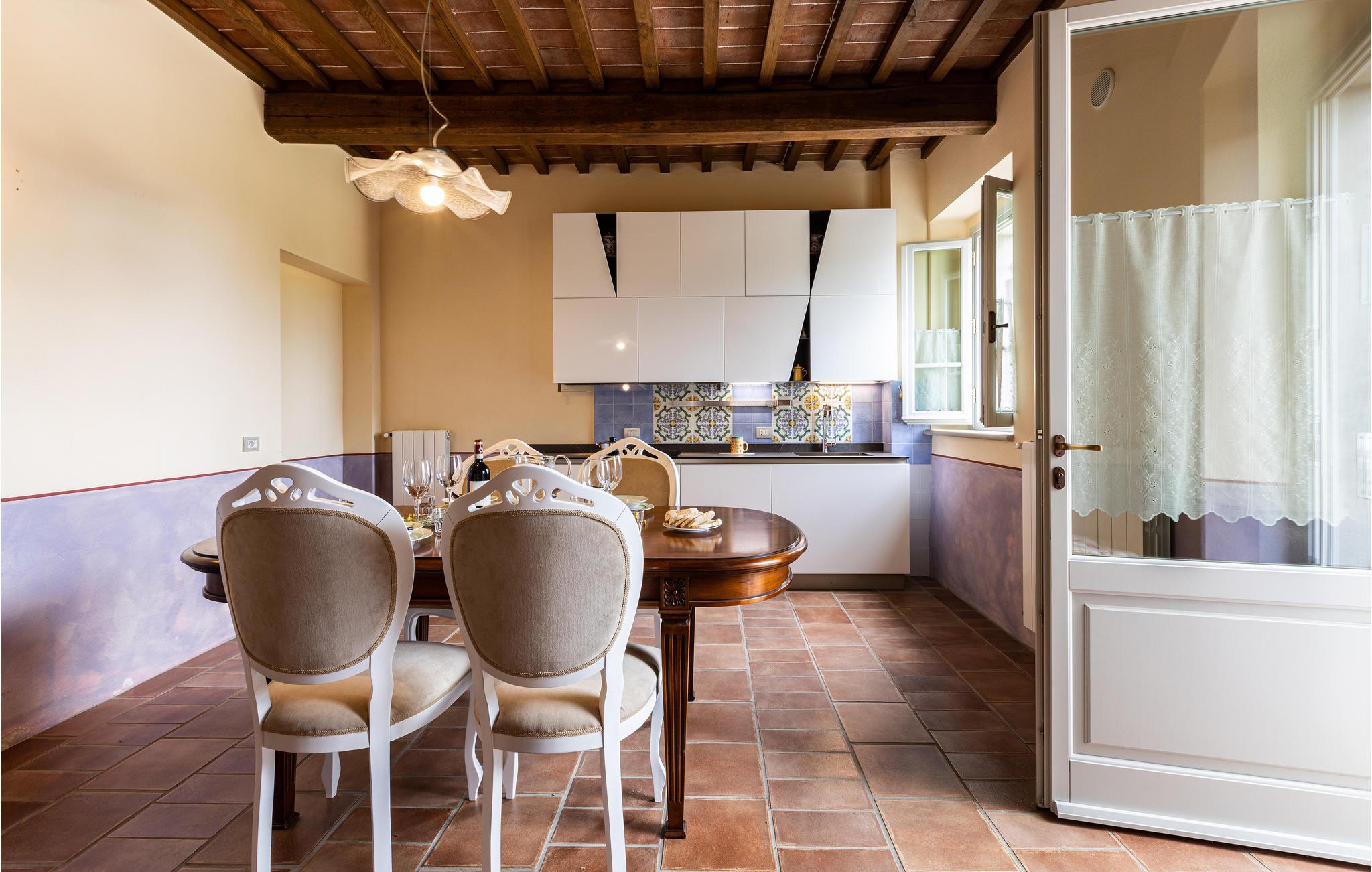 Dette klassiske italienske hus omgivet af den smukkeste natur er det ideelle udgangspunkt for en autentisk toscansk ferie. Den store pool inviterer jer til at plaske rundt og slappe af, inden I nyder en lækker middag i skyggen af oliventræerne. Jeres børn kan boltre sig på den store græsplæne og udforske plante- og dyrelivet i den smukke, store have.