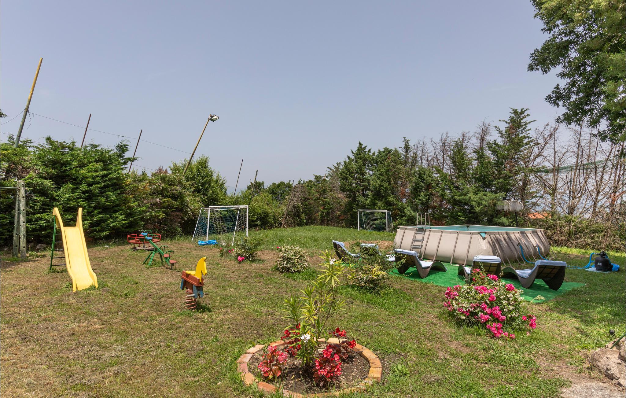 Den skønne ejendom byder på masser af plads til at lege og slappe af. Slap af i skyggen med en bog, nyd solen og den fantastiske udsigt over området, og køl ned i den overjordiske pool. En dejlig dag slutter her med et lækkert måltid fra grillen.
