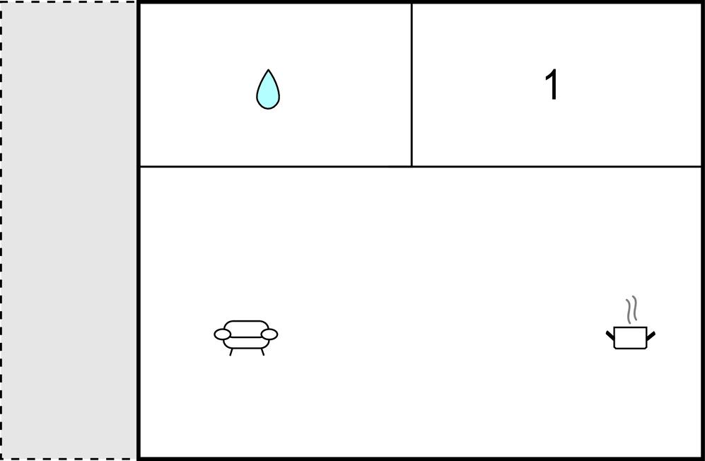 Opholdsstue/køkken - 1 Soveplads. (Sofa, madras eller lignende).
