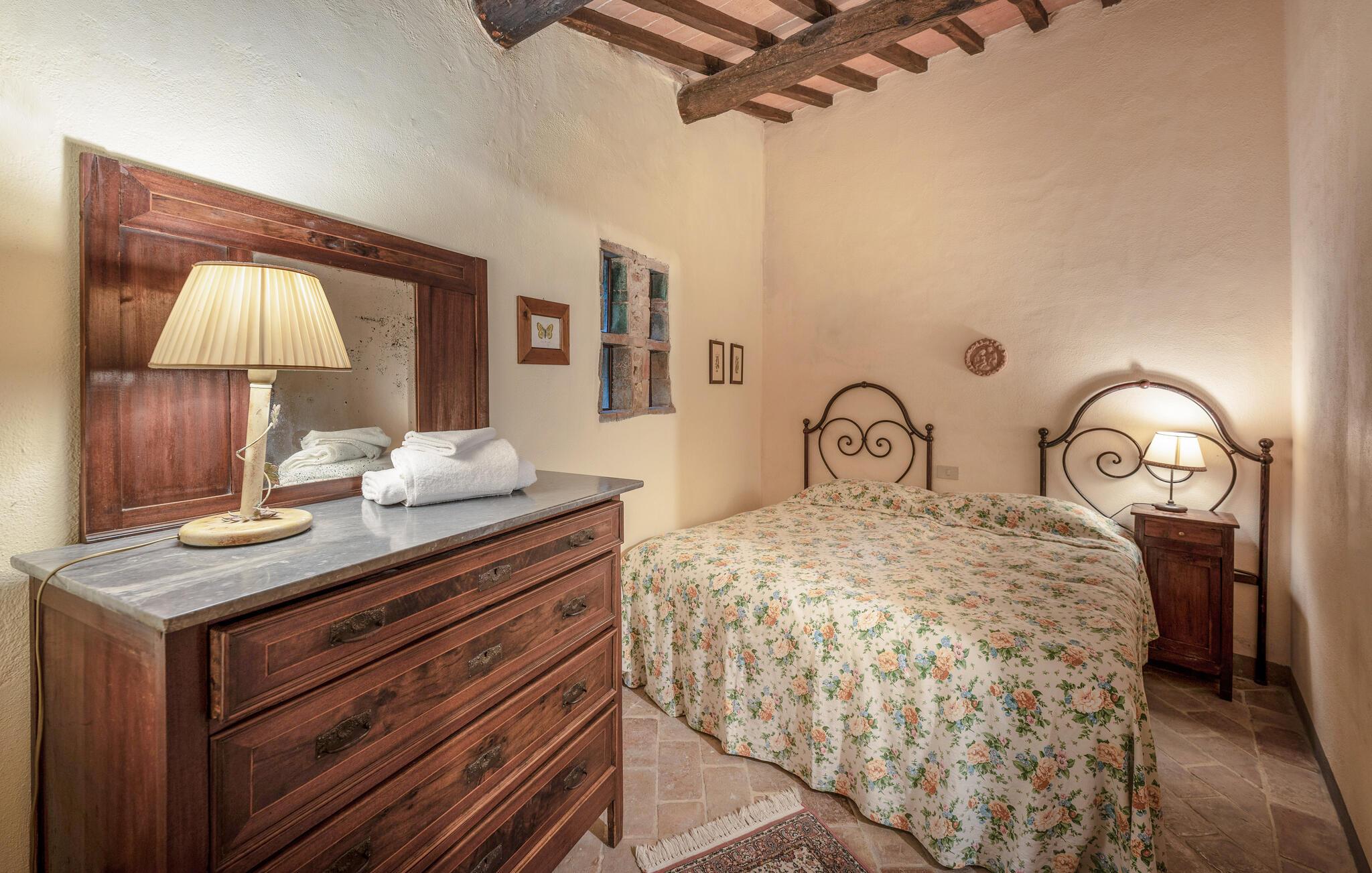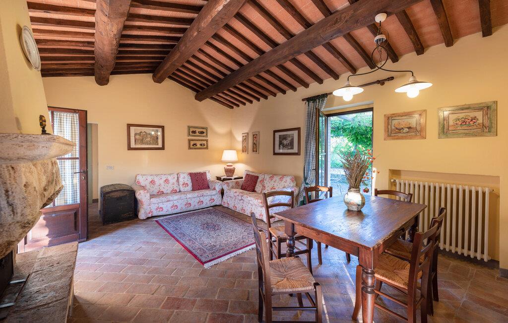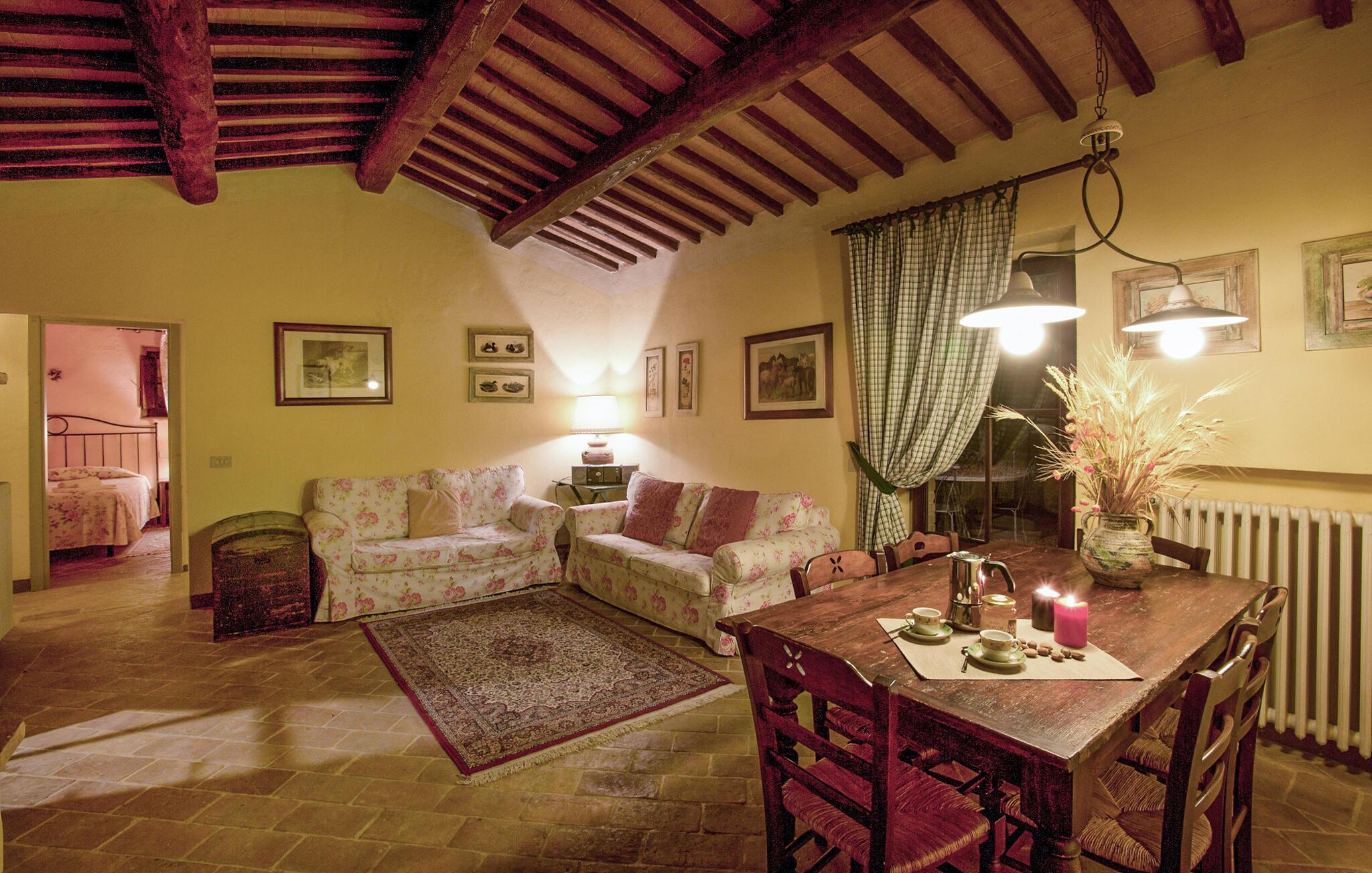 Denne hyggelige lejlighed er placeret på et karakterfuldt toscansk landsted og har fine autentiske detaljer. Synlige træbjælker i loftet og rustikke møbler skaber en historisk atmosfære, der hurtigt vil få jer til at føle jer hjemme. Slap af med god musik, nyd en sjov spilleaften eller lav lækre måltider i det moderne køkken.