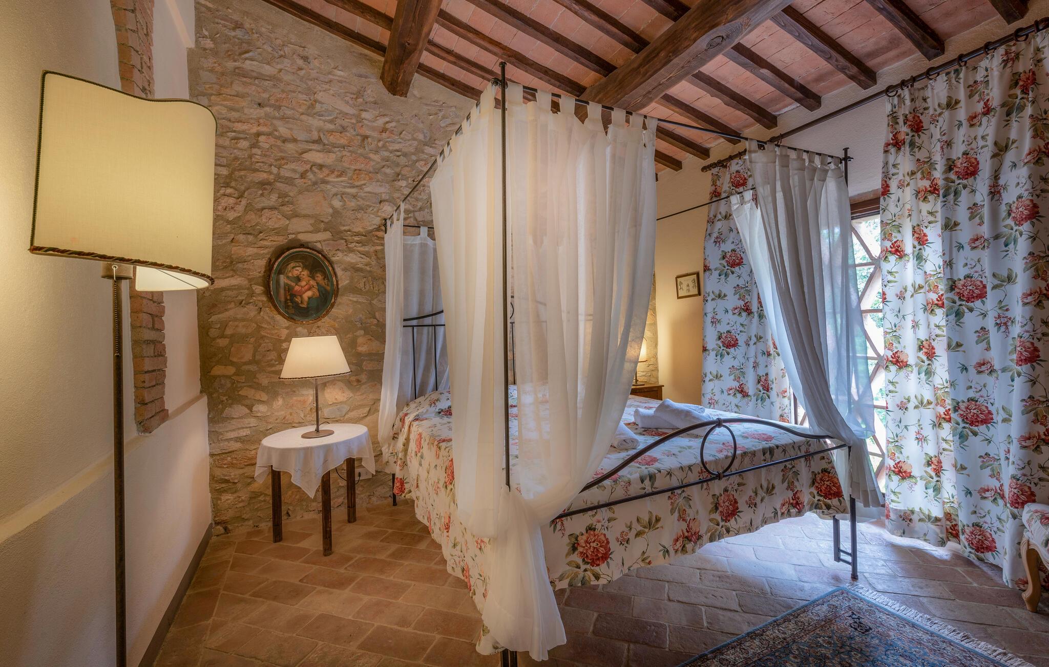 Denne hyggelige lejlighed er placeret på et karakterfuldt toscansk landsted og har fine autentiske detaljer. Synlige træbjælker i loftet og rustikke møbler skaber en historisk atmosfære, der hurtigt vil få jer til at føle jer hjemme. Slap af med god musik, nyd en sjov spilleaften eller lav lækre måltider i det moderne køkken.