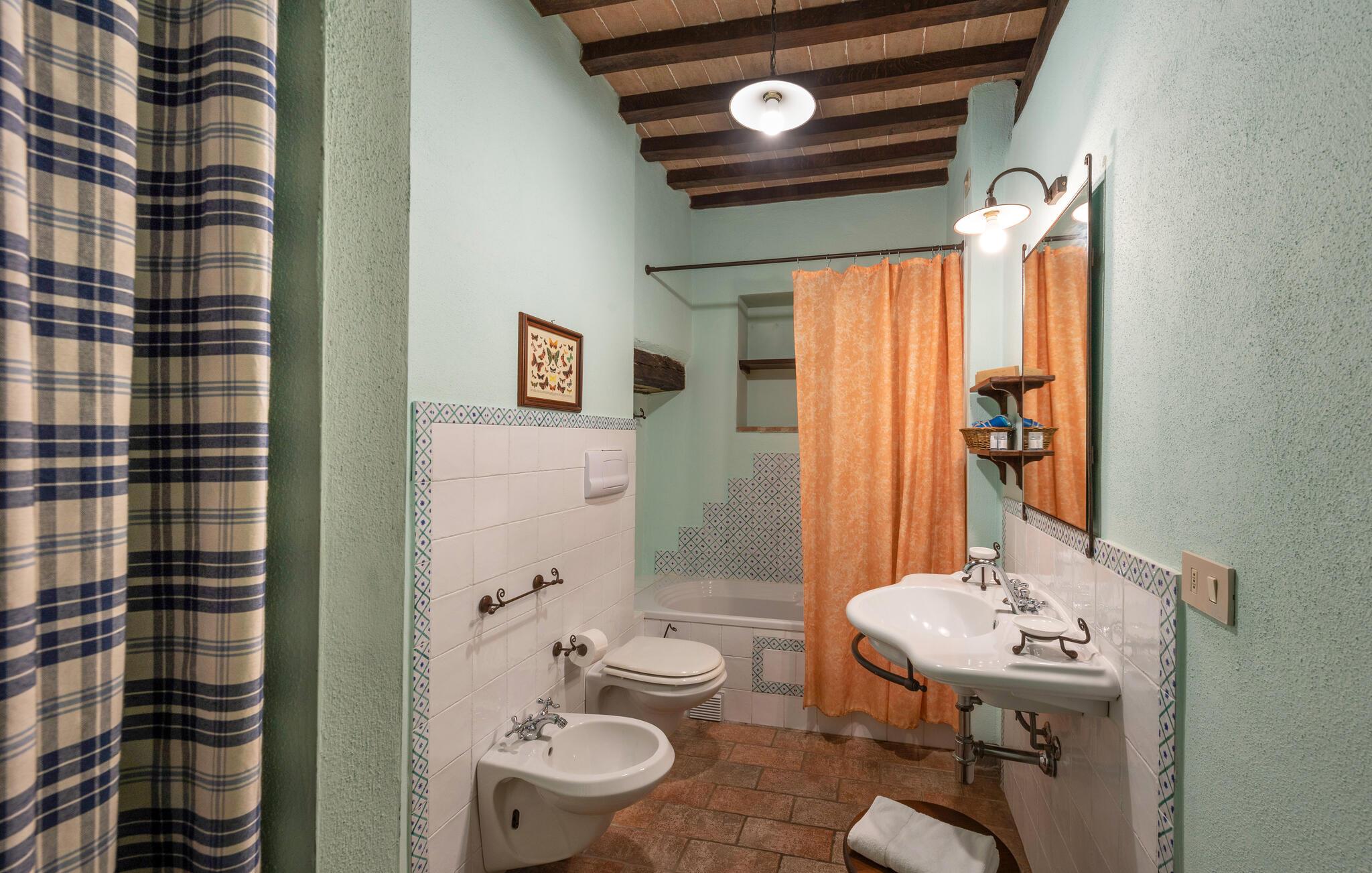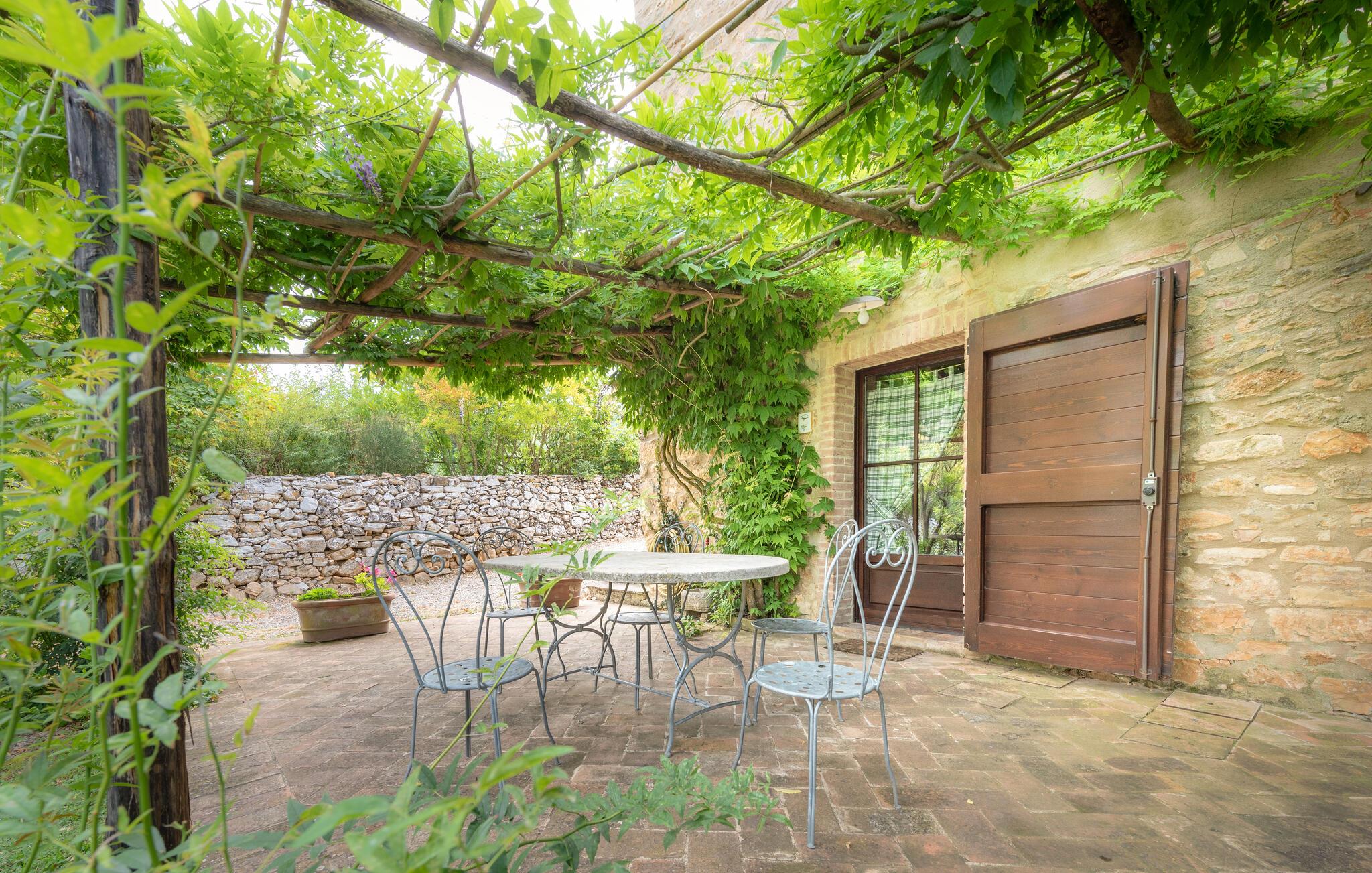 Denne hyggelige lejlighed er placeret på et karakterfuldt toscansk landsted og har fine autentiske detaljer. Synlige træbjælker i loftet og rustikke møbler skaber en historisk atmosfære, der hurtigt vil få jer til at føle jer hjemme. Slap af med god musik, nyd en sjov spilleaften eller lav lækre måltider i det moderne køkken.