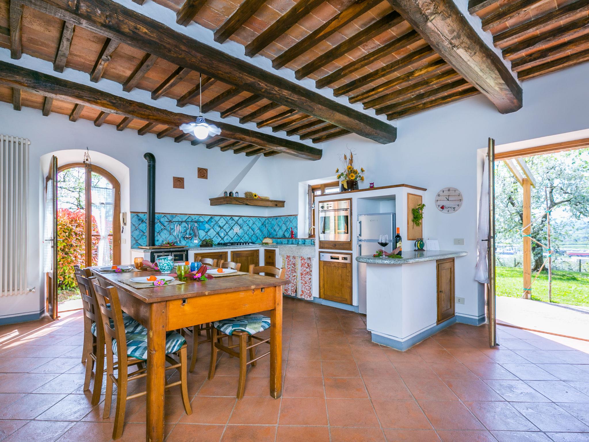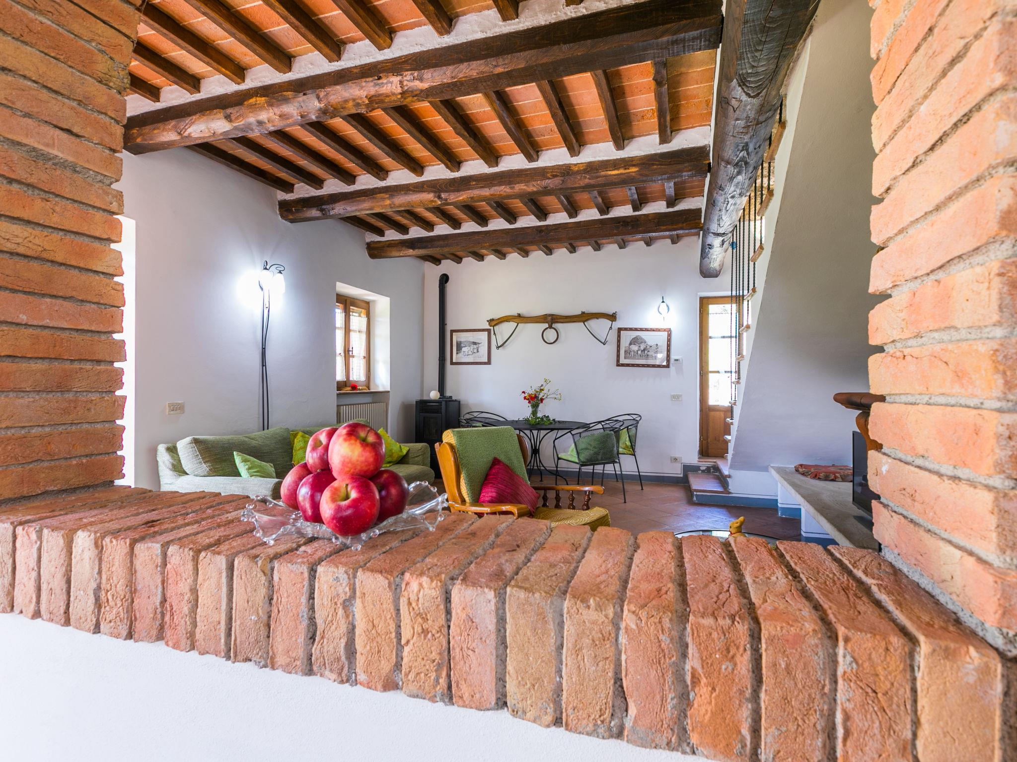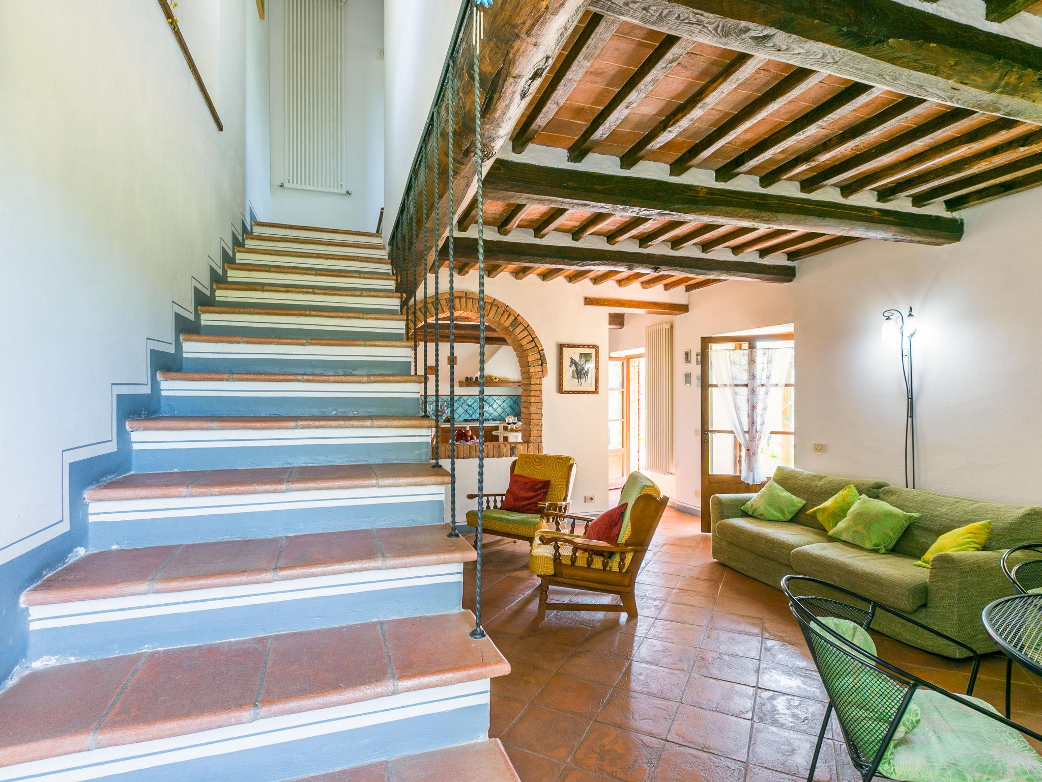 "Il Fienile", 4-room house 95 m2 on 2 levels. Object suitable for 4 adults + 2 children. Spacious, renovated, tasteful and cosy furnishings: living/sleeping room with 1 double sofabed, open-hearth fireplace and satellite TV (flat screen). Exit to the terrace. Large, open kitchen (oven, dishwasher, 4 gas rings, freezer, electric coffee machine) with dining table. Exit to the garden. Shower/bidet/WC. Upper floor: 1 double bedroom. 1 double bedroom. Exit to the terrace. Bath/shower/bidet/WC, double hand-basin. Gas heating (extra). Natural stone floors. Comfortable furnishings in the country house style. Terrace partly roofed, large terrace 40 m2. Terrace furniture, barbecue (portable), deck chairs, box-room. Facilities: washing machine, children's high chair, baby cot for up to 2 year olds. Internet (WiFi, free). Parking (roofed, 2 cars). Please note: suitable for families. Non-smokers only. Maximum 1 pet/ dog allowed. IT052004C2Y9QZ8N36