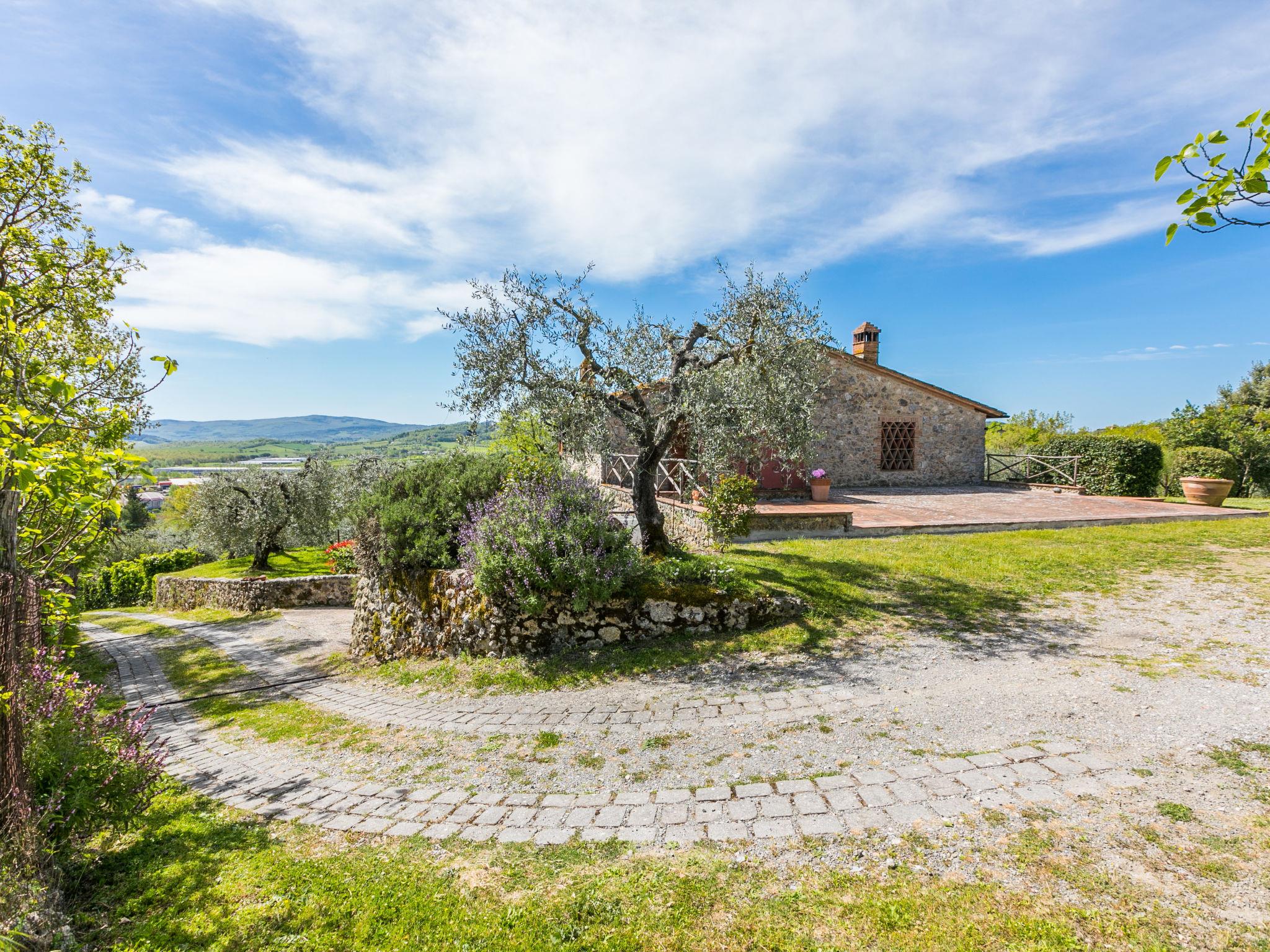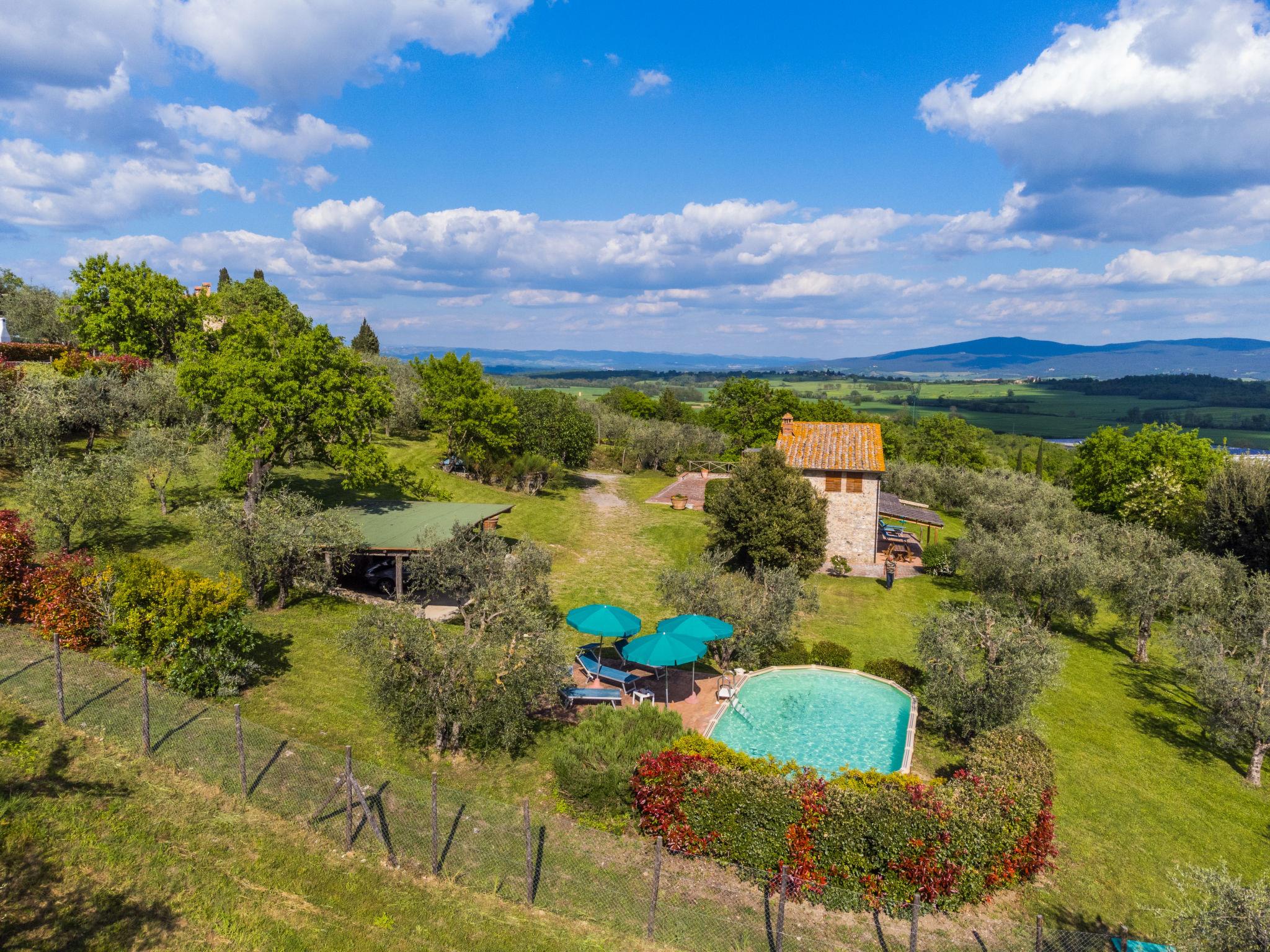 Lucciana 3 km from Casole d'Elsa: Very beautiful, comfortable house "Il Fienile", 2 storeys, renovated, surrounded by meadows and vineyards. In the hamlet Lucciana 3 km from the centre of Casole d'Elsa, 11 km from the centre of Colle di Val d'Elsa, in an elevated position on a slope. Private: property 3'000 m2 (fenced) with trees, meadow, swimming pool (above ground) (8 x 4 m, seasonal availability: 15.May. - 15.Oct.). Outdoor shower, garden furniture, barbecue, pool maintenance by the owner/gardener. Motor access (100 m via unmade road). Roofed, parking on the premises. Grocery 3 km, supermarket 11 km, restaurant 3 km, bar 3 km, bakery 3 km, pedestrian zone 3 km, bus stop "Casole d'Elsa" 3 km, railway station "Colle di Val d'Elsa" 11 km, sandy beach "Cecina Mare" 62 km, indoor swimming pool 11 km. Nearby attractions: San Gimignano 19 km, Volterra 23 km, Siena 38 km, Firenze 65 km. Please note: suitable for families, baby equipment (included). Object suitable for 4 adults + 2 children.