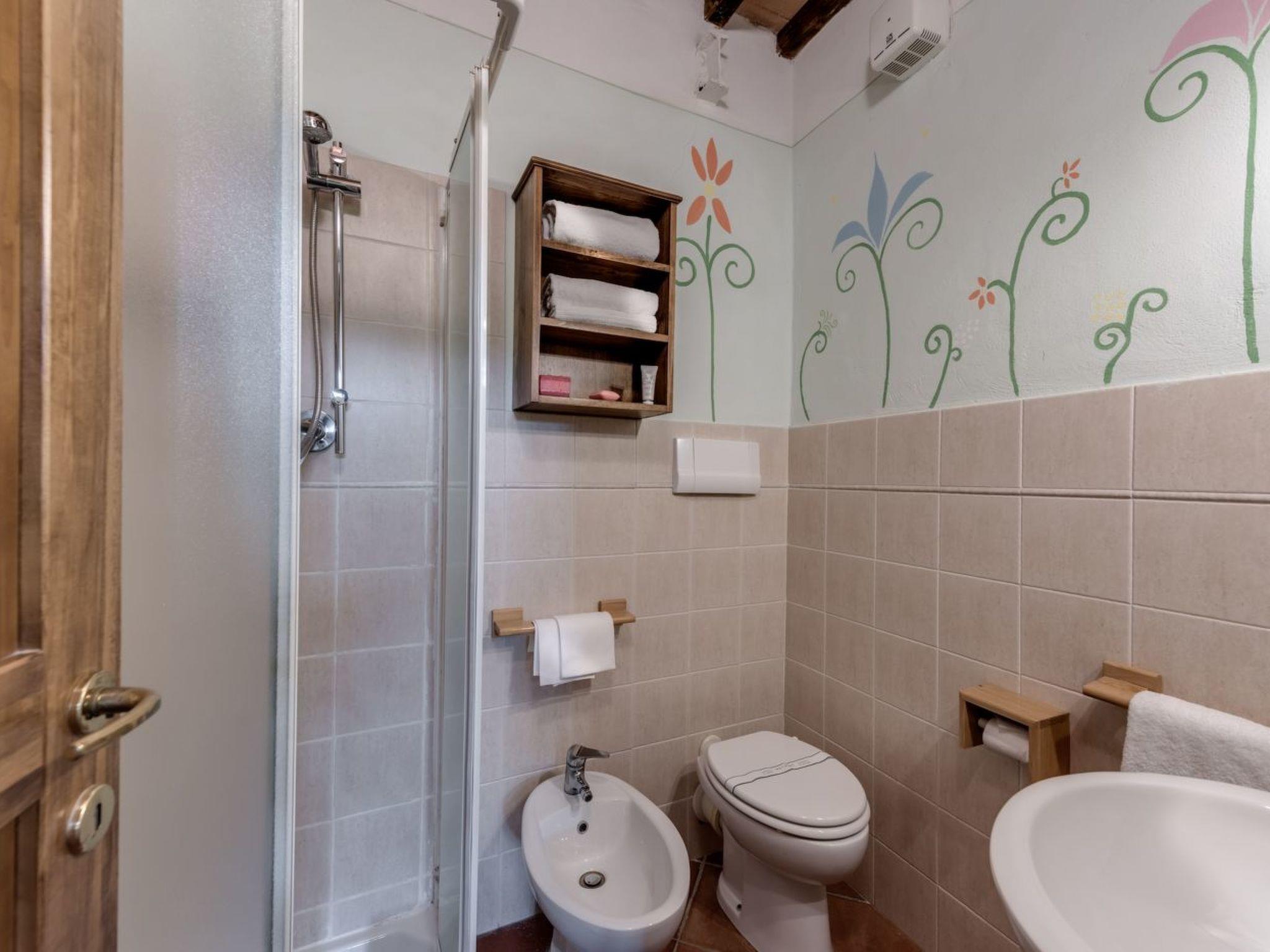 The flat's location is strategic: situated only 3000 metres from the nearest town centre and grocery shops, it allows you to easily explore the surrounding area, rich in history, culture and natural beauty. Whether you want to stroll through the narrow streets of ancient villages or explore the Tuscan countryside, everything is at your fingertips. For eco-conscious guests, a charging station for electric cars is also available, making it easy to travel sustainably.