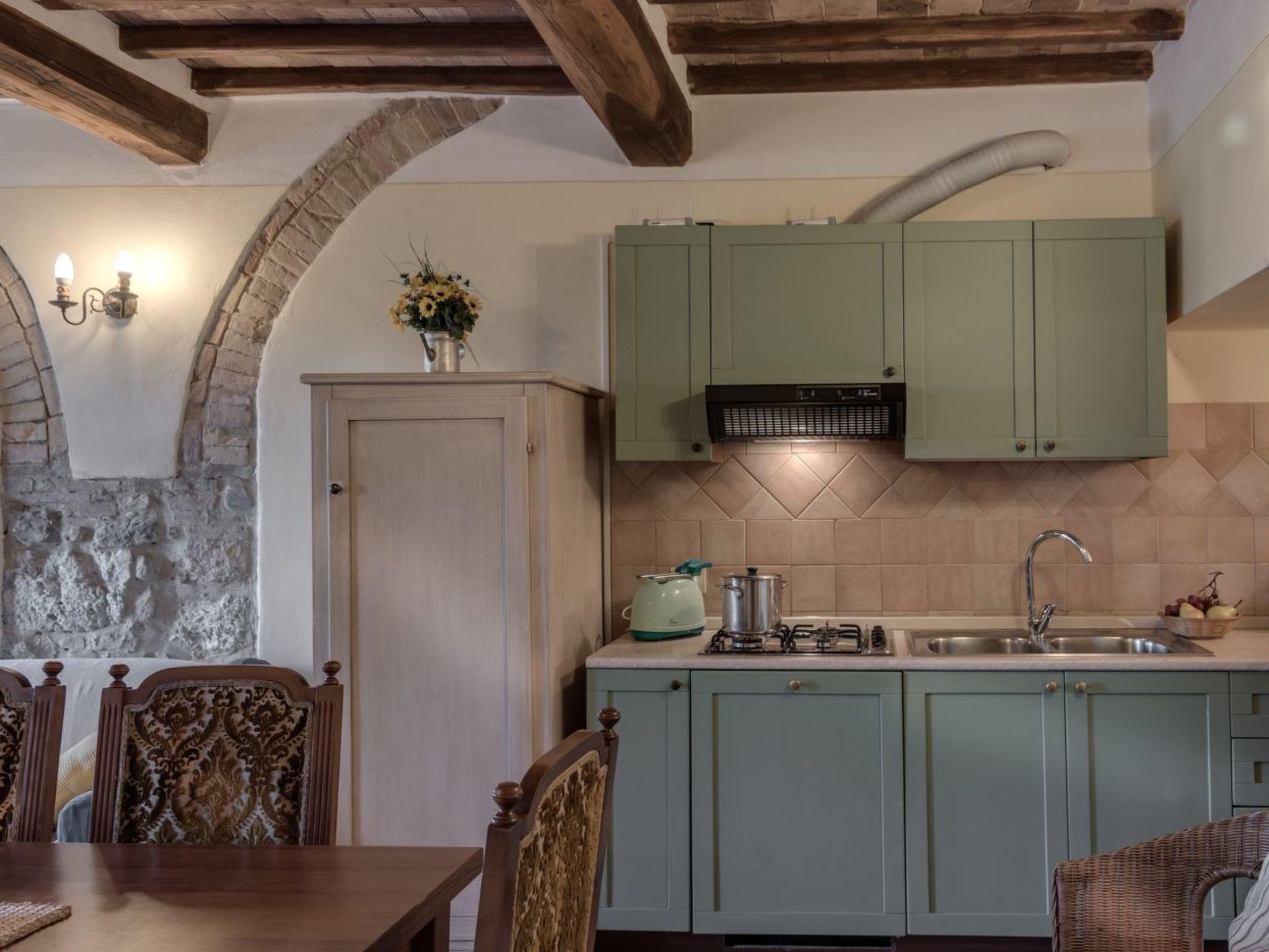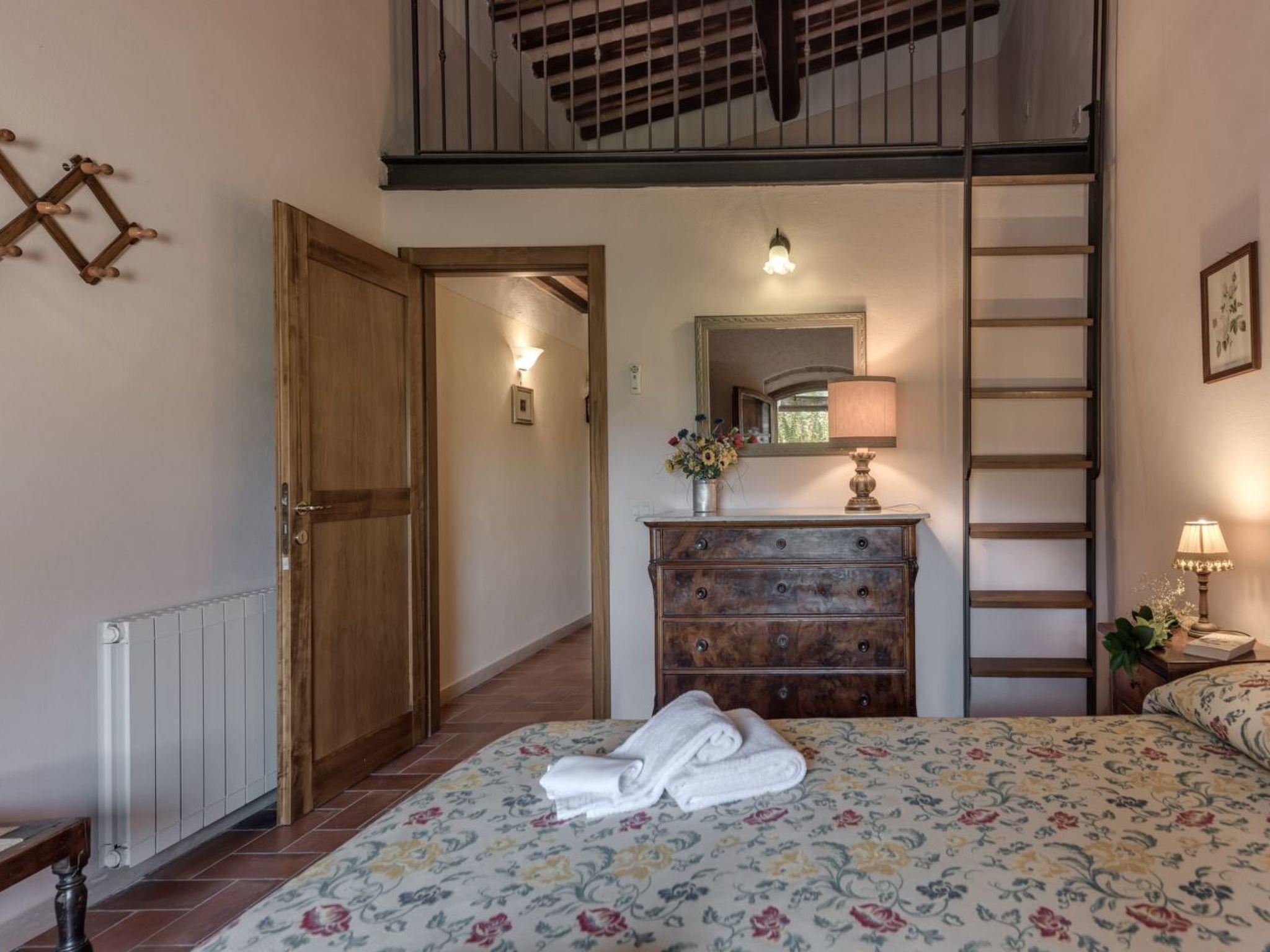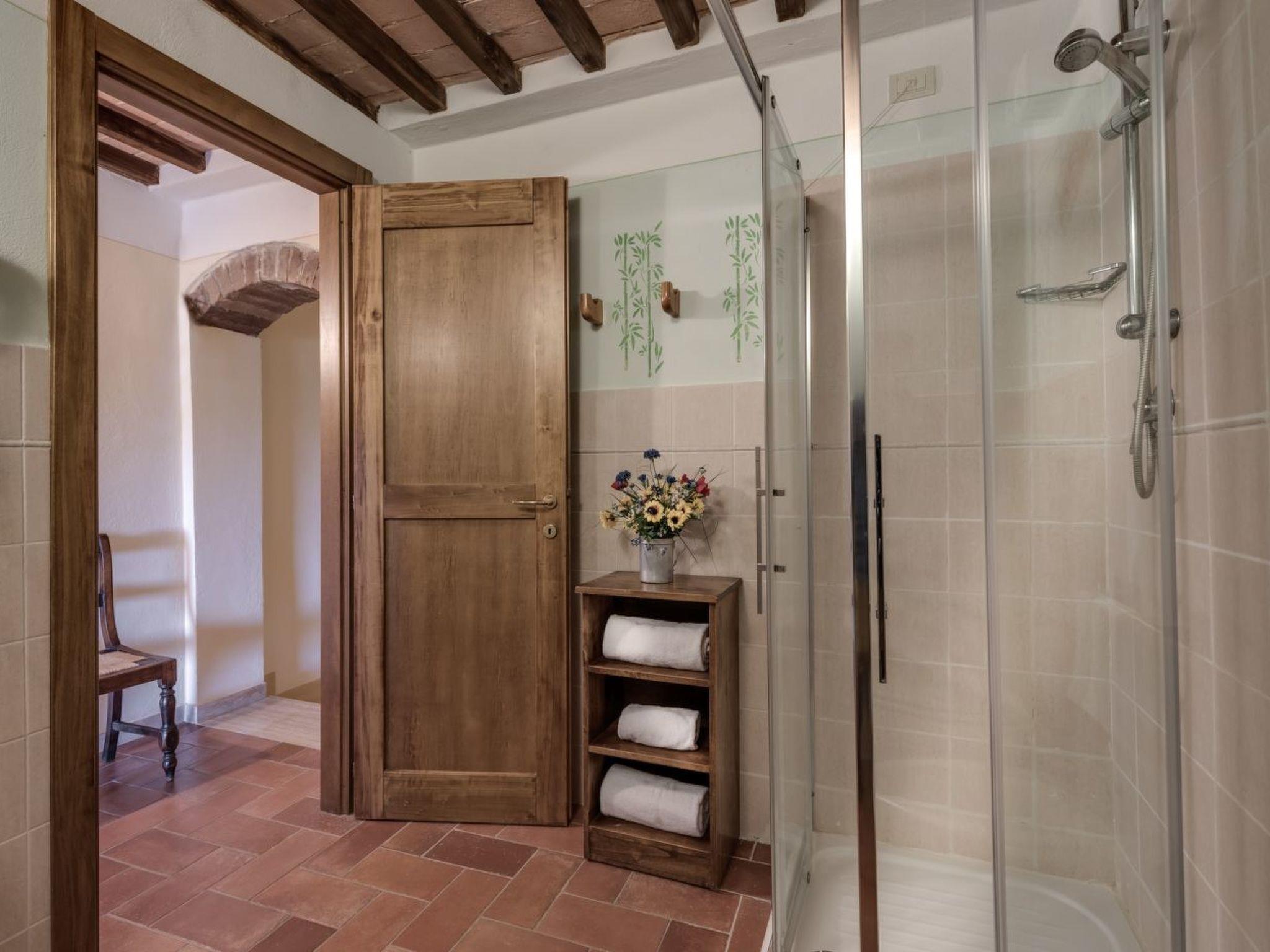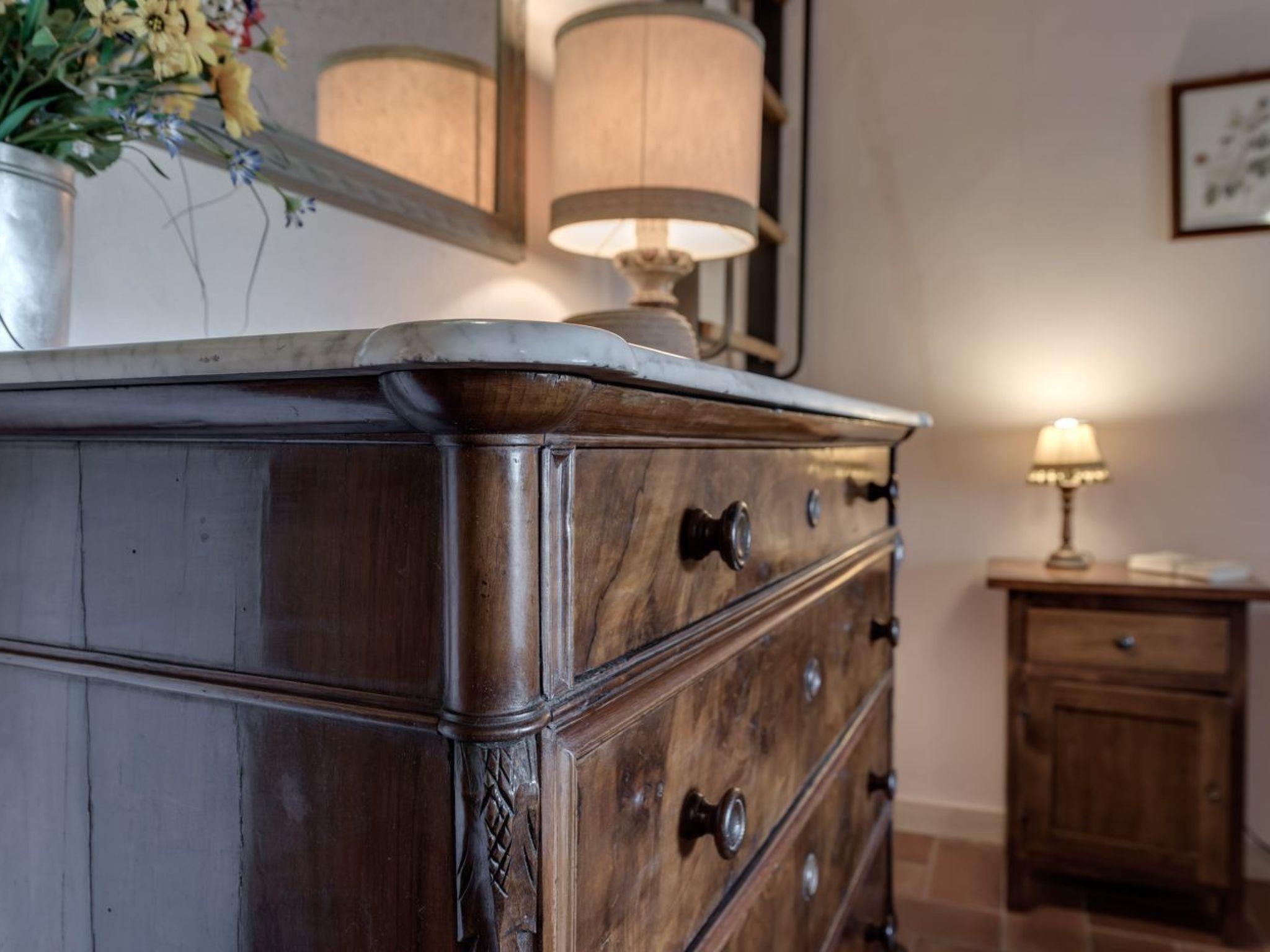 Outside, the flat's private garden becomes an idyllic space to relax and enjoy the peaceful surroundings, with the possibility of dining al fresco or simply relaxing under the Tuscan sun. The flat also shares a beautiful swimming pool with other guests of the property, offering a perfect place to cool off on hot days.