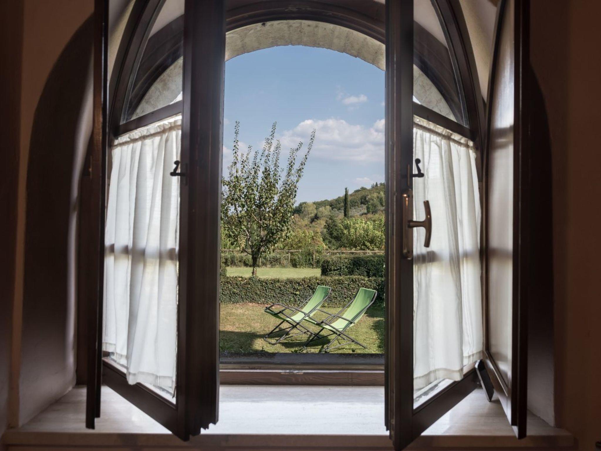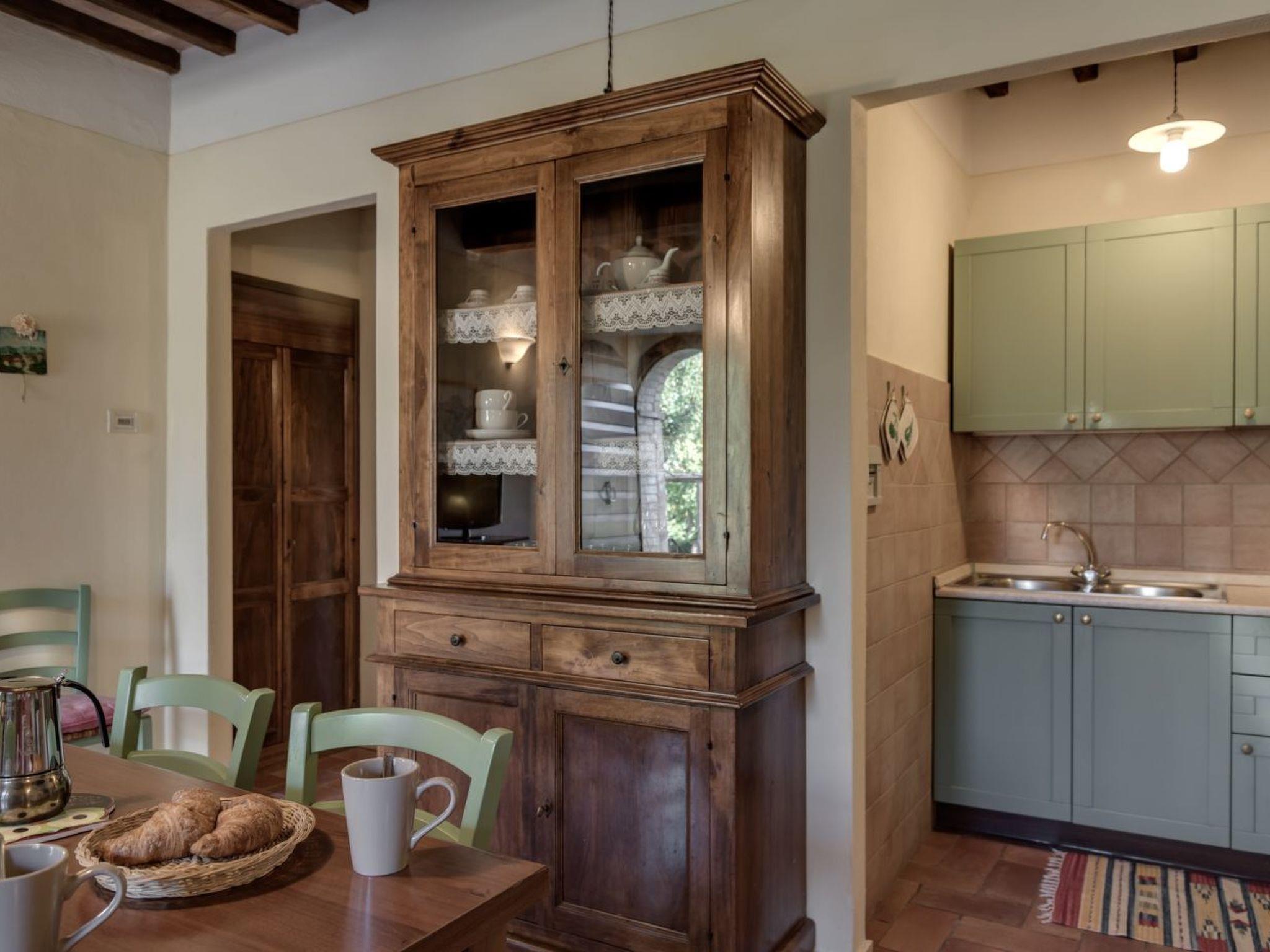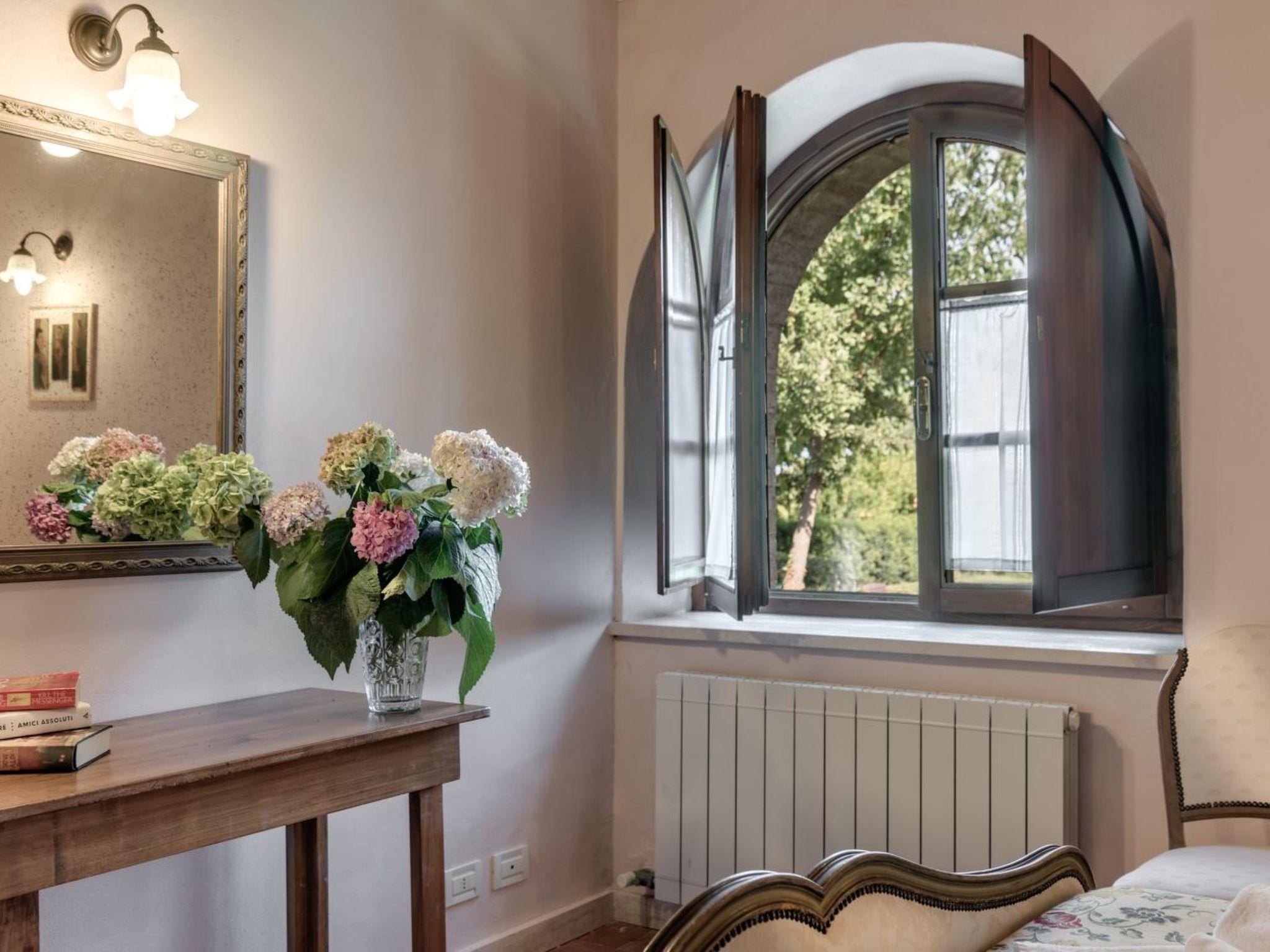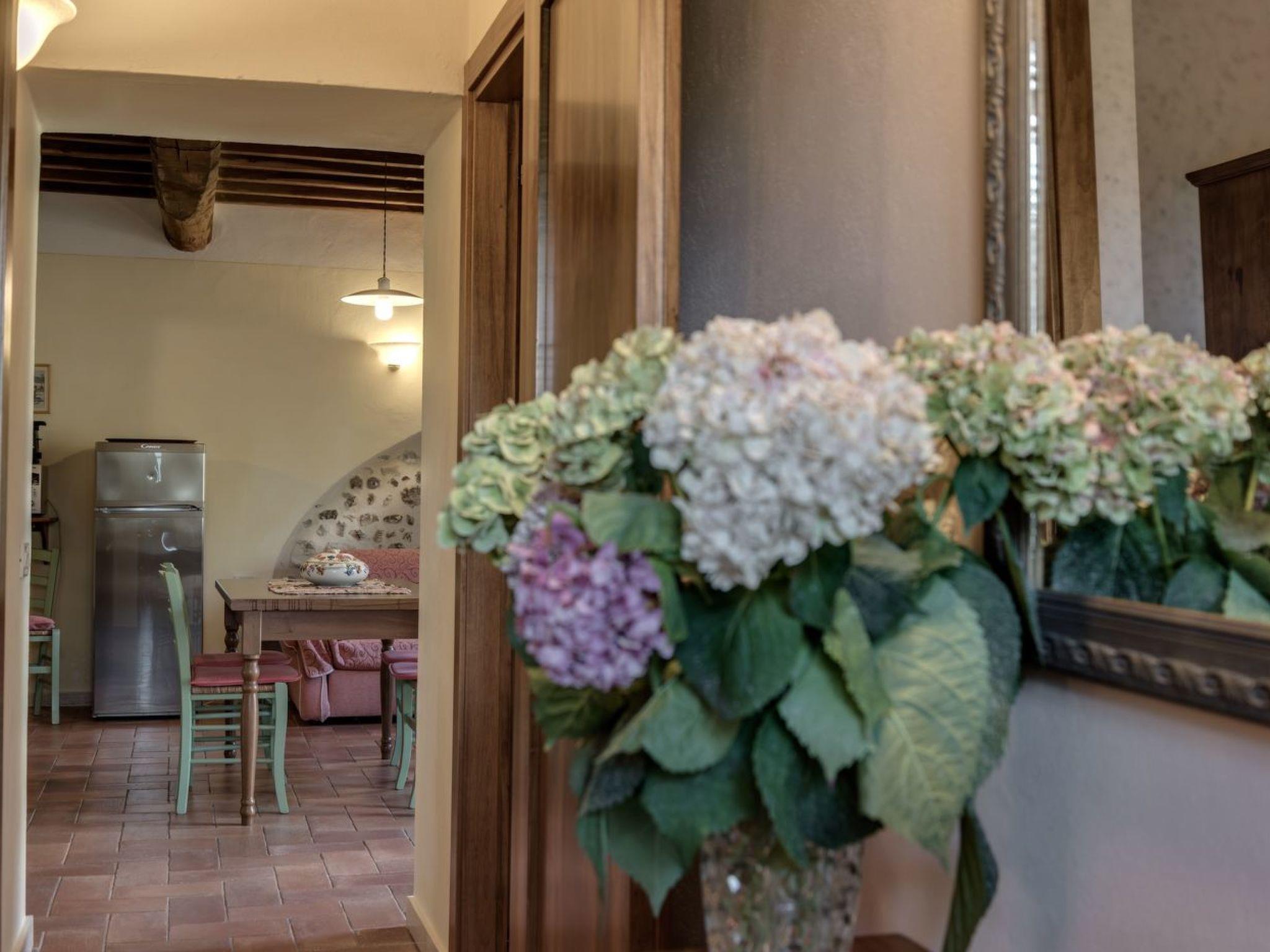 The private, furnished garden is an exclusive space where one can relax in the open air, perhaps reading a book or enjoying a meal under the Tuscan sky. The swimming pool for communal use is a further relaxing touch, offering coolness on hot days with a cosy and soothing ambience.