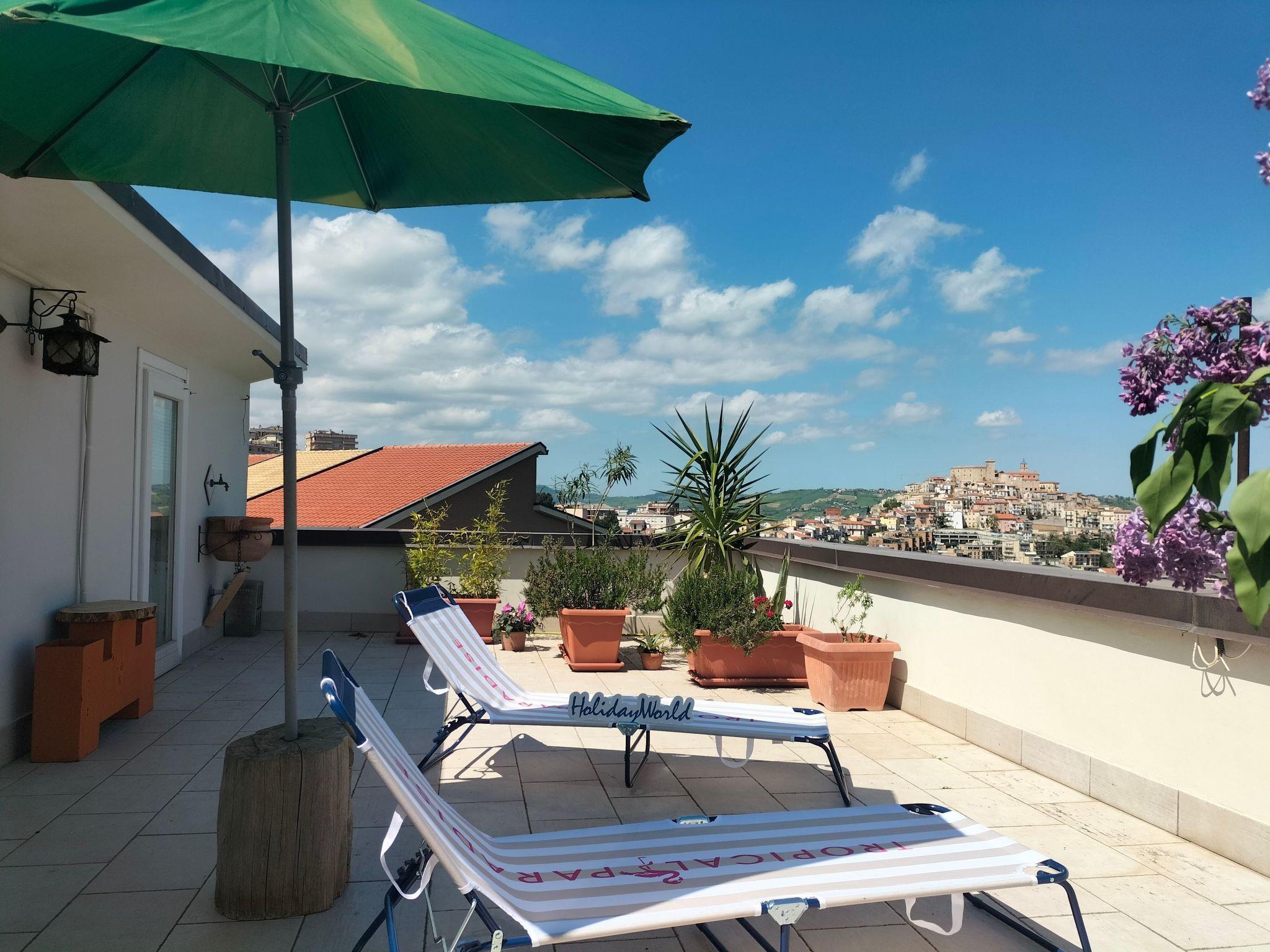 nature, where every glimpse tells a story and invites wonder. This place is called Quercia Grande, and it is our holiday home nestled in the countryside of Casoli, a village that proudly guards its traditions, its history and a simple but powerful beauty. Just a ten-minute walk from the historic centre, you will already find yourself surrounded by greenery and enveloped in regenerating tranquillity. The house is located in a sunny and quiet area, with large windows that make it bright and naturally ventilated. It is the perfect place to wake up in the morning light, listen to the silence, breathe deeply and be enveloped in peace. The spacious and cosy flat measures approximately 100 square metres and is located on the first floor of a small villa with a separate entrance. Each room has been furnished with love and attention to detail, blending modern comforts and authentic atmospheres. The kitchen is modern and well-equipped, the spacious and bright living room invites you to relax, and the two double bedrooms overlook the greenery with balconies ideal for a morning coffee. The two bathrooms - one with bathtub, the other with shower - offer practicality and comfort. There is also a versatile room, perfect as a children's bedroom, study or reading corner. The corridor connects the rooms with natural light and warm, colourful furnishings. The attic leads to a private roof terrace, a private corner ideal for sunbathing or enjoying dinner under the stars. The garden, shared and shaded by a large oak tree, is perfect for relaxing, reading, playing or having a barbecue. Inside, a small attic loft offers a cosy space, ideal for those seeking a quiet retreat or a moment to themselves.