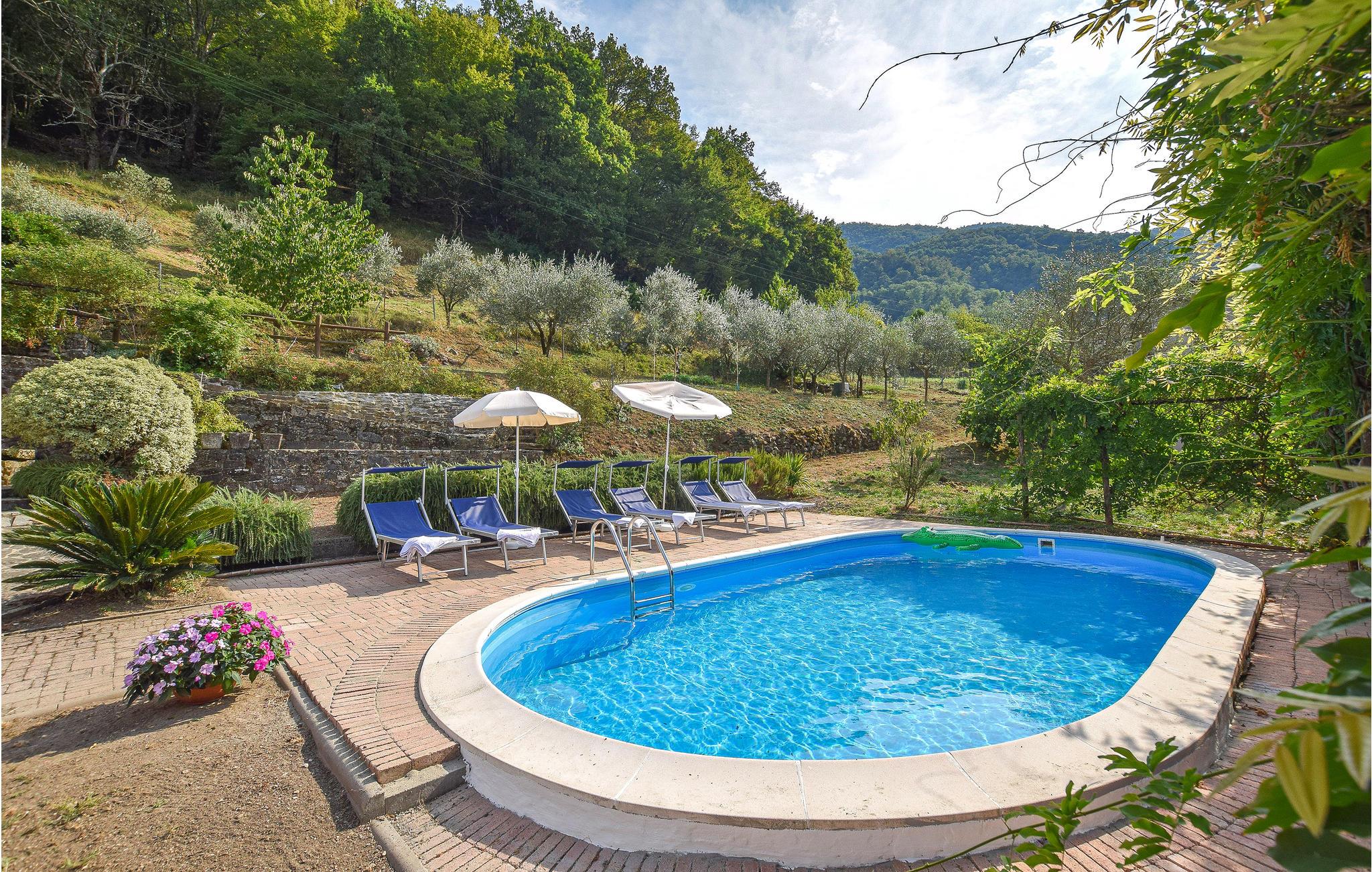 Sommerhuset "Casa Castagnetoli" er indlejret i landskabet i Lunigiana og er beliggende i den lille, maleriske middelalderlandsby Castagnetoli, hvor tiden synes at stå stille. Sommerhuset er charmerende indrettet og imponerer især med sit smukke udendørsområde. Ved den private pool kan I slappe af i liggestolene og nyde det vidunderlige toscanske klima og det smukke panorama hele dagen lang. Den asfalterede gård er delt, men har et område forbeholdt jer, som er udstyret med et bord og stole. Her kan I spise jeres morgenmad og senere afslutte dagen med et glas lokal vin. En grill er tilgængelig til hyggelige grillaftener.