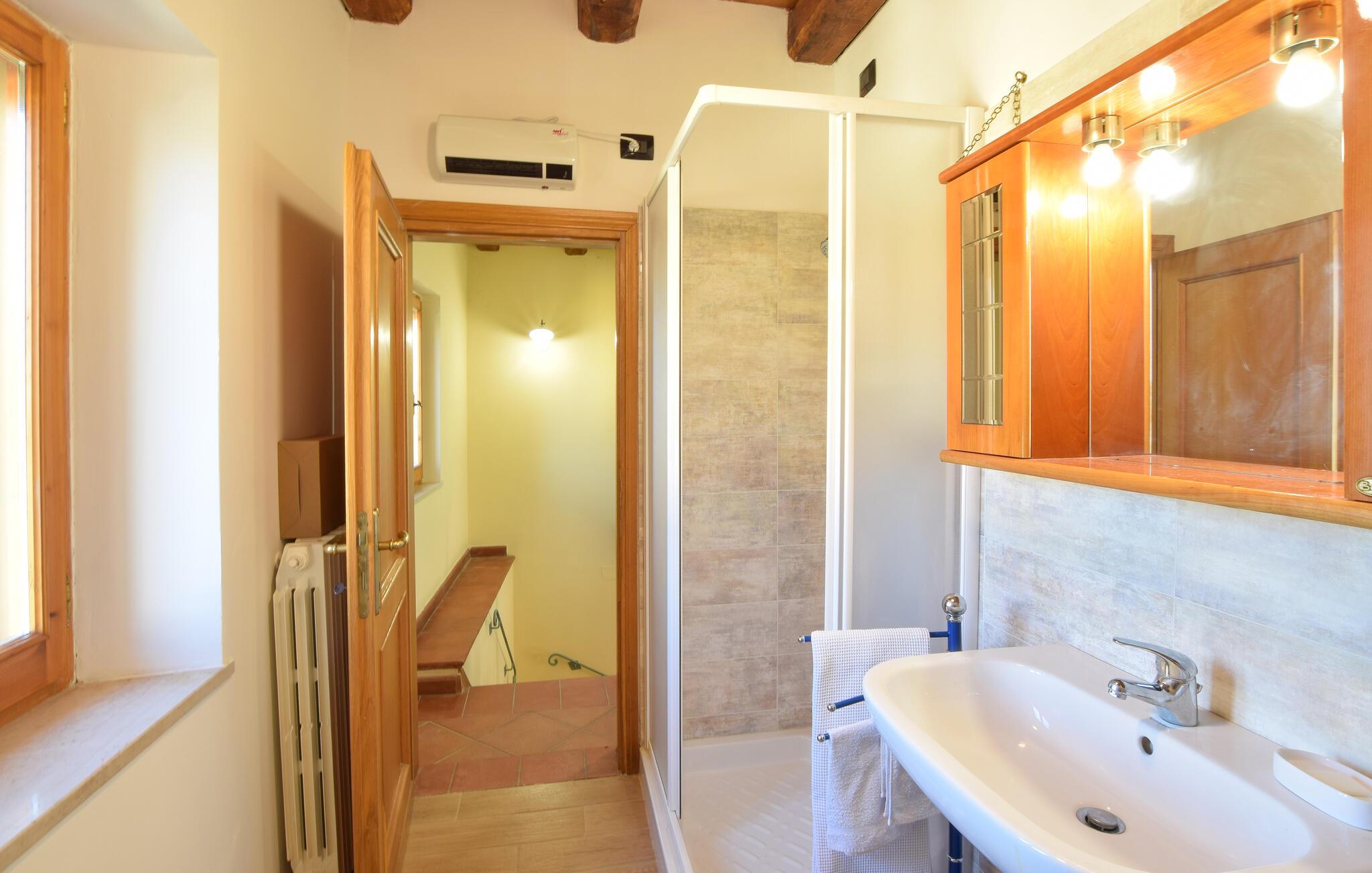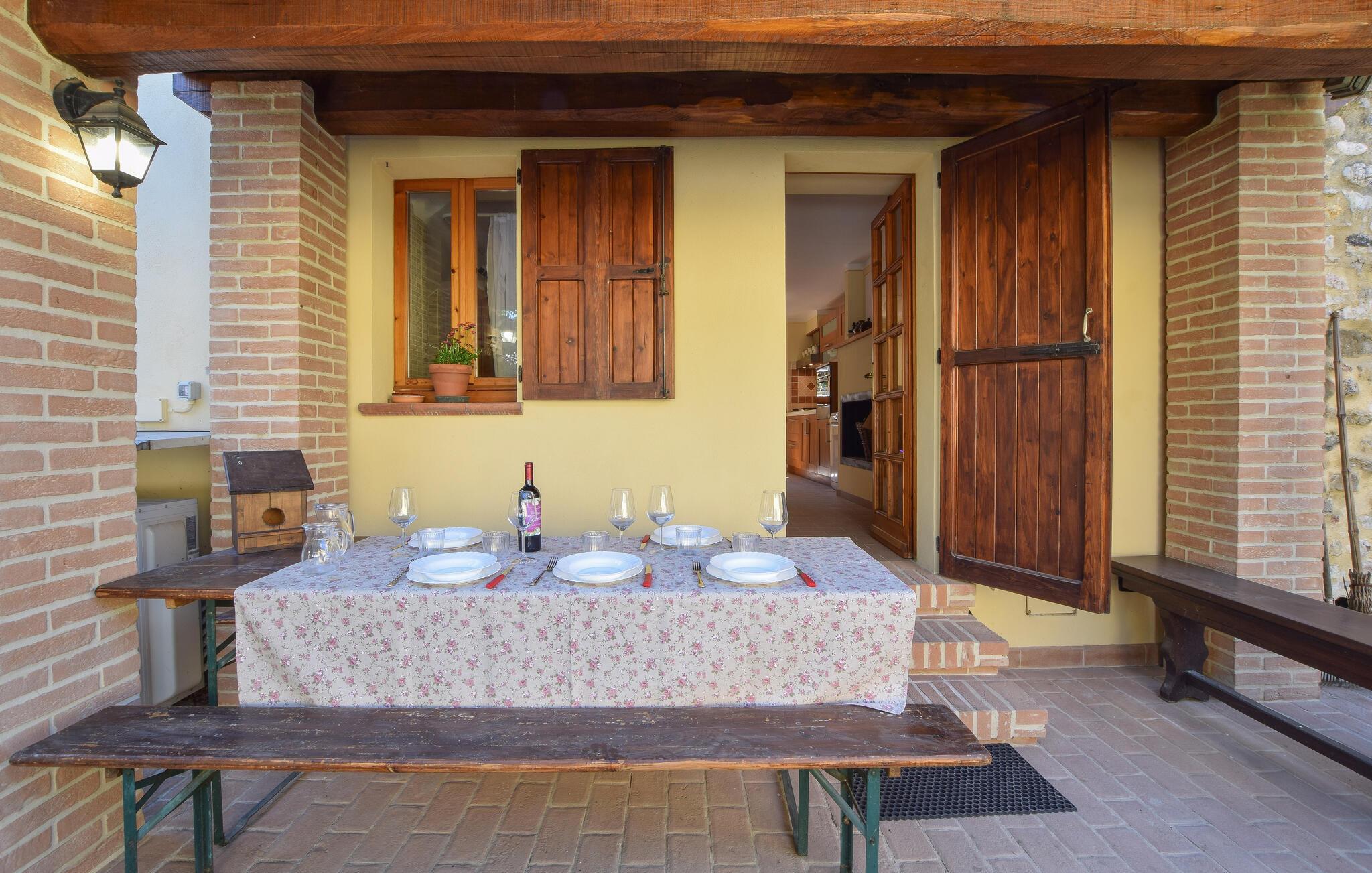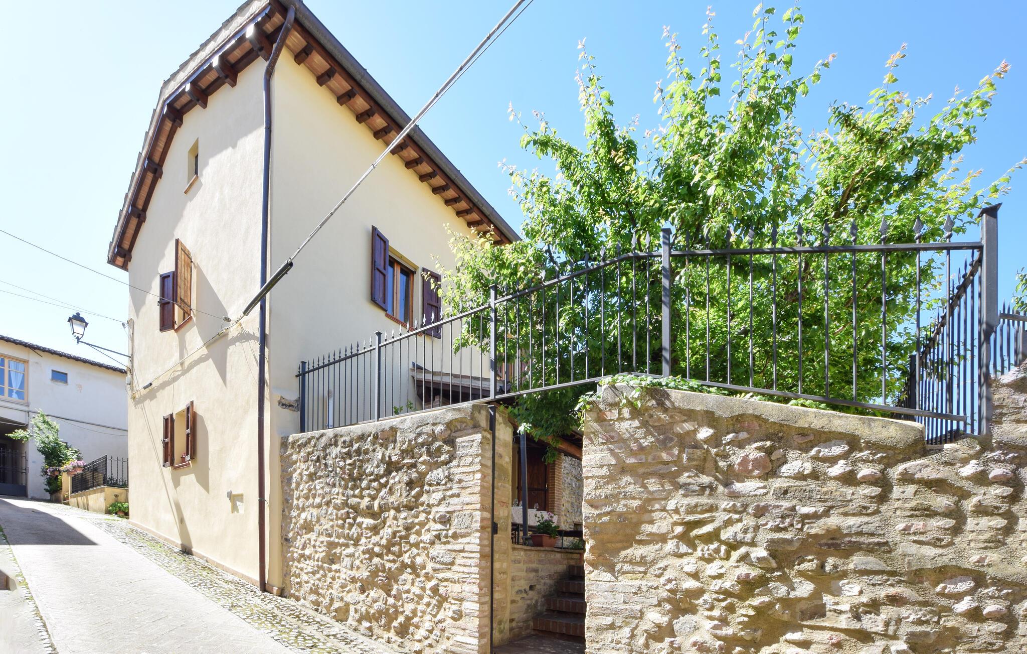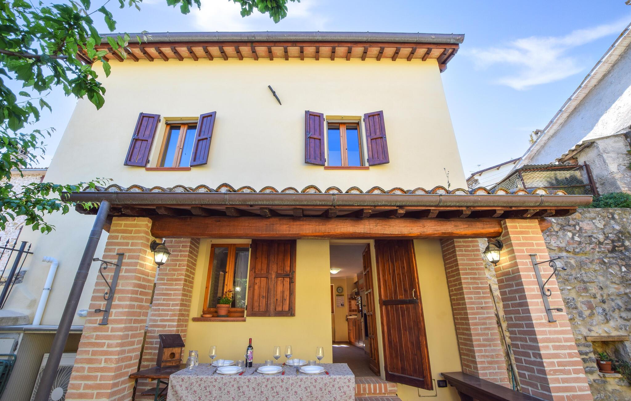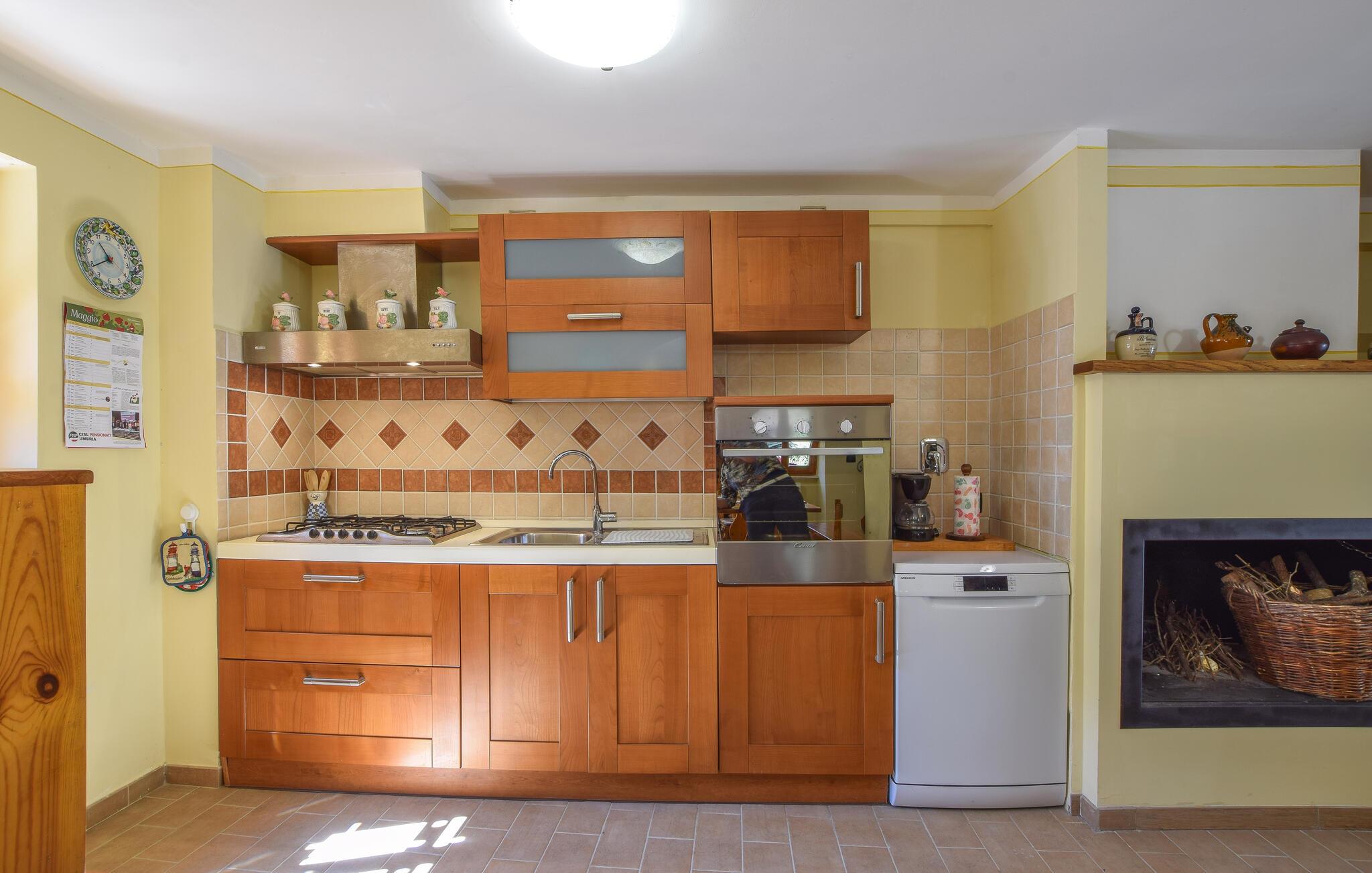 Dette smukt indrettede landsbyhus fra 1500-tallet venter jer i det idylliske Castel Ritaldi. Fremstil lækre retter med friske råvarer fra markedet, og glæd jer til hyggelige måltider og harmoniske spilleaftener ved det indbydende træbord, mens pejsen på kølige dage sørger for rustik hygge.