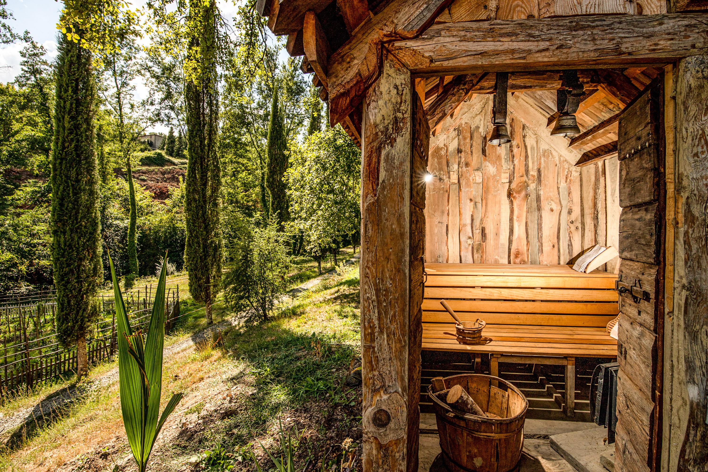 Auf der Rückseite des Ferienhauses liegt ein beleuchteter Pool zur Alleinnutzung. Mit einer Länge von 12 Metern, einer Breite von 1 bis 4 Metern und einer Tiefe von 1 bis 3 Metern bietet er reichlich Platz für Erfrischung und Entspannung. Die große Wiese mit Sitz- und Liegeplätzen sowie die Sonnenterrasse mit Liegen und Schirmen laden zum Relaxen ein. Ein reizender Whirlpool mit Außendusche und eine handgefertigte Bio-Sauna (55°) können auf Wunsch hinzu gebucht werden.Neben dem Pool gibt es einen Grillplatz mit Sitzgruppe und eine Feuerstelle für gemütliche Abende am Lagerfeuer. Haustiere sind herzlich willkommen, dürfen jedoch nicht im Pool baden. Der nahegelegene Bach mit seinen Wasserkaskaden eignet sich hervorragend für ein erfrischendes Bad für Ihre Vierbeiner.