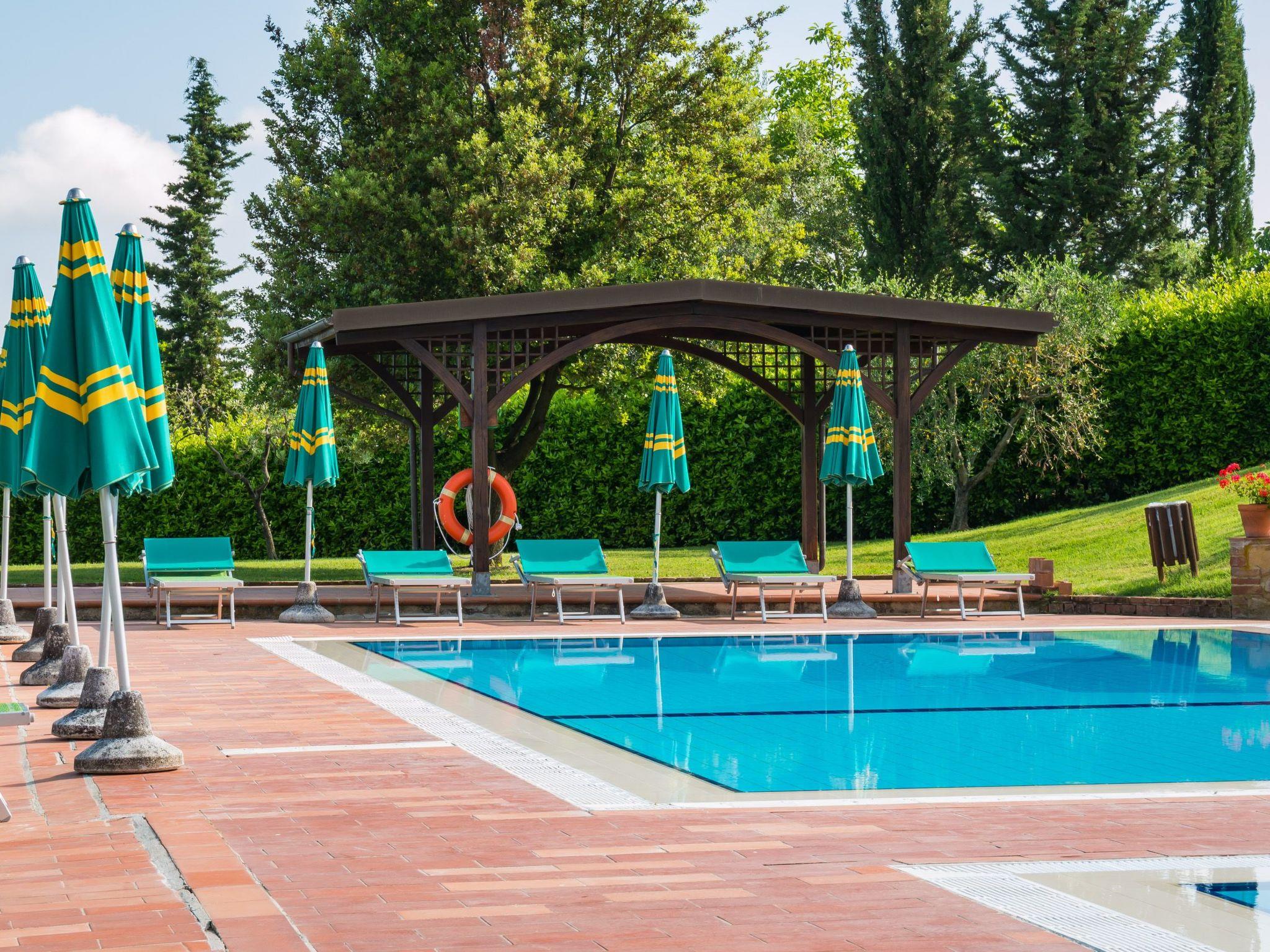 Outside, guests can enjoy their own private area, complete with table, chairs and umbrella, perfect for enjoying lunches in the sun or relaxing in the warmth of the sunset. The residence's swimming pool blends harmoniously into the silence of the surrounding nature, offering an ideal space to regenerate and admire the incomparable beauty of the Tuscan hills, confirming the Borgo as a corner of peace and spiritual refreshment.