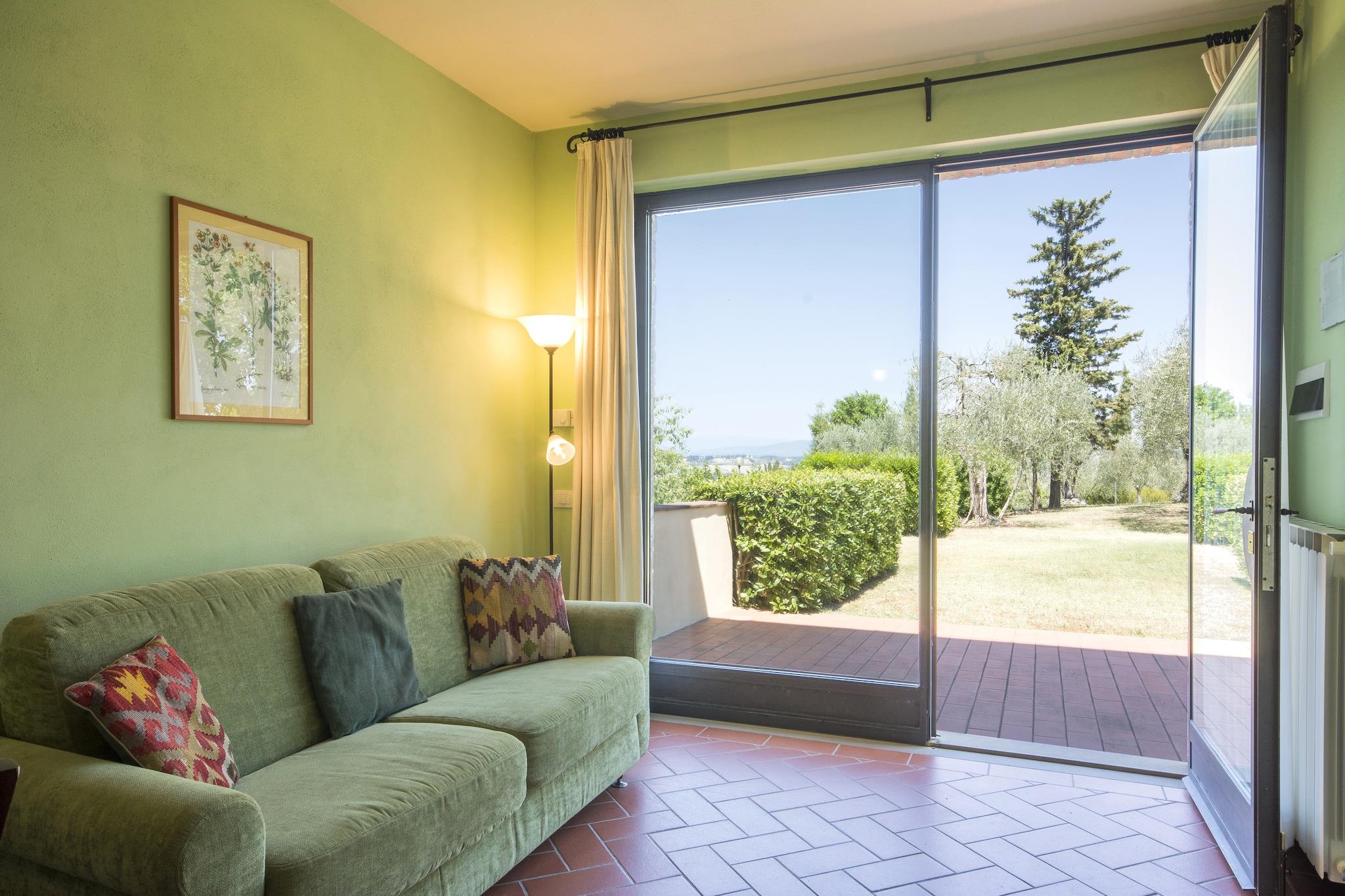 Oplev Toscanas tidløse charme i denne autentiske bondegårdslejlighed i Castelfiorentino, hvor rustik elegance møder moderne komfort. Ideel til 4 gæster, huset har et hyggeligt soveværelse, en indbydende stue og en privat terrasse, der åbner ud til en storslået udsigt over Chianti-bakkerne. Omgivet af vinmarker, olivenlunde og gyldne hvedemarker, er det det perfekte tilflugtssted til at slappe af og nyde det toscanske landskabs skønhed. Træd udenfor og nyd den fælles swimmingpool, der ligger omgivet af grønne områder med udsigt over det bølgende landskab. Nyd en aftengrillfest på din terrasse, mens solen går ned over bakkerne, eller lav et toscansk-inspireret måltid i det veludstyrede køkken til en intim middag. Beliggende langs den historiske Via Francigena mellem Castelfiorentino og Certaldo - fødestedet for forfatteren Giovanni Boccaccio - placerer denne beliggenhed dig i hjertet af Val d'Elsa. Det er en ideel base for at udforske Toscanas skatte: Firenze (40 km), Siena (50 km), Pisa (70 km) og Lucca (106 km), samt den toscanske kyst med Viareggio (108 km) og Forte dei Marmi (115 km). Uanset om du vandrer gennem middelalderbyer, nipper til Chianti-vine eller blot nyder den fredelige udsigt, tilbyder denne bondegårdslejlighed den perfekte blanding af autenticitet, komfort og eventyr.