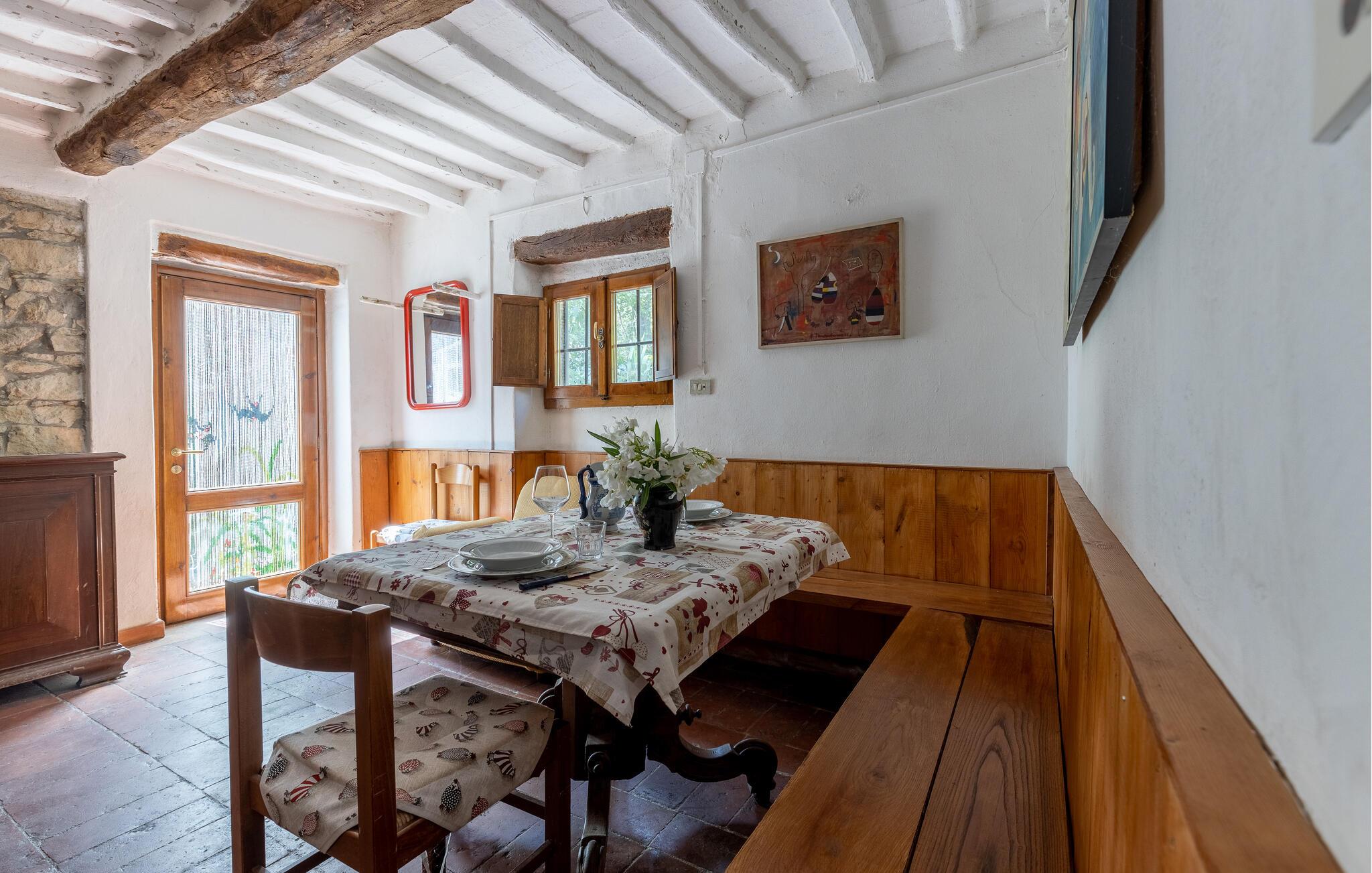 Denne skønne ferielejlighed i stueetagen i et landsted byder velkommen midt i et bakket landskab sydøst for Firenze. De lyse vægge og synlige loftsbjælker skaber en rustik atmosfære, hvor I straks vil føle jer godt tilpas. Hvis I leder efter hvile og afslapning, er I kommet til det rette sted. Om aftenen kan I tænke tilbage på dagens oplevelser med duften af ??de blomstrende citrontræer og lade blikket vandre over det fortryllende landskab.
