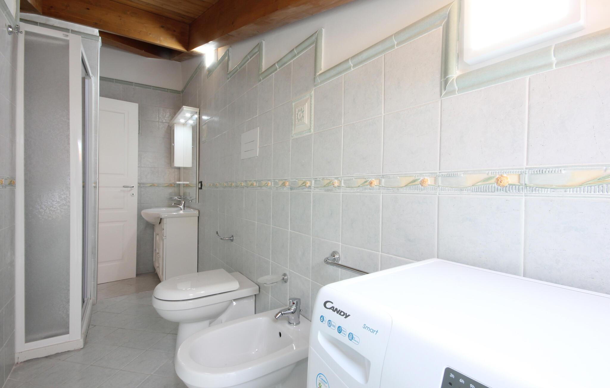 Jeres ferielejlighed ligger ikke langt fra Santa Maria di Castellabate i et roligt bakket område og tilbyder den perfekte kulisse til afslappende feriedage. Nyd jeres morgenmad ved spisebordet i køkkenet eller på den fælles terrasse i stueetagen, hvor I kan nyde udsigten over det maleriske landskab og det glitrende hav i det fjerne.