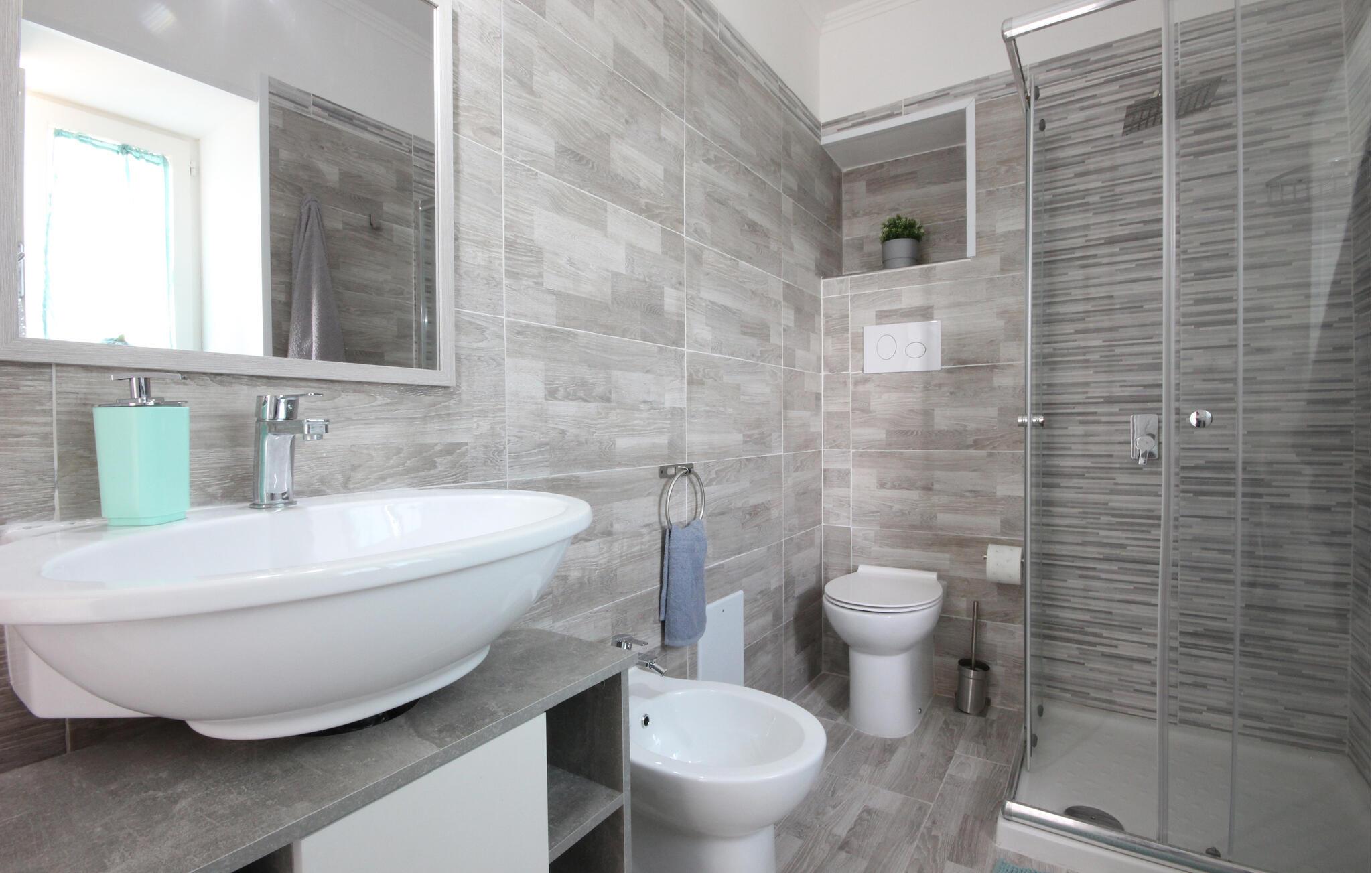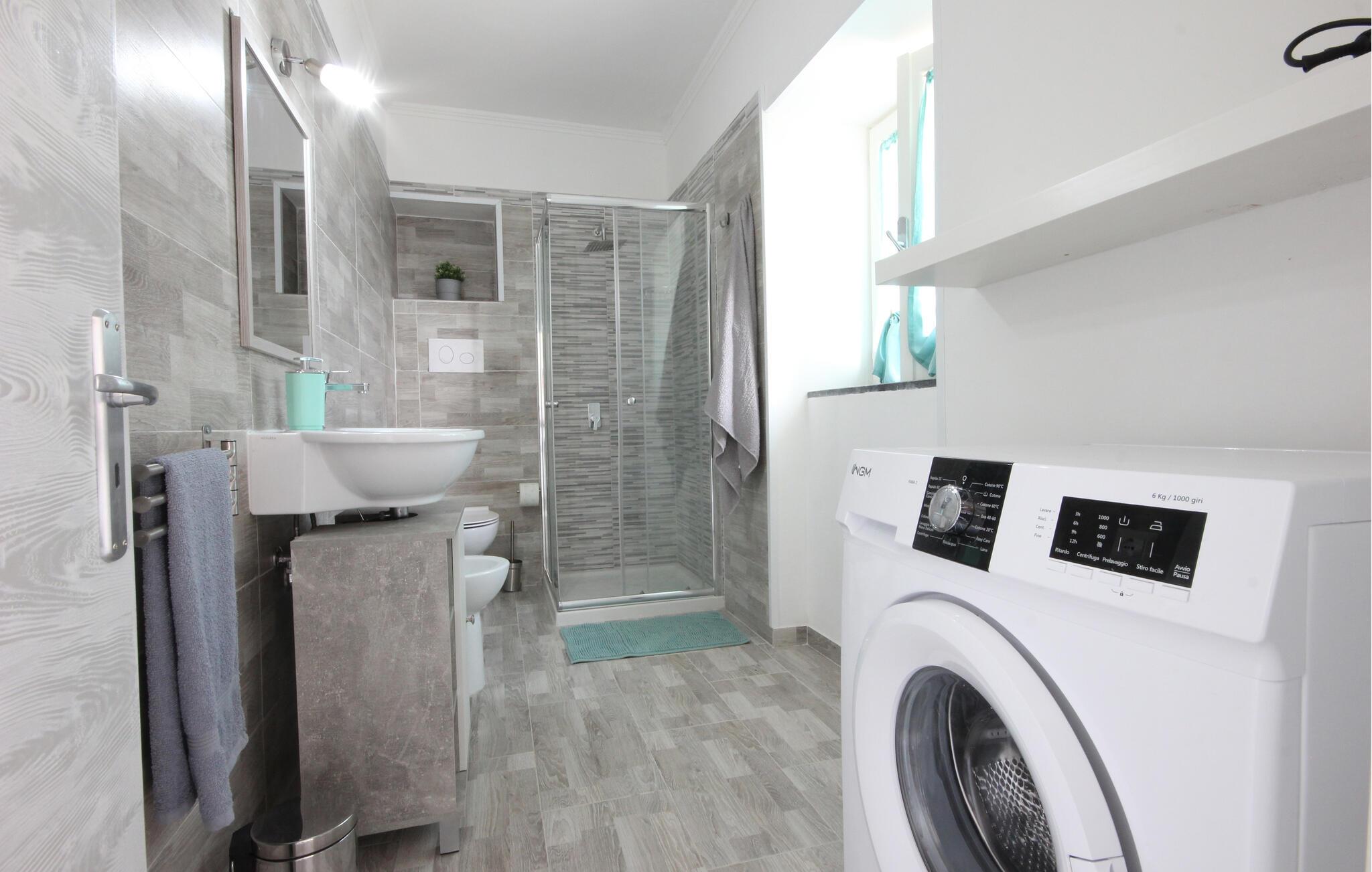 Nyd en afslappende ferie i denne hyggelige ferielejlighed nær havet og med udsigt over landskabet. Denne lyse og venlige lejlighed byder jer velkommen med diskrete farver, rene linjer og et strejf af maritim charme. Her kan I frit snakke, lave mad sammen og nyde ubekymrede timer med god mad og vin. Lyt til jeres yndlingsmusik eller stream den nyeste serie, og afslut dagen i fred og ro. Træd ud på altanen i det varme morgenlys med en duftende kaffe. Nyd en let morgenmad, lav planer for den næste dag, eller nyd blot at lave ingenting. Tag en tur til stranden, og nyd det krystalklare vand og de brede bugter ved Cilento-kysten. I Castellabate venter en malerisk gammel bydel med snoede gader, små torve og en betagende udsigt over havet. De omkringliggende bakker med deres olivenlunde og fyrreskove inviterer jer til gåture og vandreture.