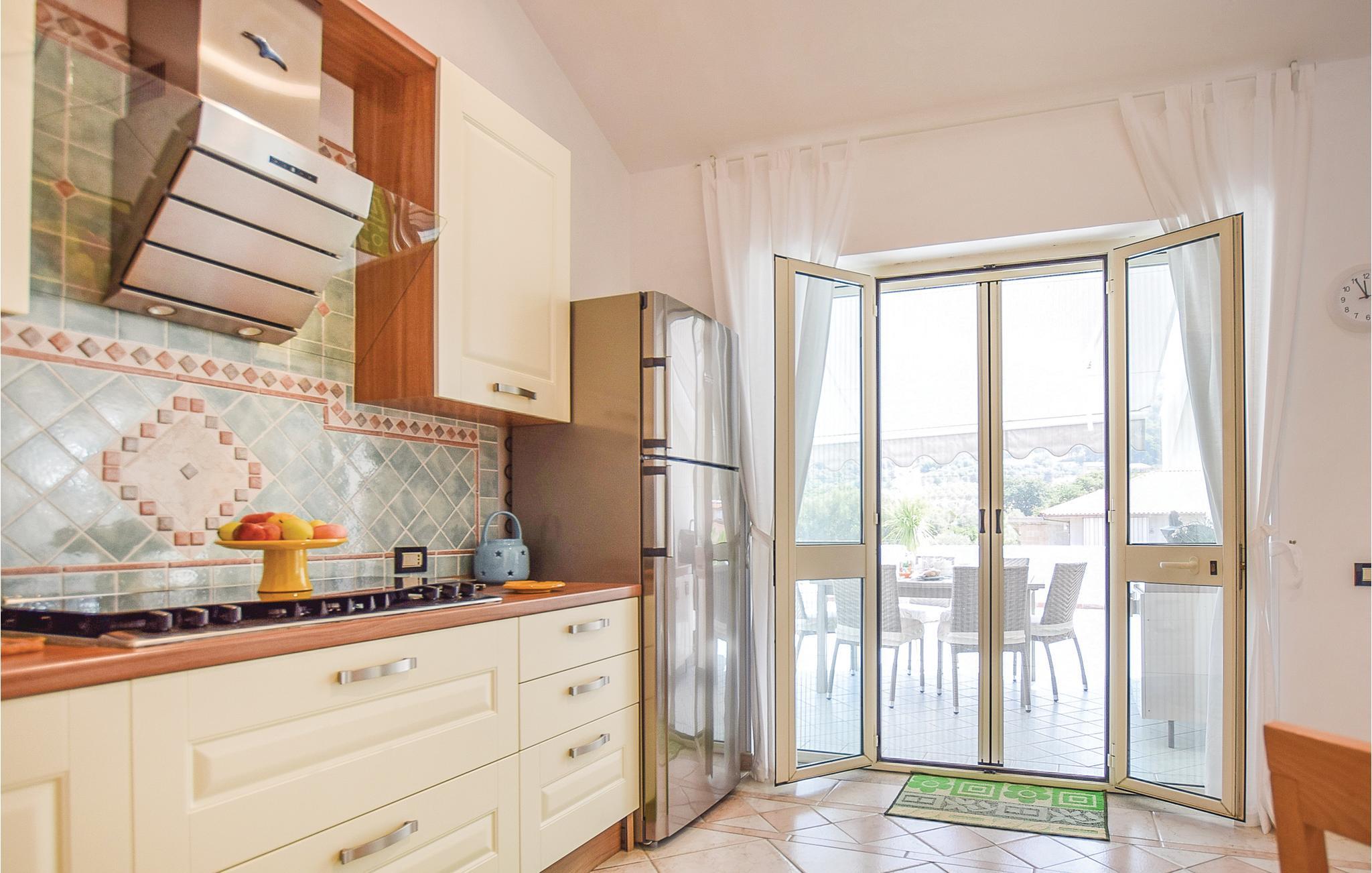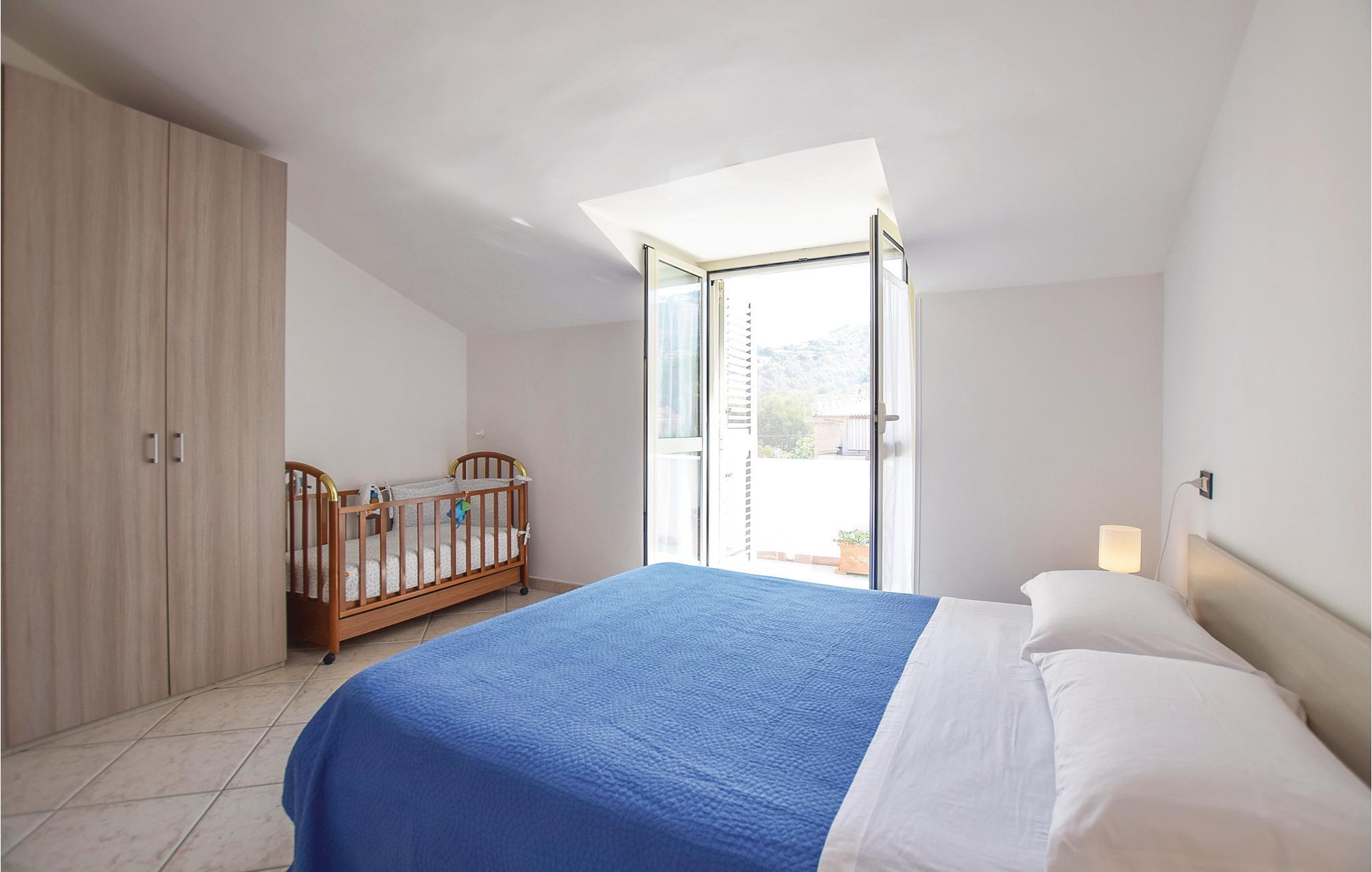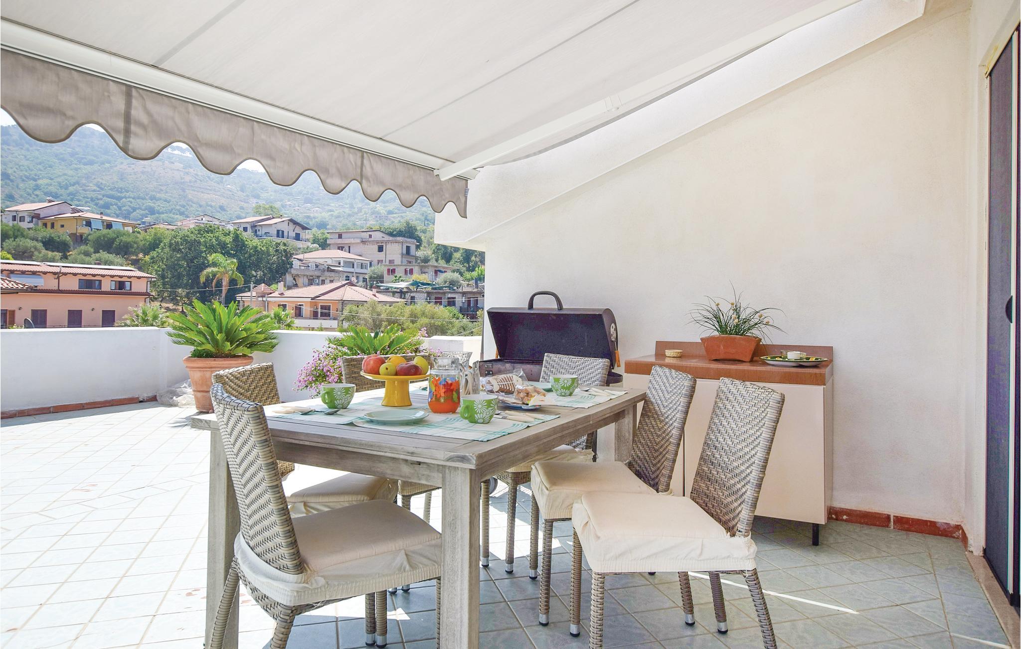 Ferielejlighed i et tofamilies hus i S. Marco di Castellabate, kun 500 m fra de den skønne strand, med herlig panoramaterrasse og en balkon, der går hele vejen omkring huset. Det tager kun 10 minutter at gå til fodgængerzonen i Maria di Castellabate hvor der er mange butikker og barer. Den lille by er kendt for sine mange strande, nogle er gratis og andre med adgang mod betaling, for to promenader og for et stort udvalg af restauranter hvor I kan smage typiske Cilento-speicaliteter. Der er tre km til middelalderbyen Castellabate, der er med på Unescos kulturarvsliste. Besøg også Agropoli (15 km) og Paestum (20 km) med græsk-romerske templer. Lejligheden ligger på anden sal, med enkelte rum med skrå vægge, fra den ene side udsigt til vejen.