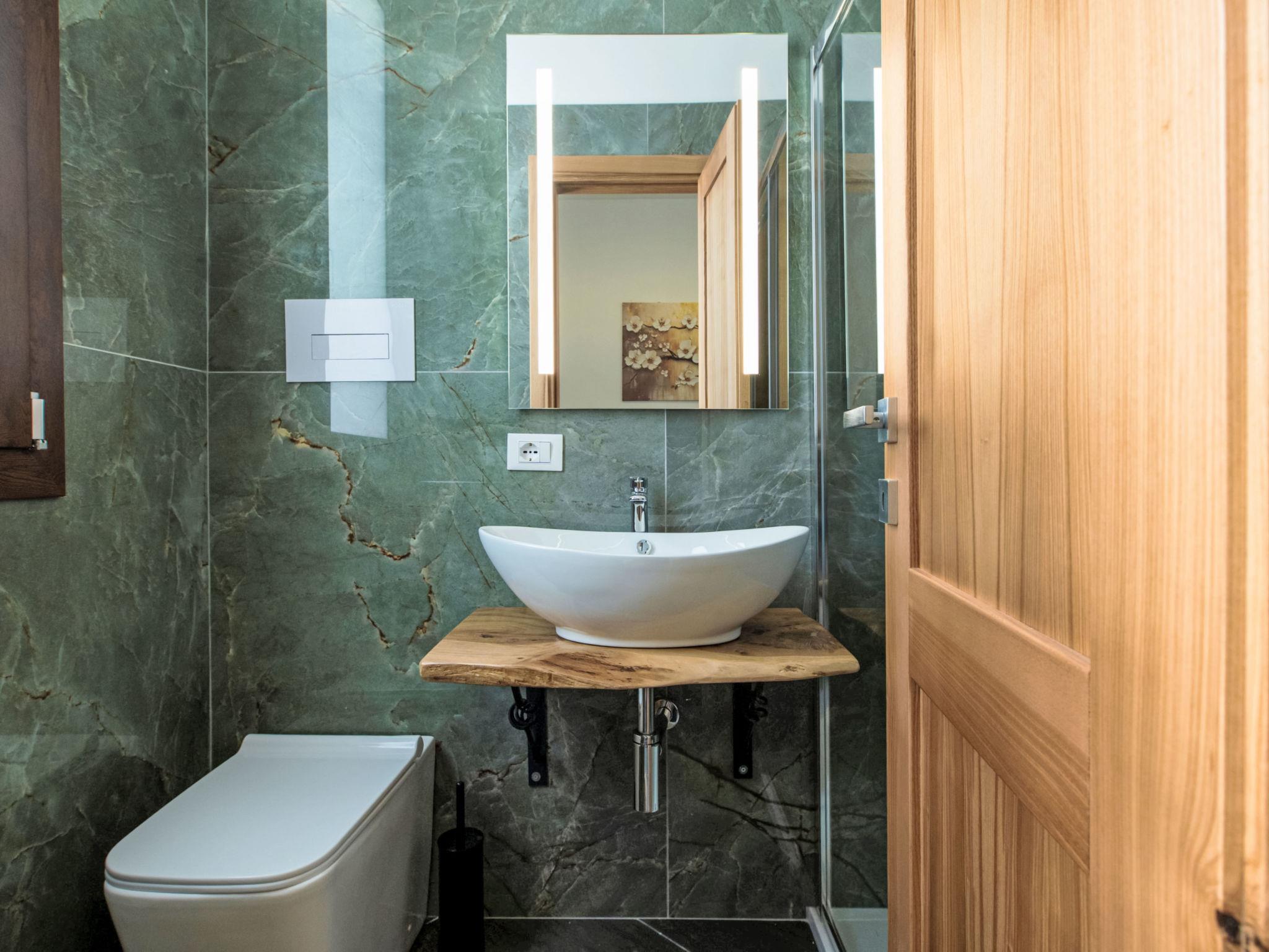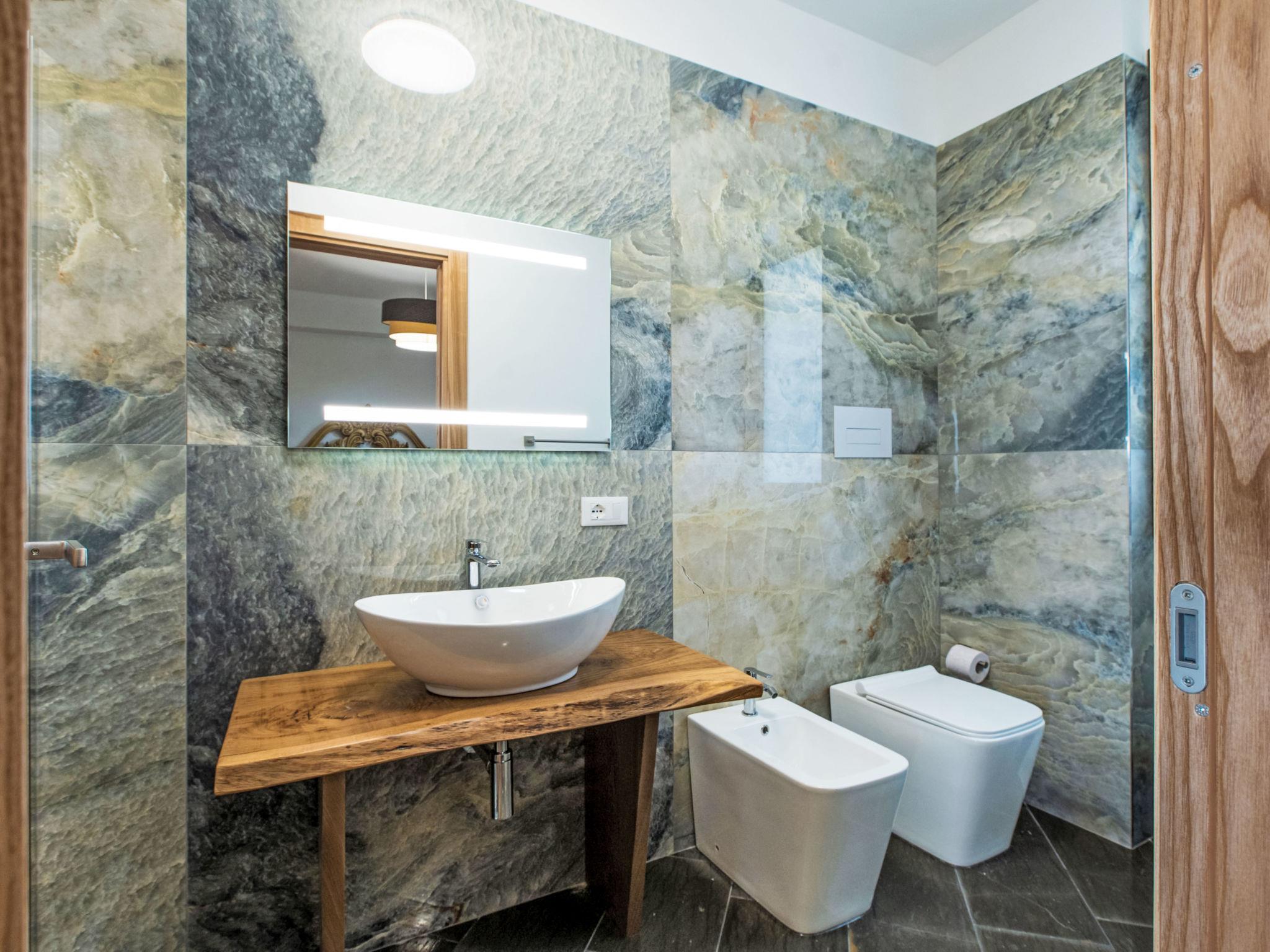 8-room villa 300 m2 on 2 levels, on the ground floor. Comfortable and tasteful furnishings: living/dining room with panoramic window with international TV channels, air conditioning and forced-air heating. Exit to the garden. 2 double bedrooms, each room with shower/bidet/WC, air conditioning and forced-air heating. Exit to the terrace. 1 double bedroom with shower/bidet/WC, air conditioning and forced-air heating. Exit to the terrace, to the swimming pool. Kitchen (oven, dishwasher, Gas stove, 5 gas rings, toaster, kettle, microwave, electric coffee machine) with dining table, air conditioning and forced-air heating. Exit to the terrace. Sep. WC. Upper floor: 1 room with 1 bed, 1 double bed, shower/bidet/WC, air conditioning and forced-air heating. 1 double bedroom with shower/bidet/WC, air conditioning and forced-air heating. Exit to the terrace. 2 double bedrooms with sloping ceilings, ceiling height 160 - 270 cm, each room with shower/bidet/WC, air conditioning and forced-air heating. Heating, forced-air heating, boiler. Heating available only from 01.04. to 31.10. Large terrace 30 m2, roofed. Terrace furniture, barbecue, deck chairs. Distant view of the sea, the swimming pool and the resort. Facilities: washing machine, iron, children's high chair, baby cot for up to 2 year olds, hair dryer. Internet (WiFi, free). Parking (7 cars). Please note: smoke alarm, fire extinguisher. IT081005C2XZE4DW74