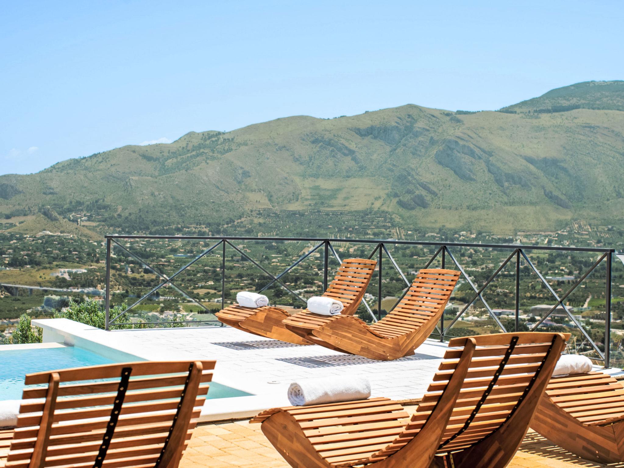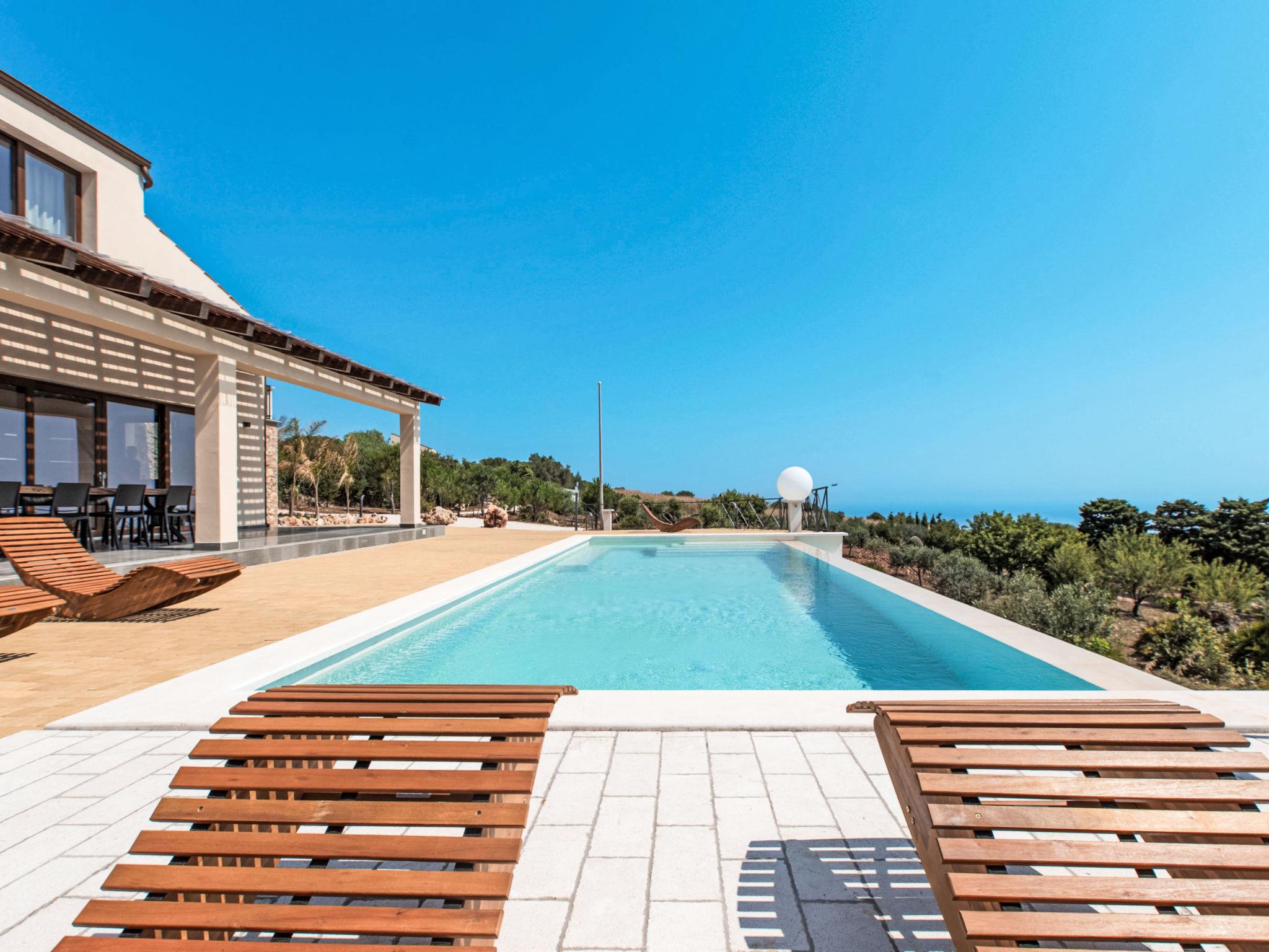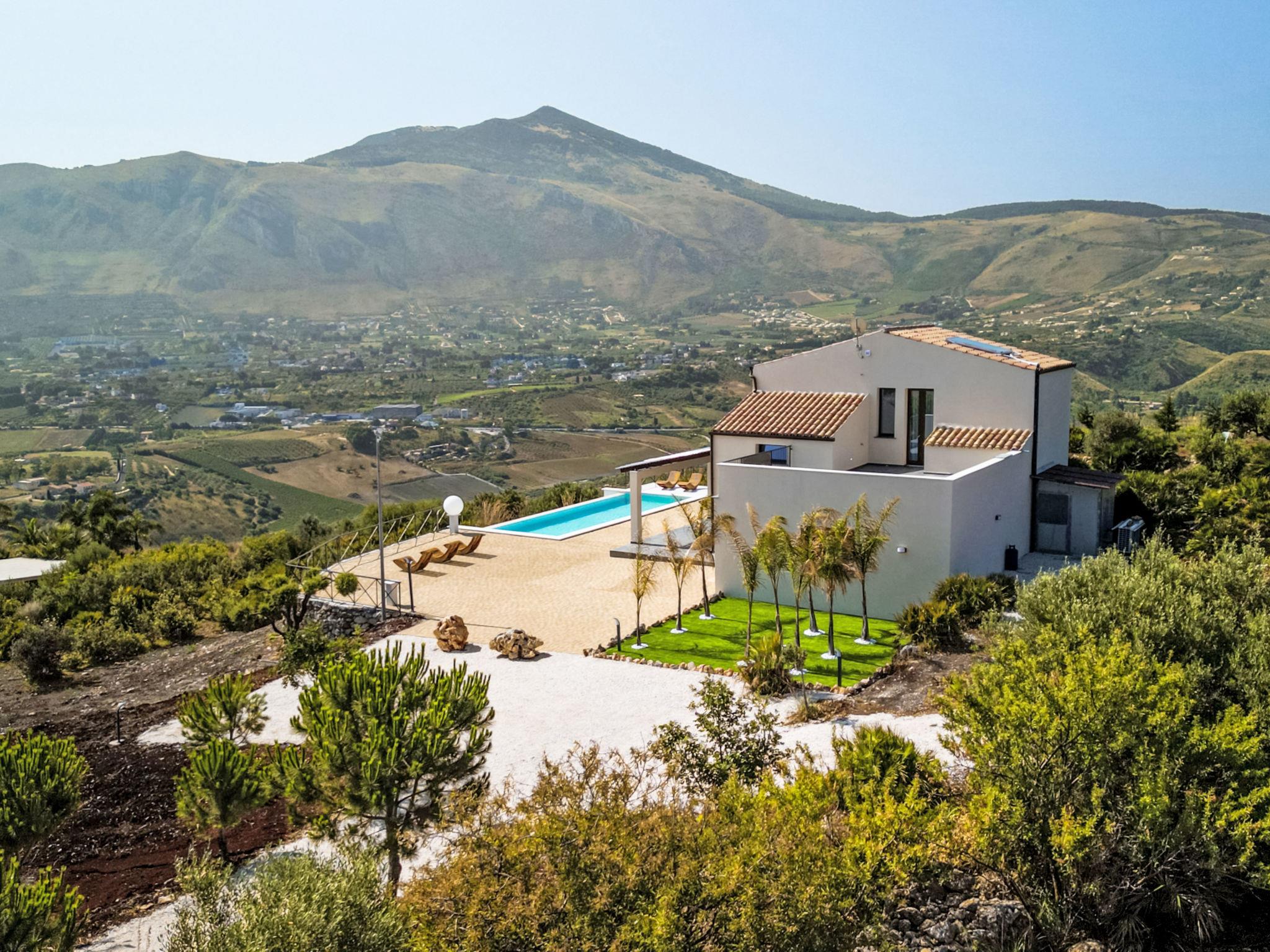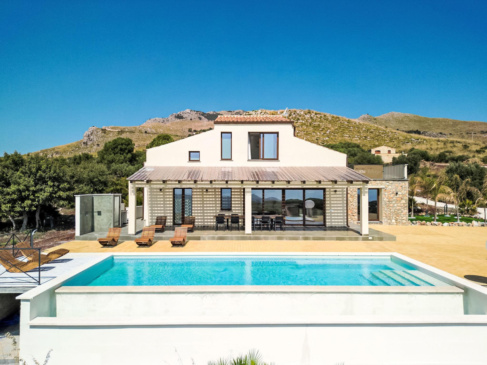 Large, modern, comfortable villa "Cleope", surrounded by fields. 7 km from the centre of Scopello, 12 km from the centre of Castellammare del Golfo, in a quiet, sunny position on top of a hill, 5 km from the sea, 5 km from the beach. Private: property 5'000 m2 (fenced), swimming pool (12 x 4 m, depth 140 cm, seasonal availability: 01.Apr. - 31.Oct.). Outdoor shower, pool maintenance by the owner/gardener. Grocery 4 km, supermarket 4 km, restaurant 5 km, bar 4 km, bus stop 5 km, railway station "Castellammare del Golfo" 15 km, sandy beach "Castellammare del Golfo" 11 km, shingle beach "Guidaloca" 5 km. Nearby attractions: Parco Archeologico di Segesta 28 km, Trapani porto Aliscafi per Isole Egadi 35 km, Erice 35 km, San Vito lo Capo 42 km, Saline di Marsala 58 km, Palermo 70 km. Please note: car recommended.