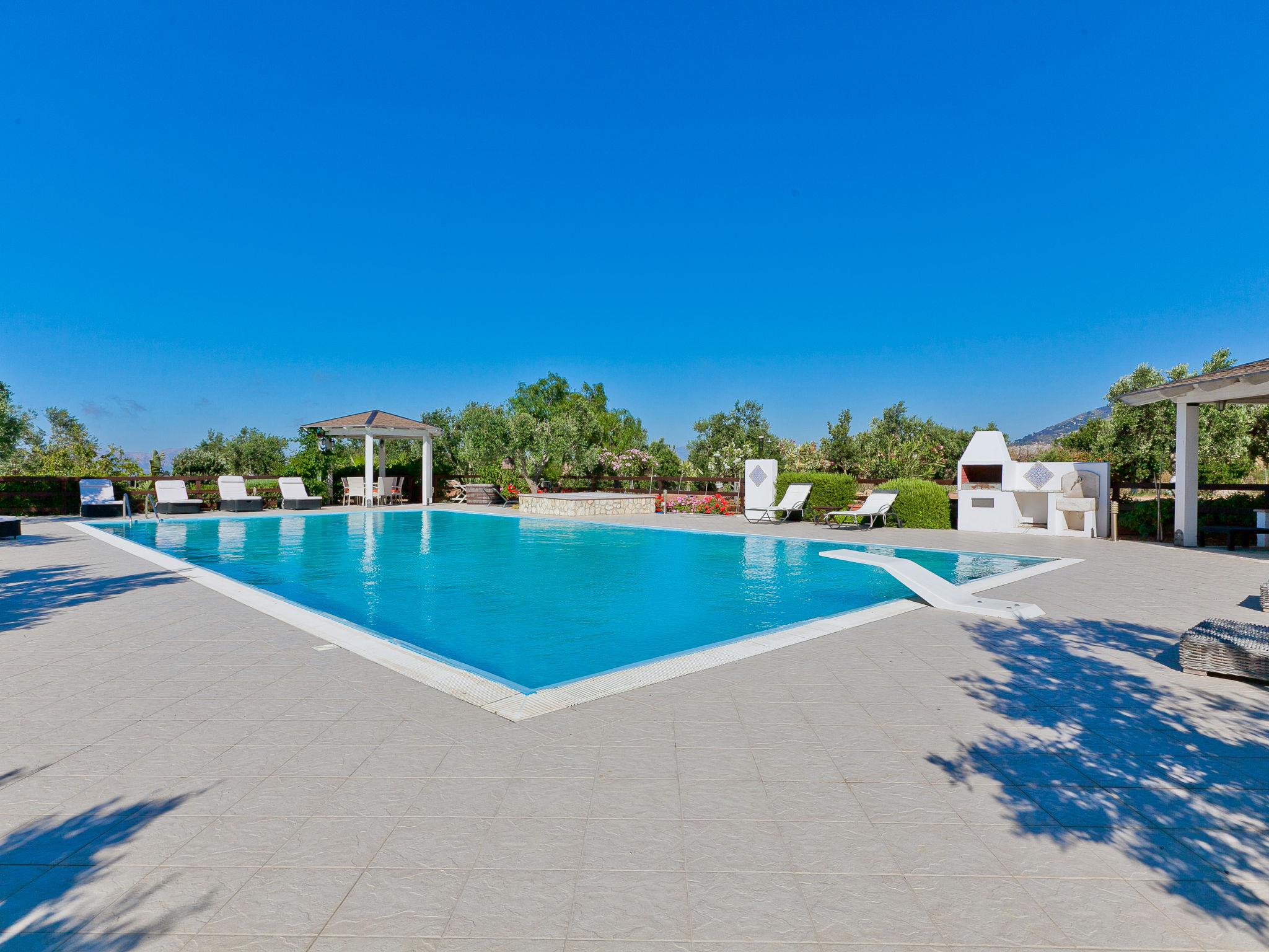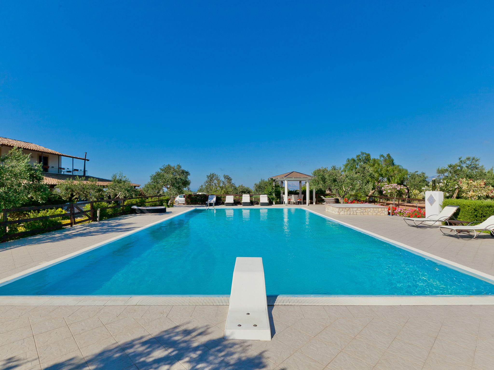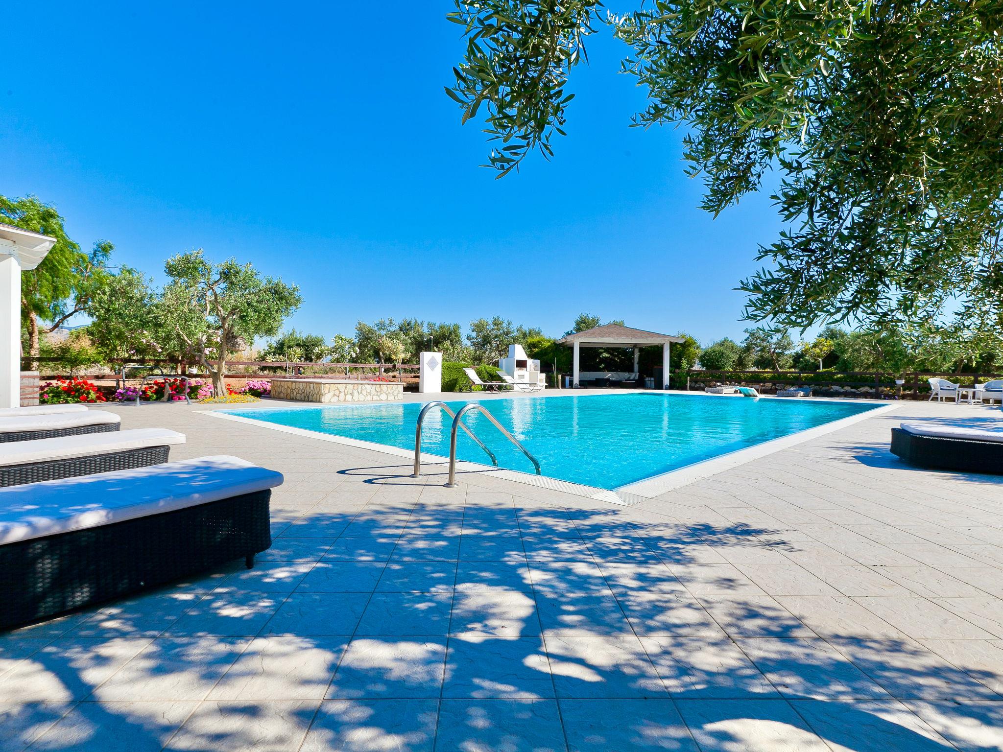 Villa "Tenute Aversa", surrounded by fields. 5 km from the centre of Castellammare del Golfo, 14 km from the centre of Scopello, in a quiet, sunny position residential area (villas), 6 km from the sea. Private: property 10'000 m2, swimming pool (10 x 20 m, depth 120 - 280 cm, seasonal availability: 01.Apr. - 31.Oct.). WC in the pool area, outdoor shower, garden furniture, barbecue, pool maintenance by the owner/gardener. In the house: table tennis, billiard table, table football. Parking on the premises. Grocery 4 km, supermarket 4 km, restaurant 4 km, bar 4 km, bus stop 15 km, sandy beach "Castellammare del Golfo" 5.5 km. Nearby attractions: Segesta Parco Archeologico 12 km, Erice 40 km, Trapani/Aliscafi per Isole Egadi 45 km, San Vito lo Capo 48 km, Marsala/Saline 55 km, Palermo 65 km. Please note: car recommended. The property is served by a video surveillance system.