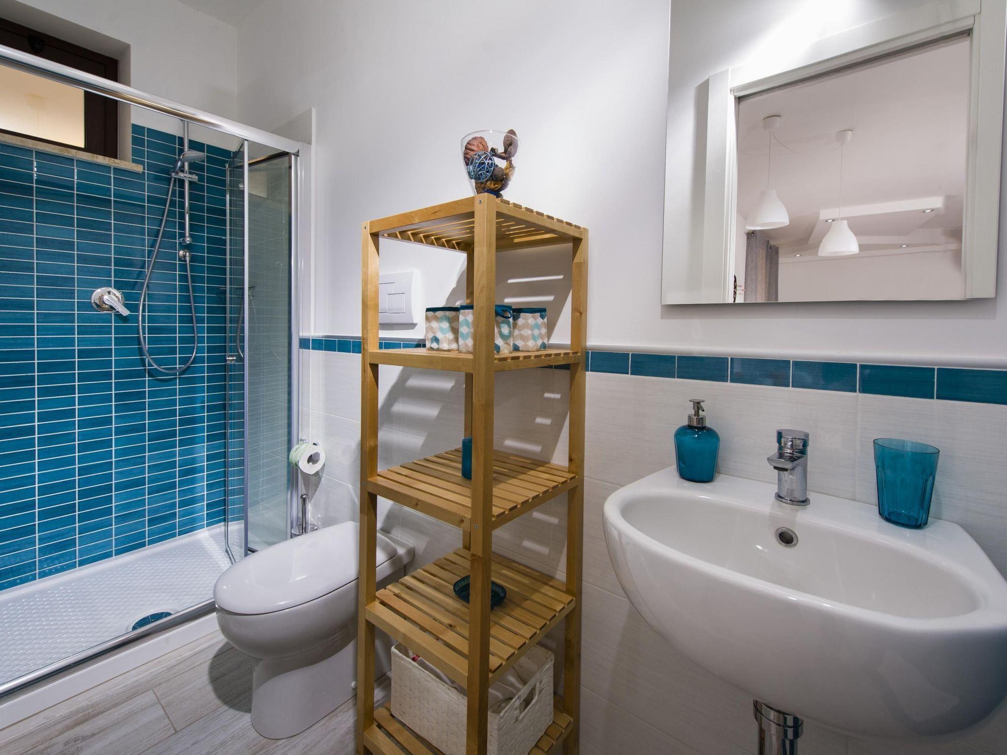 The house is built on 3 floors. On the first floor there is a spacious living room with kitchen. The room with its modern style is particulary bright thanks to the big glass window and the total white furniture.The kitchen is equipped with all you need to make your stay as comfortable ad possible (oven, dishwasher, Washing machine, microwave, automatic coffee machine).In the living room there is a sofa that give a touch of color to the room, a 42 inch flat screen smart tv , airconditioning and a small library with some books in foreign languages. From this room you access a small covered terrace with a small table and chairs. Here if you want you can have breakfast.All the rooms are made with a special attention to details.You can reach the second floor through a special iron staircase characherized by a photo gallery. On the second floor you find the sleeping area Made up of one spacious double bedroom with window, one twin bedroom with balcony and a spacious bathroom with shower. Both the bedrooms are aircondioned. On the third floor there is a further double bedroom. This room has an eco design. The bed has been created using old pallets. From this room you access the sea view roof terrace where a lovely jacuzzi is located. The jacuzzi has 120 jets (available from April to October). The terrace is equipped with sun beds, umbrella and bbq. Tyche is equipped also with a free wifi.