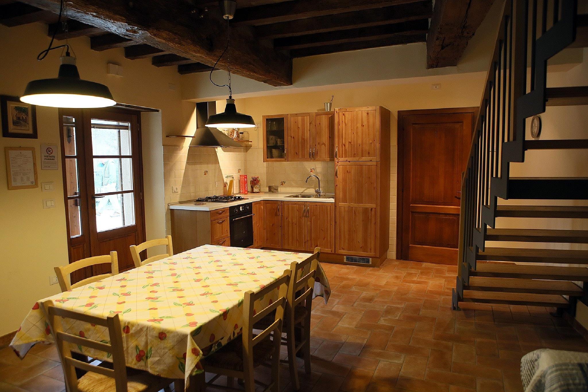 Hyggelig landlig charme Dette charmerende feriehus ligger gemt væk i den fredelige landsby Ca' De' Grimaldi og er det perfekte tilflugtssted for rejsende, der søger ro og natur. Med sin indbydende stue og en pejs, der skaber en varm og hjemlig atmosfære, tilbyder huset et afslappende sted at slappe af. Det private udendørsområde er ideelt til at nyde et glas vin under stjernerne eller en langsom morgen med en kop kaffe i hånden. Familier og små grupper vil sætte pris på den åbne indretning og rustikke atmosfære, mens små detaljer som havemøbler og adgang for kæledyr gør, at man føler sig hjemme. Udforsk Emilia-Romagnas skjulte perler Denne beliggenhed er en drøm for opdagelsesrejsende - kun 6 km væk ligger Castellarana, hvor du kan købe dagligvarer og lokale varer. Tilbring dagen med at ride på hesteryg gennem de naturskønne stier (3 km), spille golf på den nærliggende golfbane (5 km) eller tage en forfriskende dukkert i den offentlige pool i Scandiano. Regionen er også kendt for sine termiske kurbade kun 10 km væk - perfekte til afslapning efter en lang dag. Historieelskere vil nyde at besøge slottene og bakkerne i Reggio Emilia, mens cykelentusiaster kan leje cykler og tage på tur i landskabet.