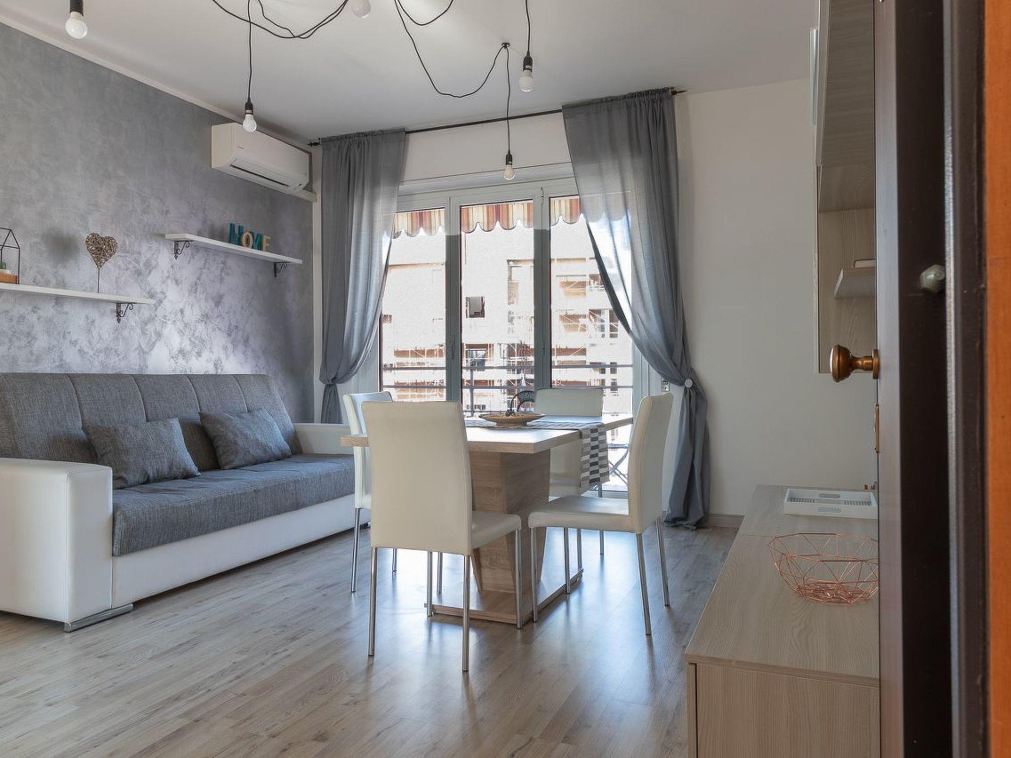 Inside, the flat is equipped to meet all your needs. You will enjoy the convenience of a fully equipped kitchen with gas cooker, capsule coffee machine, electric kettle and microwave, ideal for preparing delicious breakfasts or home-cooked dinners. The air conditioning available in the living area ensures your comfort during the hottest days, while the washing machine for your exclusive use further enhances your convenience during your stay.