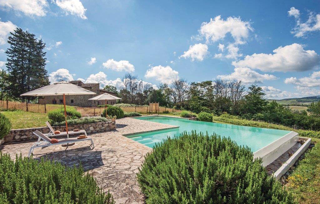 Rummeligt feriehus bygget i natursten, med en beliggenhed kun et par kilometer fra landsbyen Castellina i Chianti, på et af de vigtigste landbrug i Chianti-Classico, i dominerende omgiveler i bakkerne. Smuk udsigt over landskabet, vinbjergene og olivenlunde. Gennem en omhyggelig renovering er huset genopstået i sin oprindelige pragt. Til gæsterne er der fælles: have, udendørsområde og en l-formet pool. Ejendommen ligger centralt mellem Chianti-området og kunstbyerne Siena og Firenze. Internet ved receptionen (1 km). Tilkørsel ad den 300 m grusvej. To parkeringspladser på grunden. Inklusive lejen er to timers rengøring om dagen, fra mandag til og med lørdag. På bestilling og betaling på stedet: husholdningshjælp (yderligere timer) og kok. Buffet med regionale specialiteter, en gang ugentligt mod bestilling og betaling på stedet. Klimaanlæg i soveværelserne på første sal. Ekstra mod betaling på stedet: varme. I de samme bakkede landskabler ligger andre skønne landhuse, alle med en kilometers afstand. Alle huse er renoveret i typisk toskansk stil: husnumrene er ITC800, 801, 802 og ITC730. I området er der mange restauranter hvor I også kan nyde de typisk toskanske lækkerier og ikke mindst de gode vine. I kan gå dejlige ture i de maleriske landskaber. Radda i Chianti 16 km, Siena og San Gimignano 20 km, Firenze 50 km.
