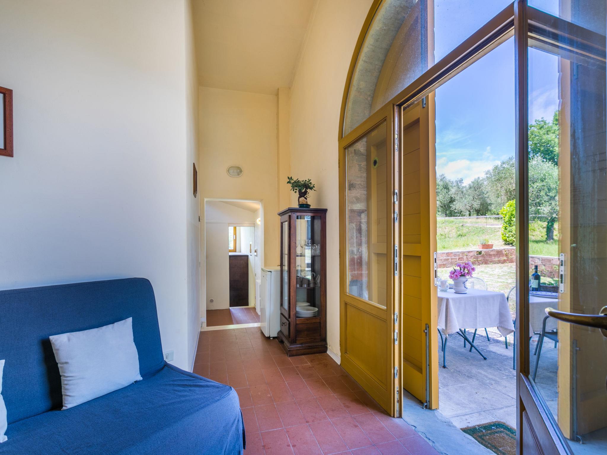 The farm surrounded by olive groves and vineyards of Chianti. Each of 12 apartments are located in the main house and a former barn has its own outside area with a table on the terraces surrounding with the main building. The location is very central and ideal for trips to discover the natural and cultural beauties of the region large working farm "La Moraia", renovated. 14 km from the centre of Castellina in Chianti, 18 km from the centre of San Gimignano, 50 km from the centre of Firenze, in an elevated position, in the countryside. For shared use: garden, swimming pool (7 x 14 m, depth 120 - 160 cm, seasonal availability: 09.May. - 26.Sep. pool opening hours: 09:00-19:00). Patio, barbecue. In the house: central heating system, washing machine (for shared use, extra), heating to be paid on the spot, heating available only from 01.Nov. - 04.Apr.. Motor access to the house (1 km via unmade road). Parking. Supermarket 5 km, restaurant 5 km, bus stop 5 km, railway station "Poggibonsi" 5 km, thermal baths "Rapolano Terme" 55 km. Tennis 5 km. Nearby attractions: Monteriggioni 14 km, Barberino Val d'Elsa 16 km, San Donato 21 km, Radda in Chianti e Badia a Passignano 25 km, Siena 30 km, Volterra 38 km. Please note: the photograph shows a typical example. Additional accommodations can be booked. On request, at the moment of booking, there are opportunities to rent bicycles.
