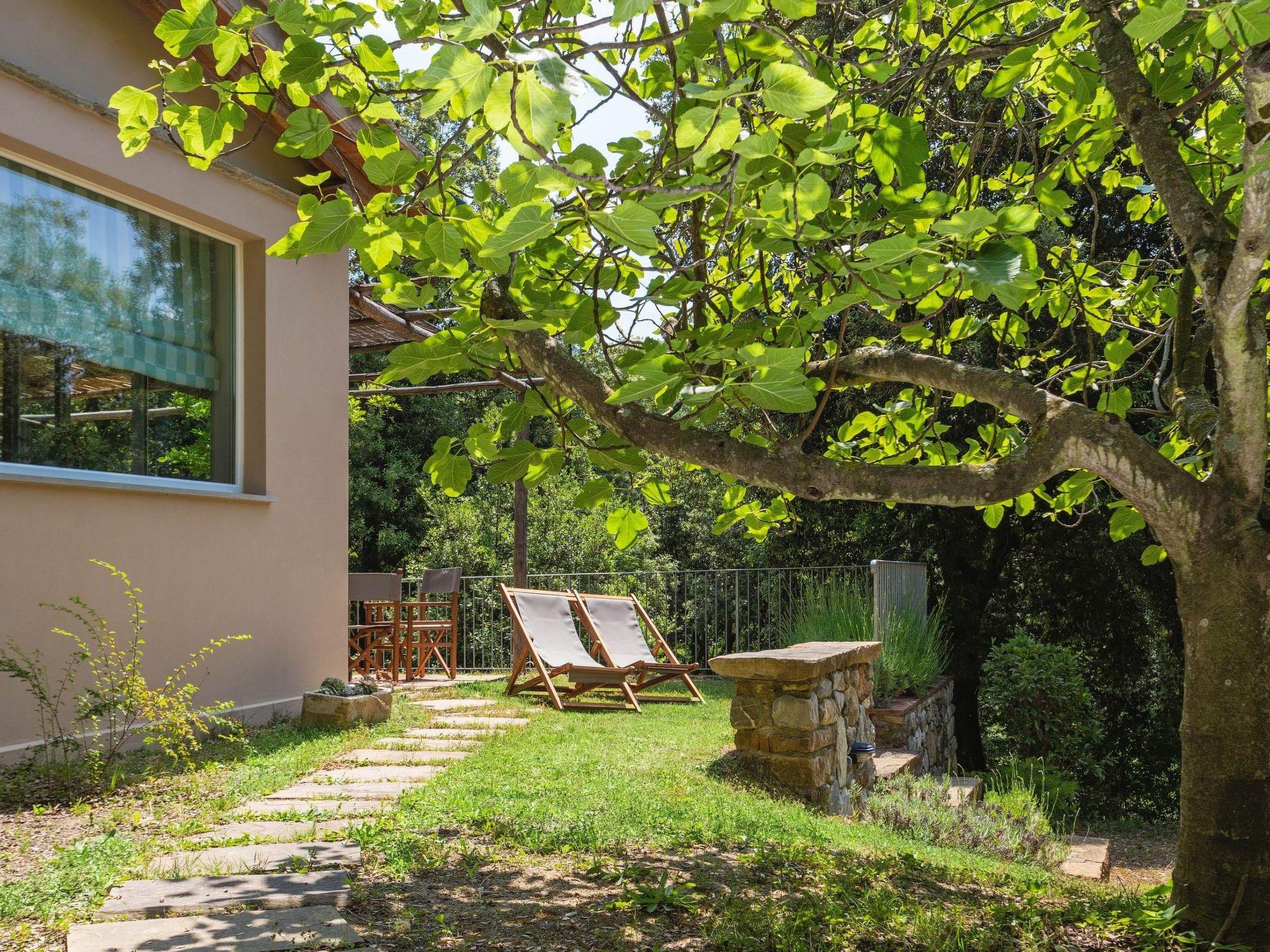 Two-bedroom cottage: a beautiful and cosy 60 m² cottage, located slightly uphill from the main house, with a large furnished private terrace, barbecue and garden view. The one-storey cottage can accommodate up to 5 persons: a double bedroom, a triple bedroom, a living room with kitchenette (5-burner gas cooker, refrigerator, oven, toaster, kettle, coffee maker and American coffee maker) and a bathroom with shower. Facilities: air conditioning in the bedrooms only, mosquito nets, Wi-Fi and hairdryer. This beautiful holiday home, a former mill converted into three cosy flats, is located just 600 metres from Pomaia, where you will find the nearest shops and restaurants. It is a beautiful property nestled in an idyllic landscape, surrounded by olive trees, small woods and a small stream with a small lake (swimmable when the water does not dry out). From time to time, some local wild animals (hedgehogs, hares, foxes, pheasants) can be seen living undisturbed along the stream or in the garden. The communal garden also has several fruit trees, a hot tub (open from mid-May to the end of September) and a veranda where guests can relax. Along the stream and in the garden are gazebos and reading corners where you can relax and enjoy the lush nature. The coast and the sea at Castiglioncello are 13 km away. Cecina is 20 km away, Pisa 40 km, Volterra 45 km, San Gimignano 55 km, Florence 95 km. The house can be reached from Pomaia via a 400 m dirt road.