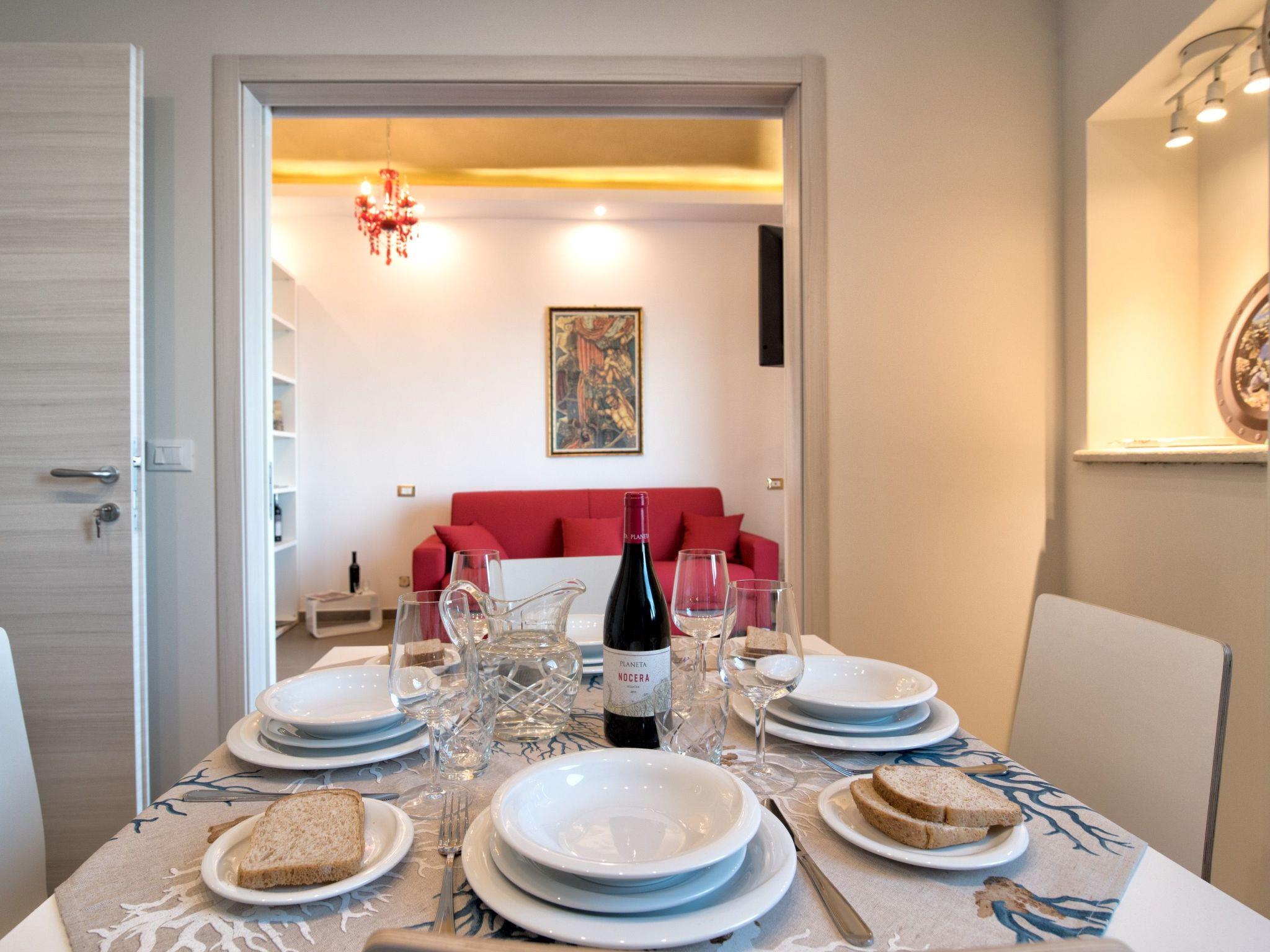 Inside, the flat is equipped with every comfort necessary to make your stay as pleasant as possible. From the air conditioning system that ensures an ideal climate in every room, to the washing machine for your exclusive use for complete autonomy during your stay. Guests can take advantage of a well-equipped gas kitchen, ideal for preparing delicious meals with local products, and modern appliances such as an electric coffee machine and kettle, indispensable for starting the day in the best possible way.