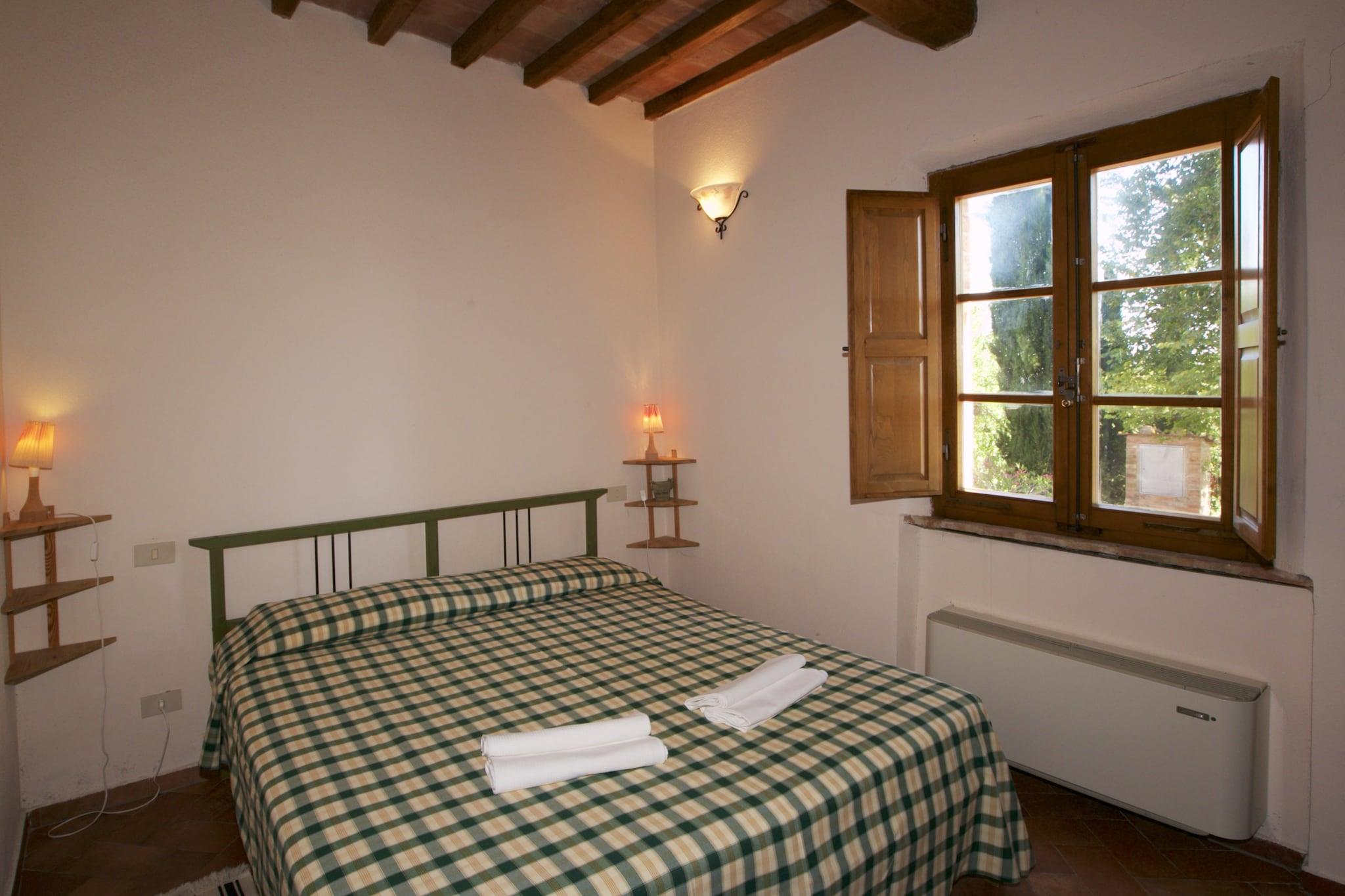 Flygt til denne charmerende bondegård beliggende i hjertet af Crete Senesi, kun en kort køretur fra Siena. Dette feriested på landet er ideelt for familier og er beliggende i en agriturismo omgivet af bølgende toscanske bakker, og tilbyder fredelige omgivelser med panoramaudsigt. Boligen har tre hyggelige soveværelser og tre badeværelser, der komfortabelt kan rumme op til 6 gæster. En rummelig stue, et fuldt udstyret køkken og rustikke detaljer overalt giver den perfekte blanding af komfort og tradition. Moderne faciliteter såsom aircondition, centralvarme og WiFi sikrer et afslappende ophold året rundt. Udendørs kan gæsterne nyde en fælles swimmingpool (14x5 m, åben maj-september), en fælles have med legeredskaber til børn, en grillplads og rigelig parkering. De berømte termiske bade i Rapolano Terme er kun en kort køretur væk, ligesom charmerende toscanske byer og naturskønne roadtrip-ruter gennem bakkerne. Uanset om du er her for at udforske Toscana eller blot slappe af i naturen, tilbyder denne bondegård den perfekte base for en uforglemmelig ferie.
