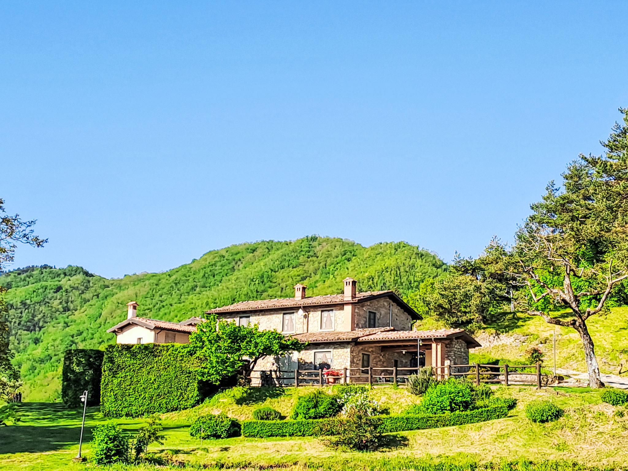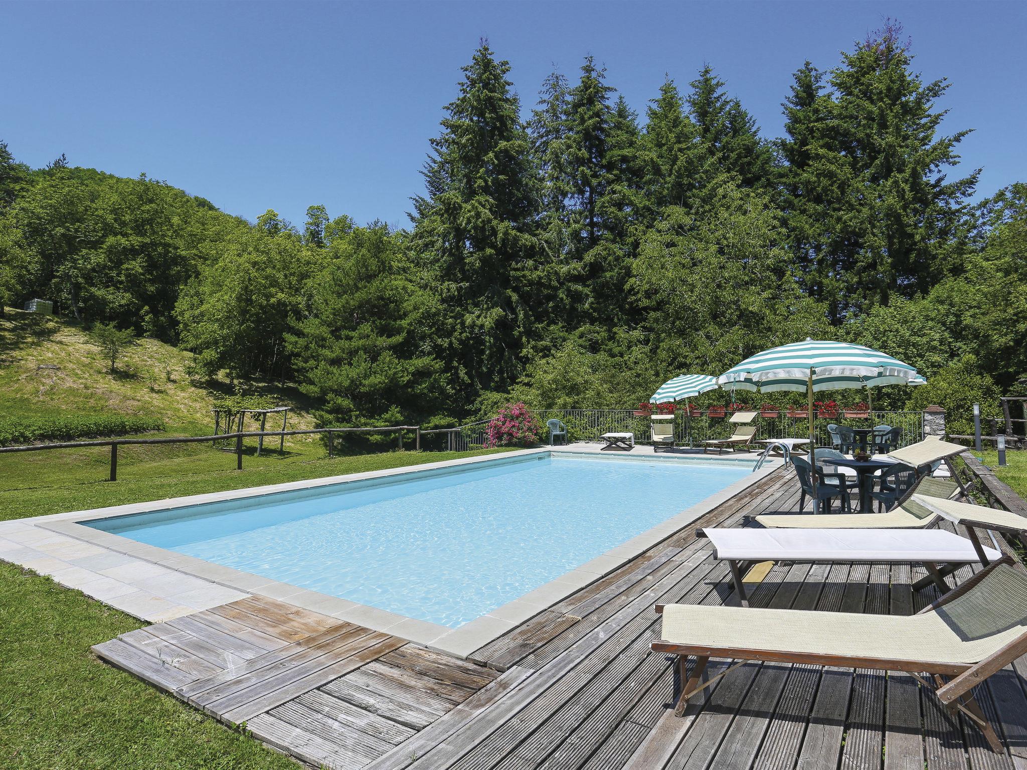 Molazzana 8 km from Casteln. di Garfagnana: Country house "Le Bore", 700 m a.s.l., surrounded by trees and meadows. 2 houses in the resort. 8 km from the centre of Castelnuovo di Garfagnana, 47 km from the centre of Lucca, 64 km from the centre of Pisa, in a secluded, quiet position on a slope, 74 km from the sea, in the countryside. For shared use: property 50'000 m2 (fenced), small garden with lawn and plants, natural garden, meadow, swimming pool (12 x 6 m, seasonal availability: 01.May. - 01.Oct.). Shower/WC in the pool area, outdoor shower, barbecue. In the house: washing machine (for shared use). 600 m long narrow motor access (mountain road). Parking on the premises. Shop 5 km, supermarket 8 km, bus stop 500 m, sandy beach "Lido di Camaiore" 74 km. The owner does not accept any youth groups. Local sale of farm products.